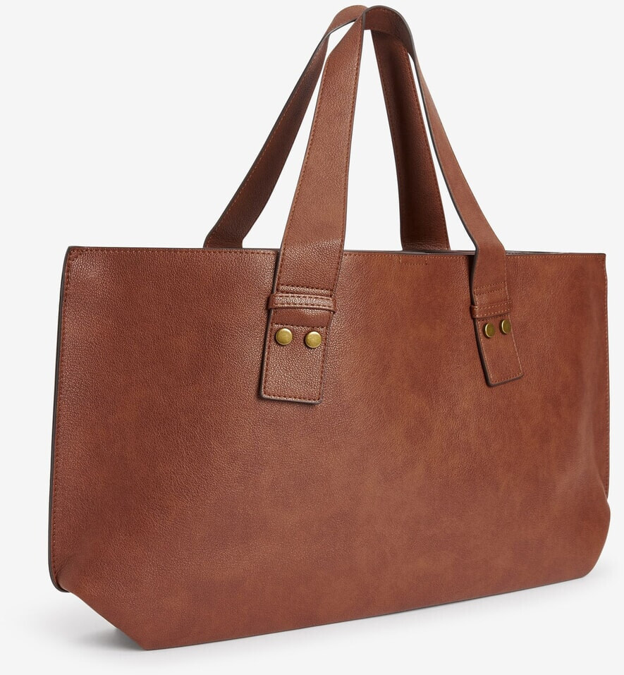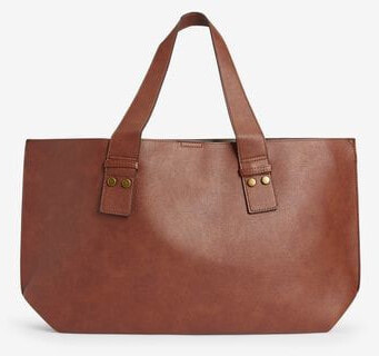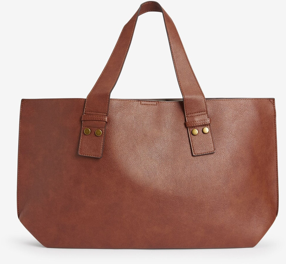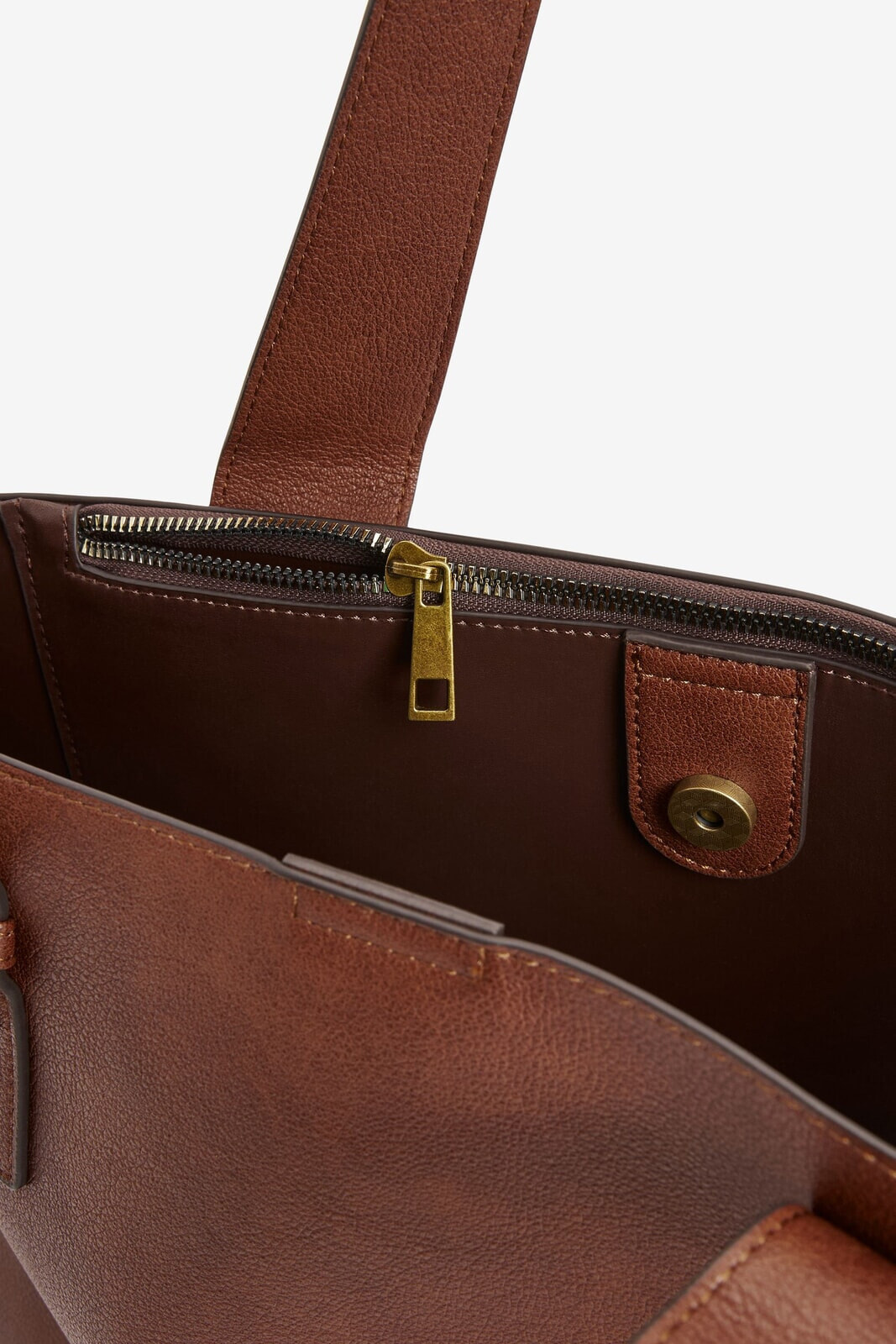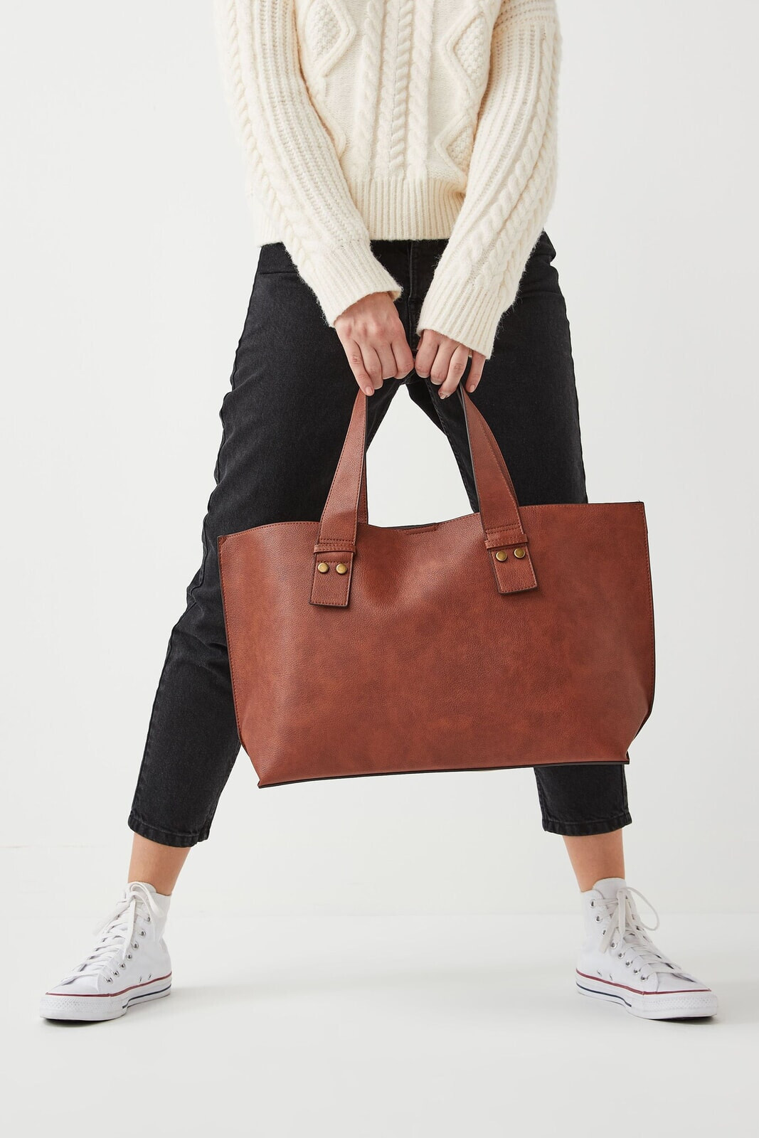 This large tote features carry handles and striking contrast inner with zip-up internal pocket. Perfect as an elegant, useful shopper.
