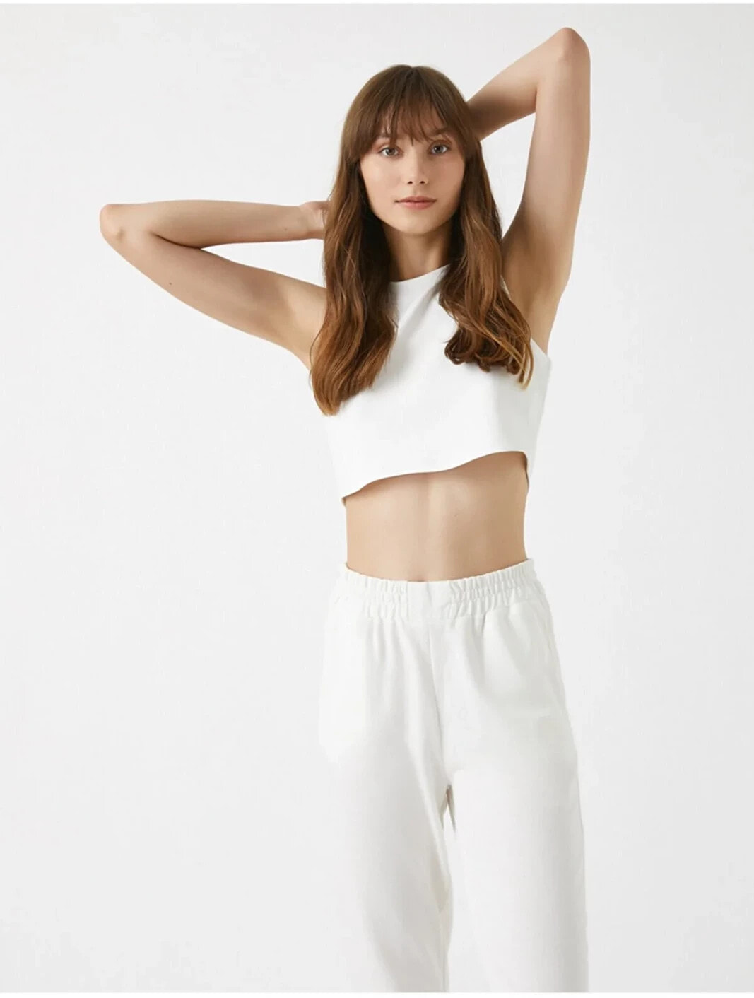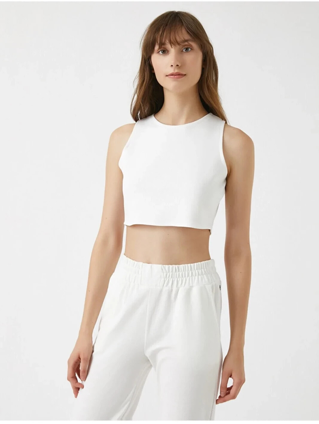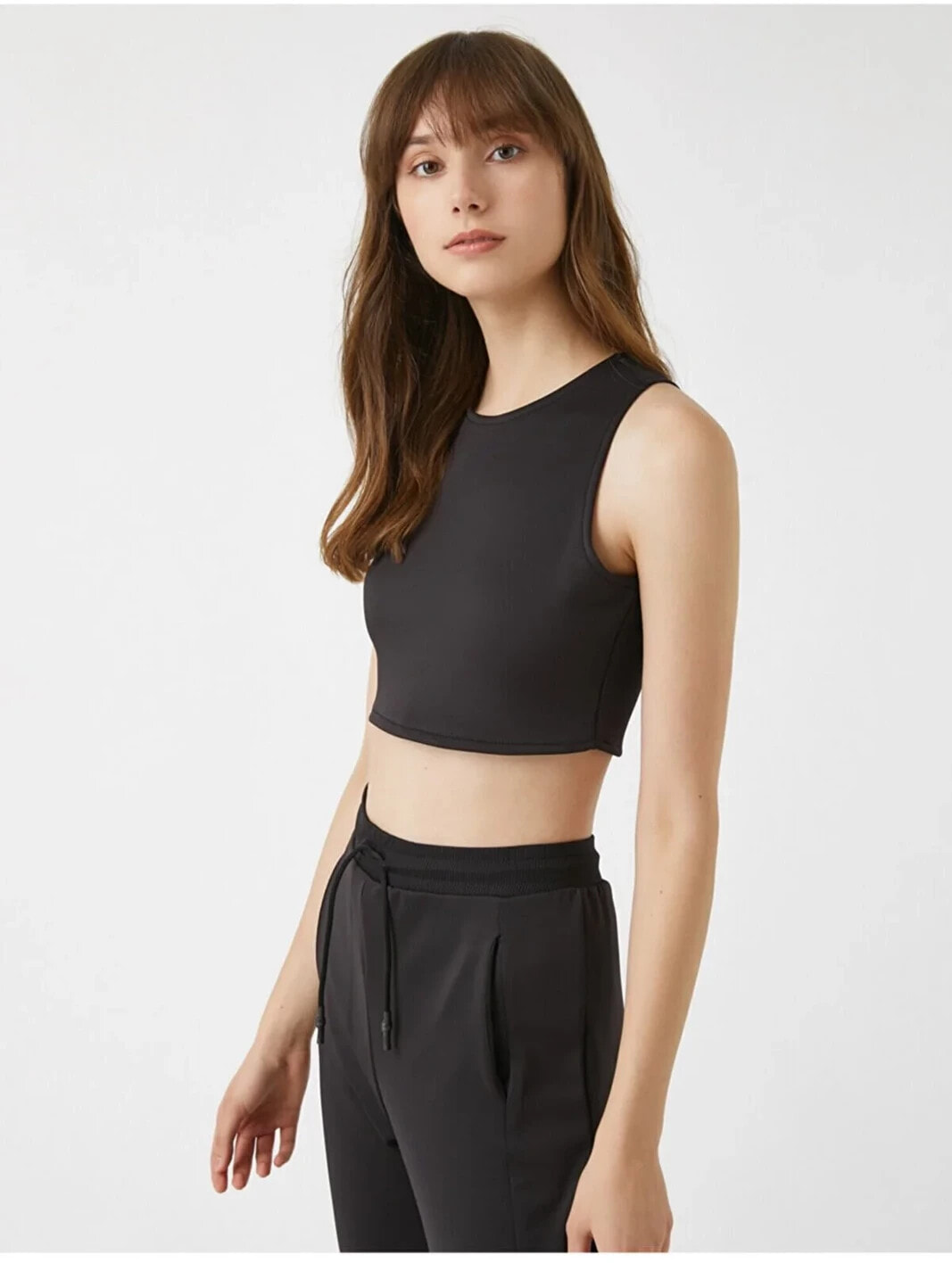 Basic, Bisiklet Yaka, Crop Atlet Model Bilgileri: Boy:180 cm, G??????s:84, Bel:59, Kal??a:88, Modelin Bedeni:S