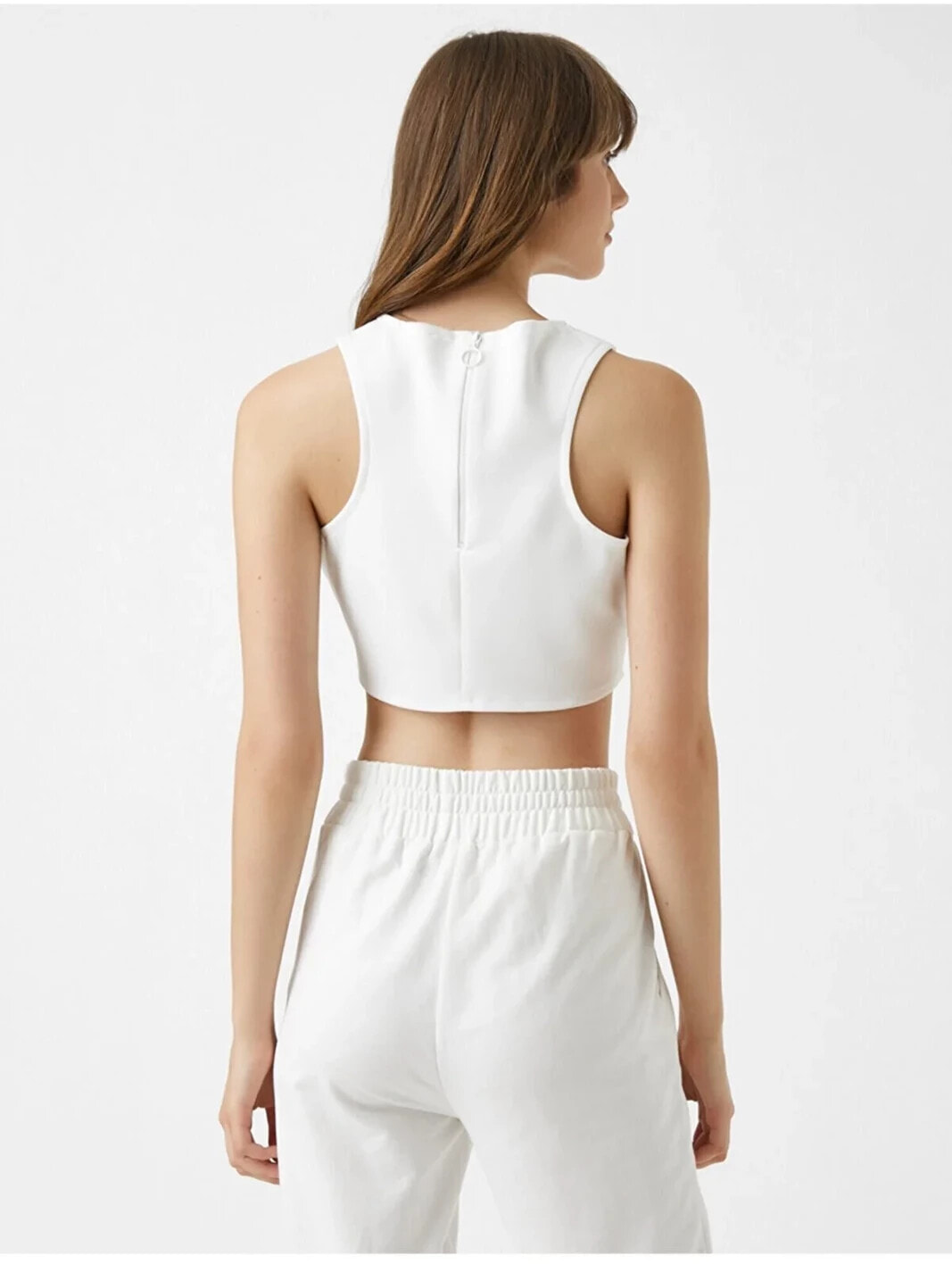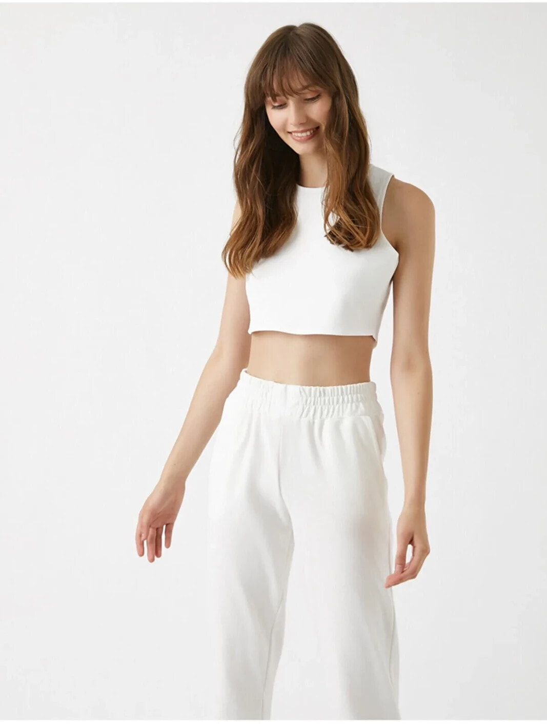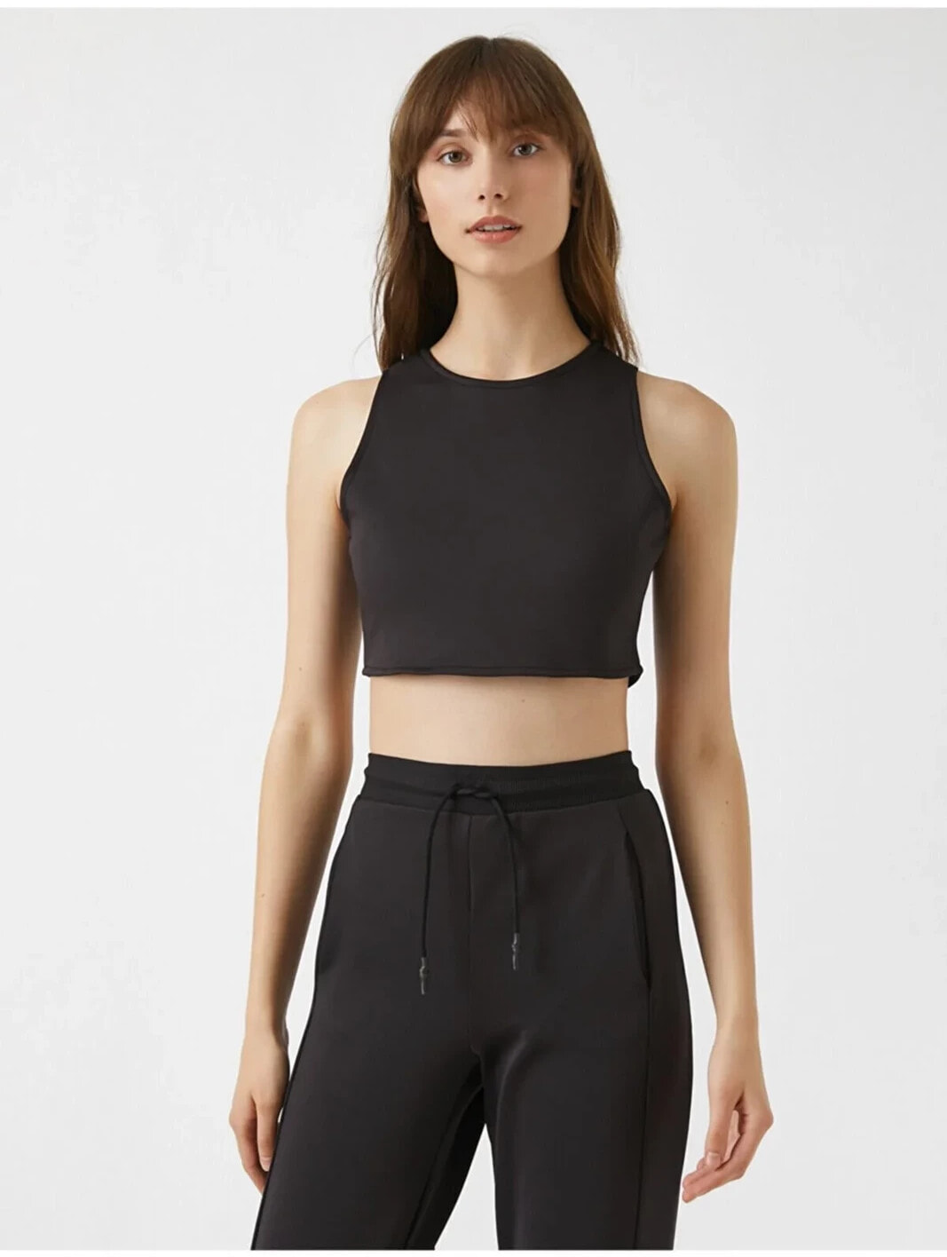 Basic, Bisiklet Yaka, Crop Atlet Model Bilgileri: Boy:180 cm, G??????s:84, Bel:59, Kal??a:88, Modelin Bedeni:S