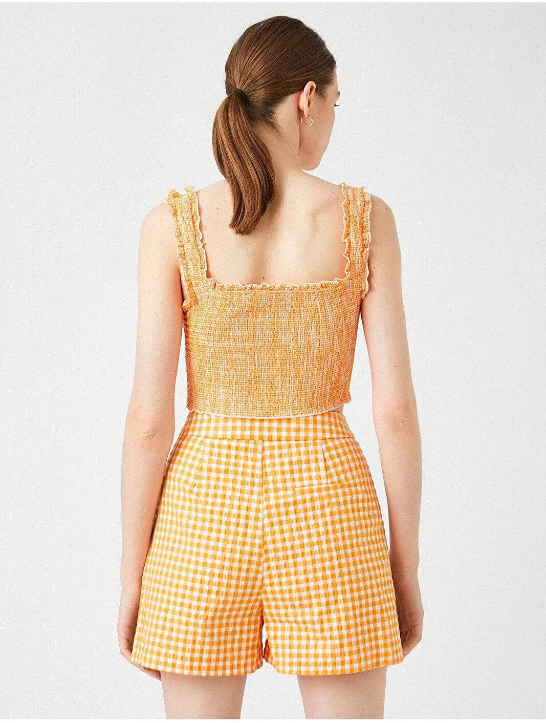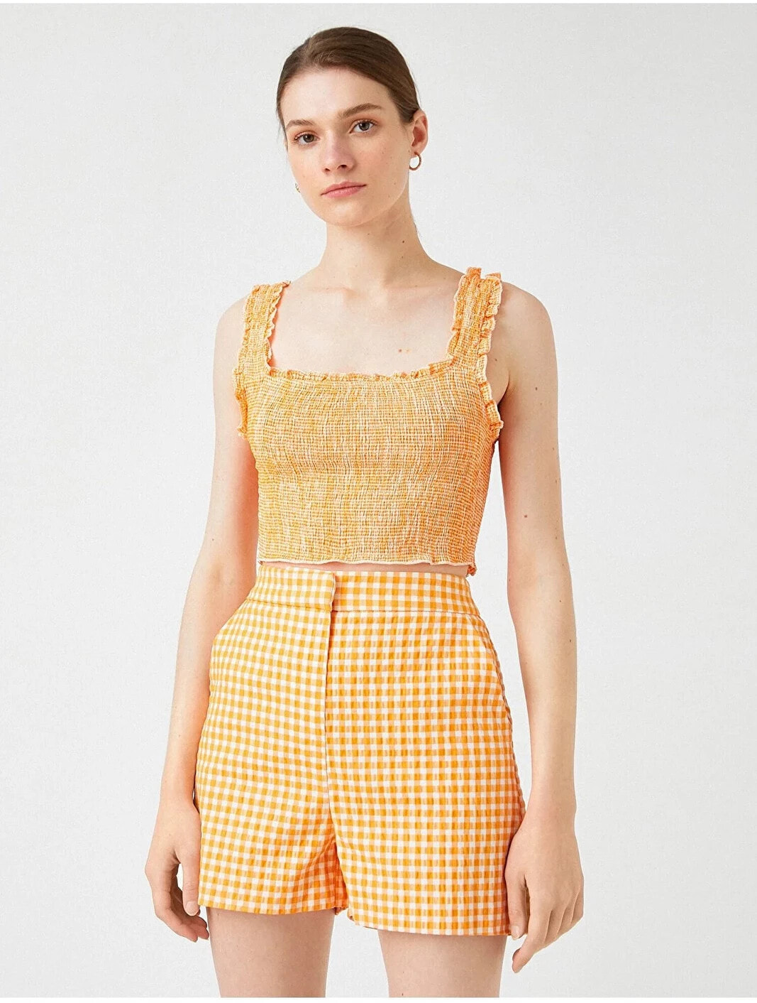 Gipe detaylı, kare yaka, kalın askılı crop atlet. Model Bilgileri: Boy:177 cm, Göğüs:80, Bel:61, Kalça:89, Modelin Bedeni:S