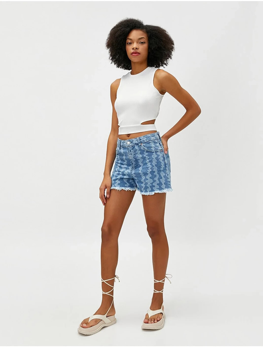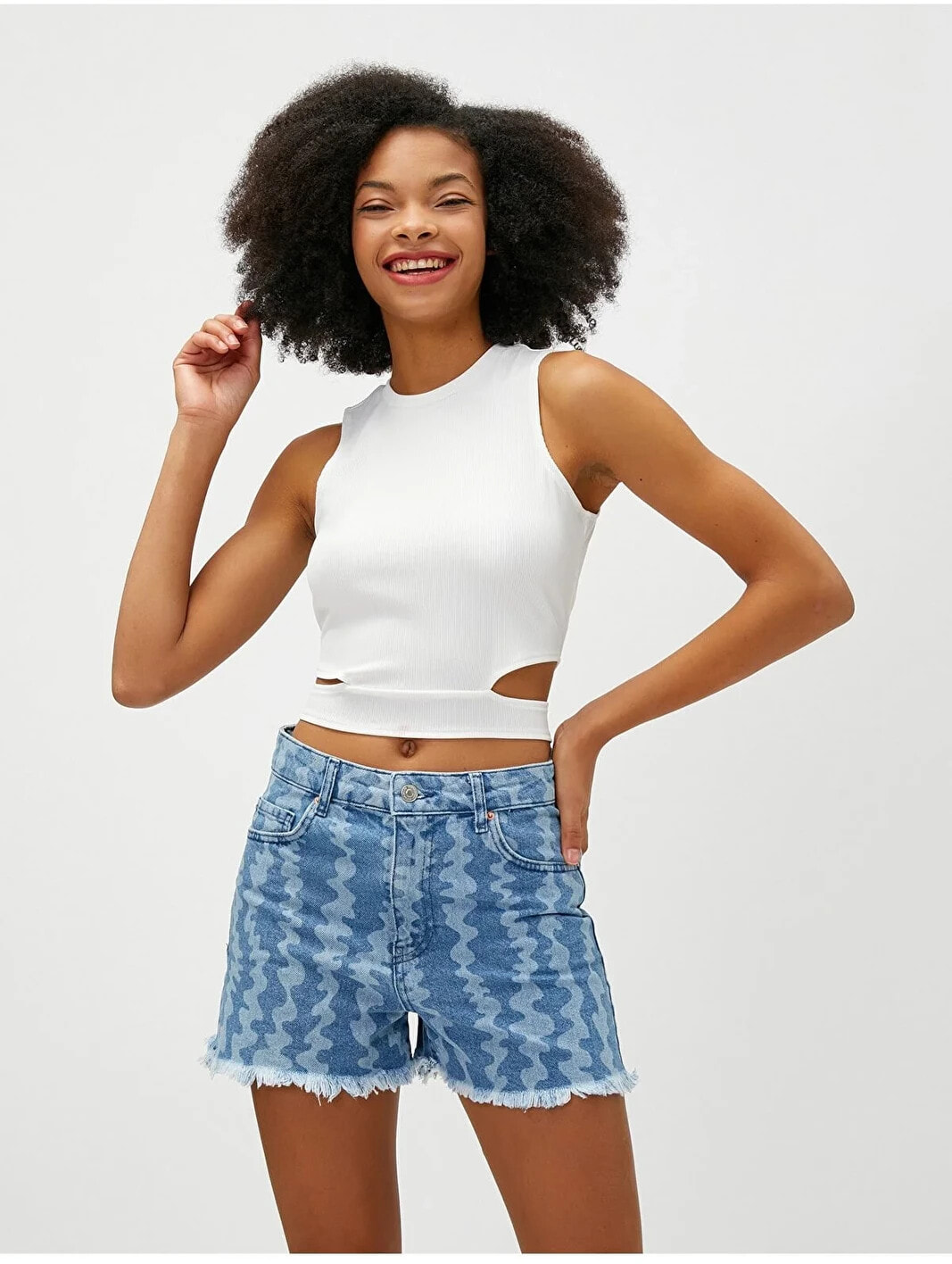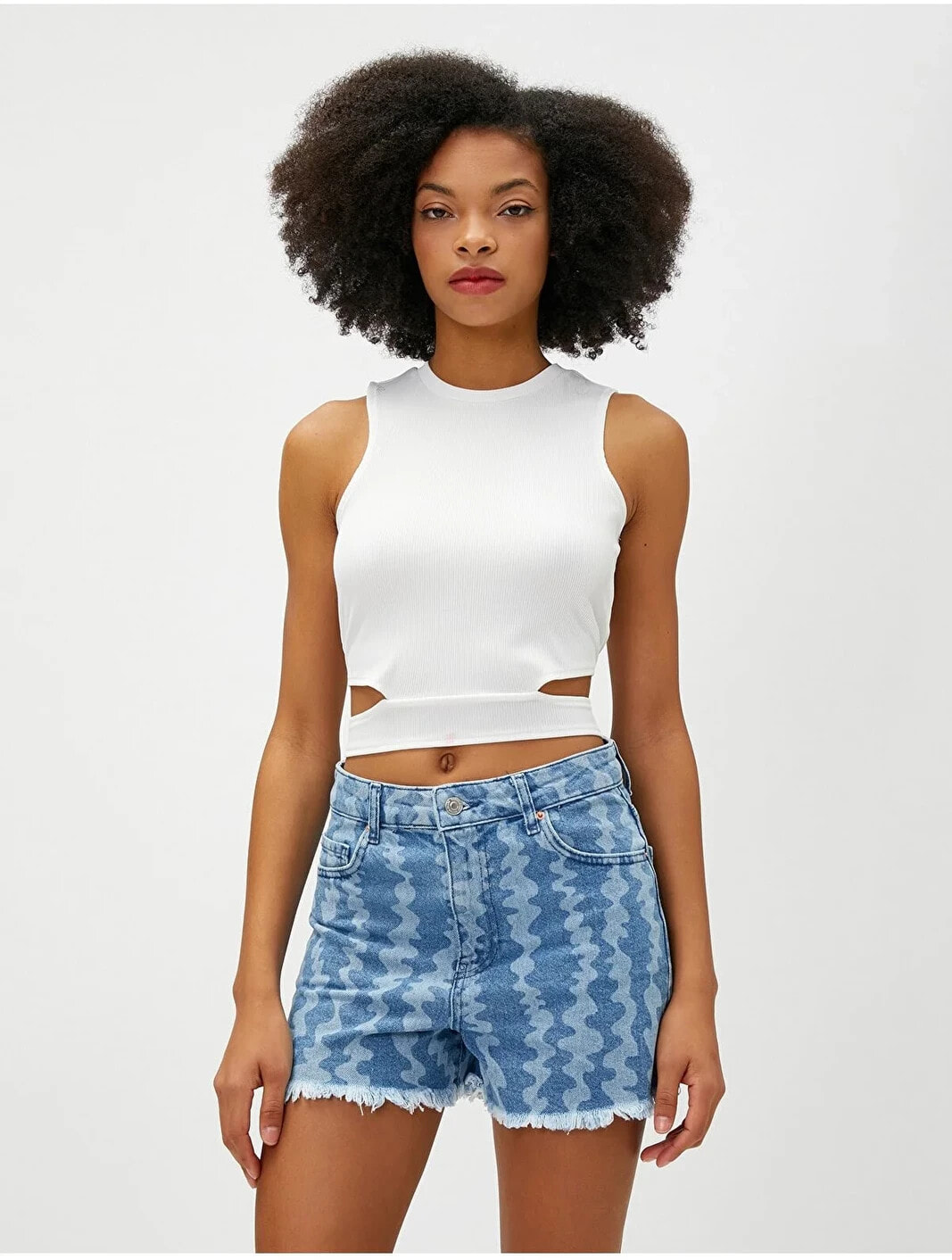 Crop Atlet Pencere Detaylı Bisiklet Yaka Fitilli