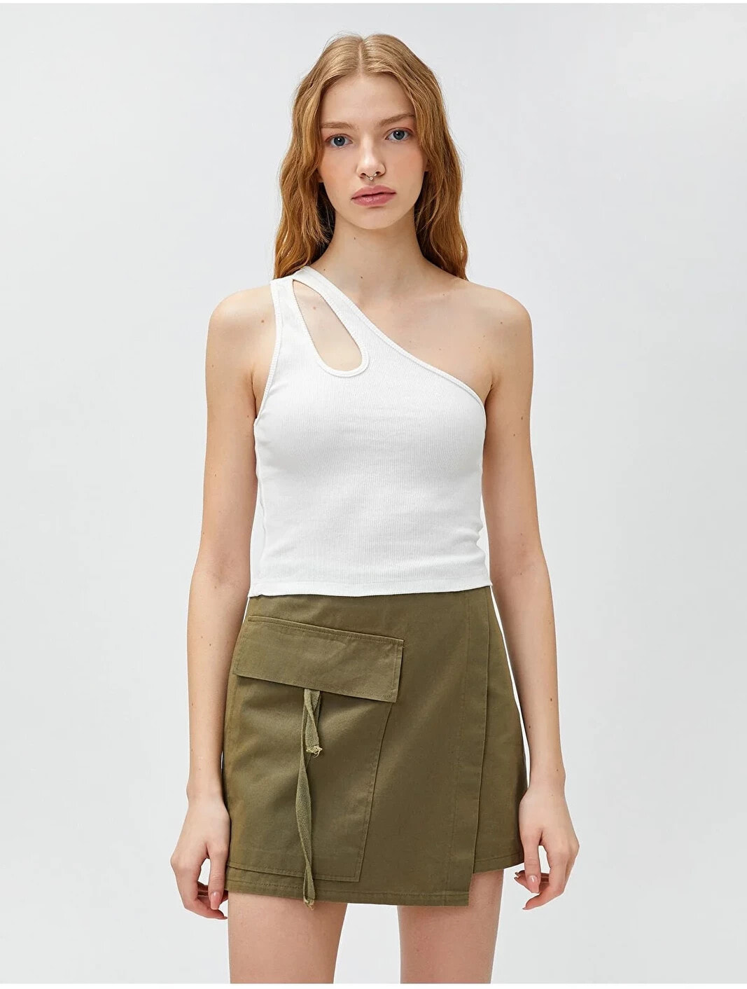 Sıcak yaz günlerinin vazgeçilmezi, pencere detaylı, fitilli, tek omuz, crop atlet ile stilinizi parlatabilirsiniz.