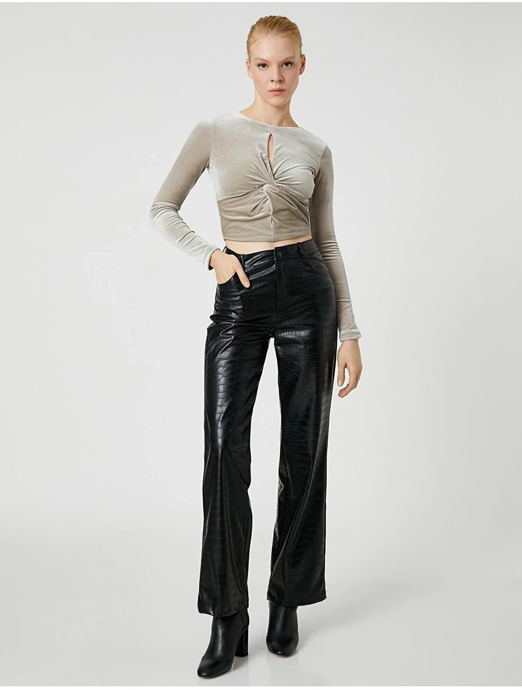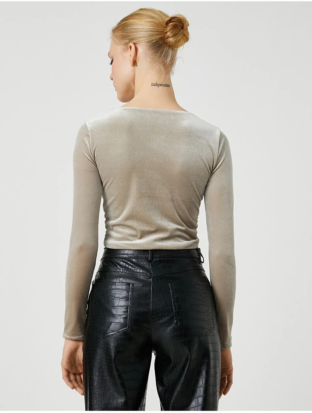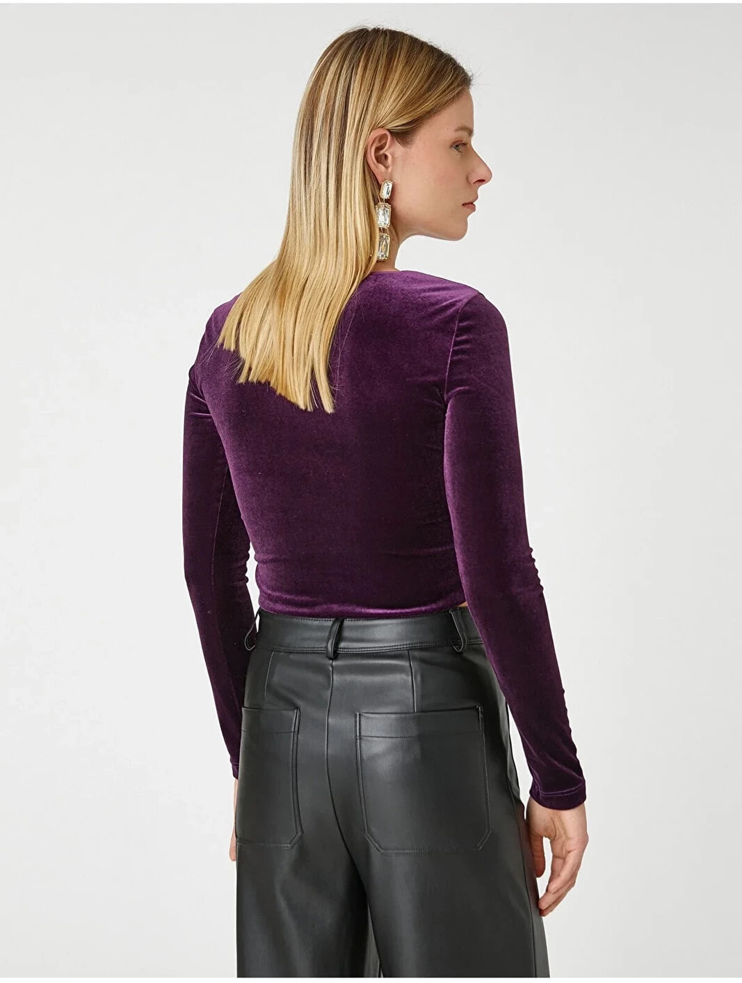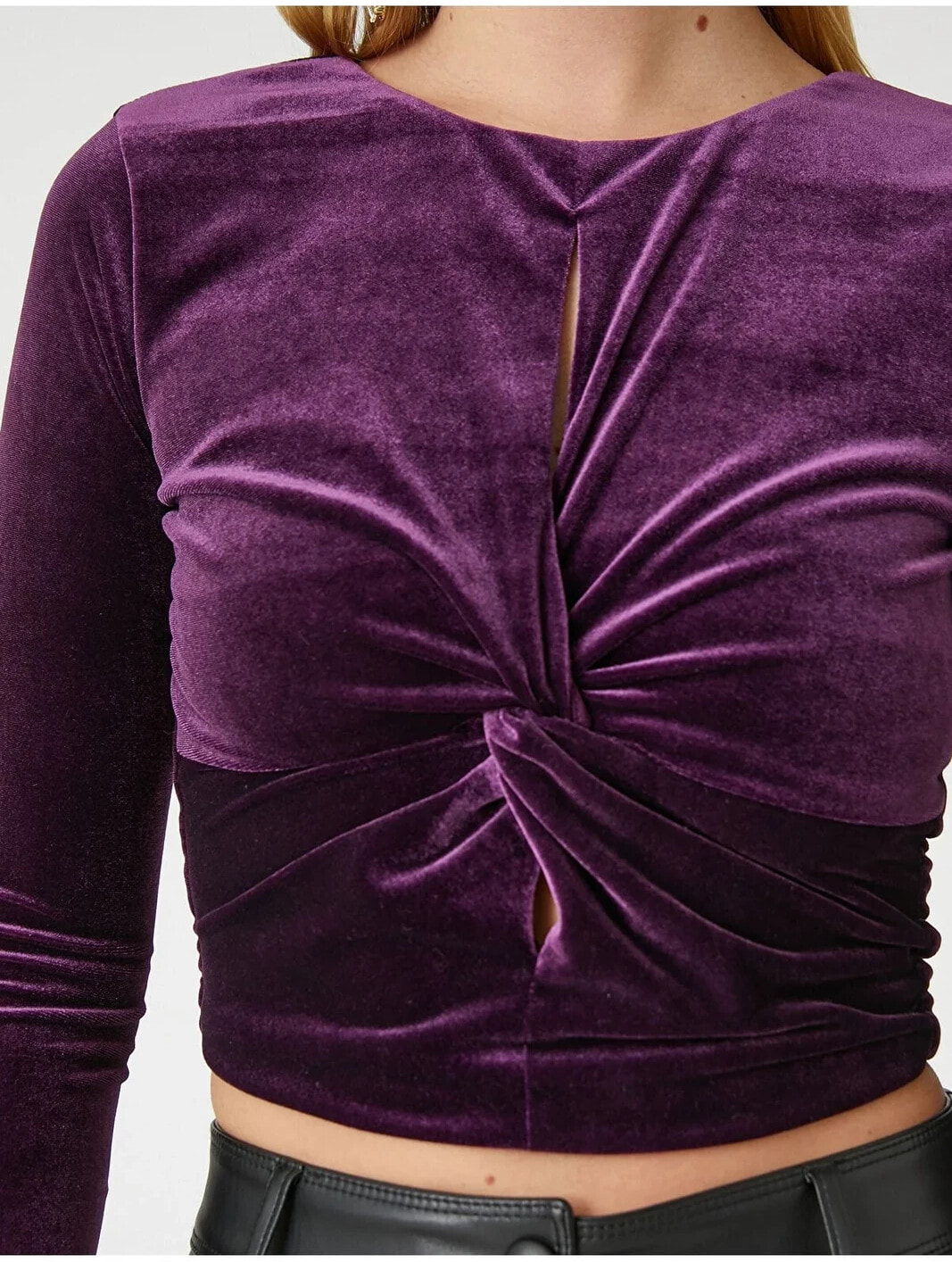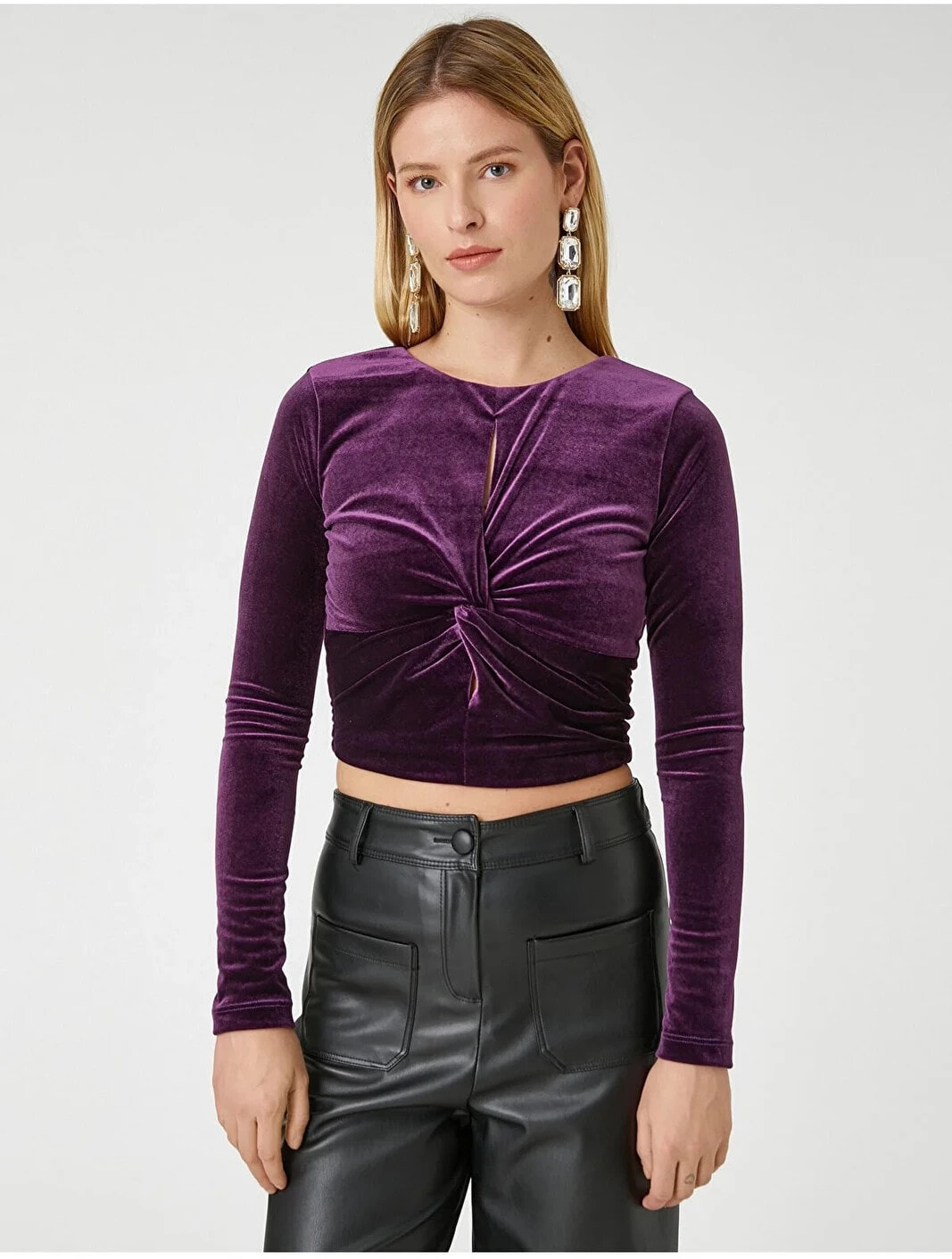 Günlük giyimde, ofis kombinlerinde ya da şık davetlerde düğüm detaylı, uzun kollu, crop, kadife bluzu kombinlerinize dahil edin!