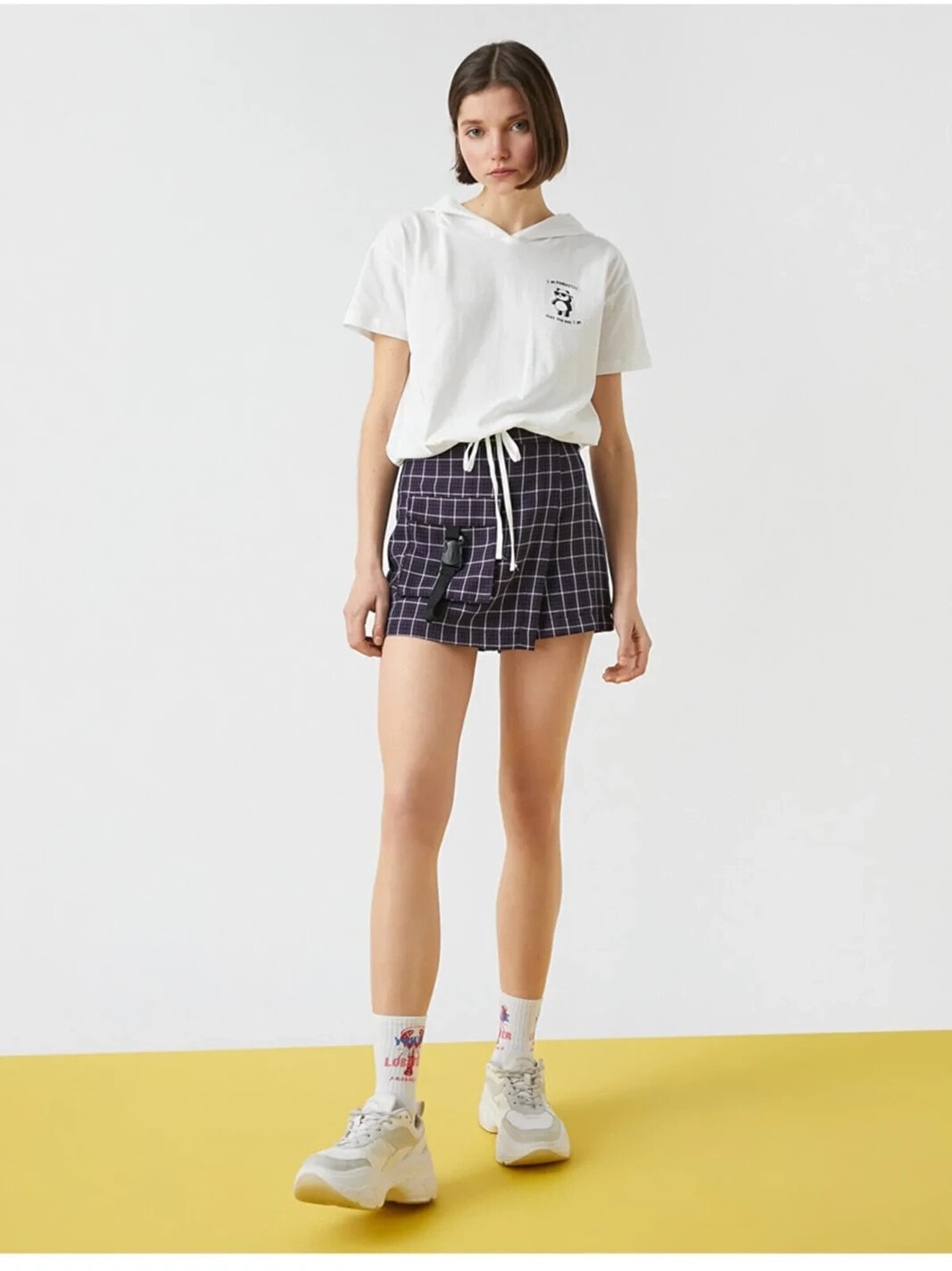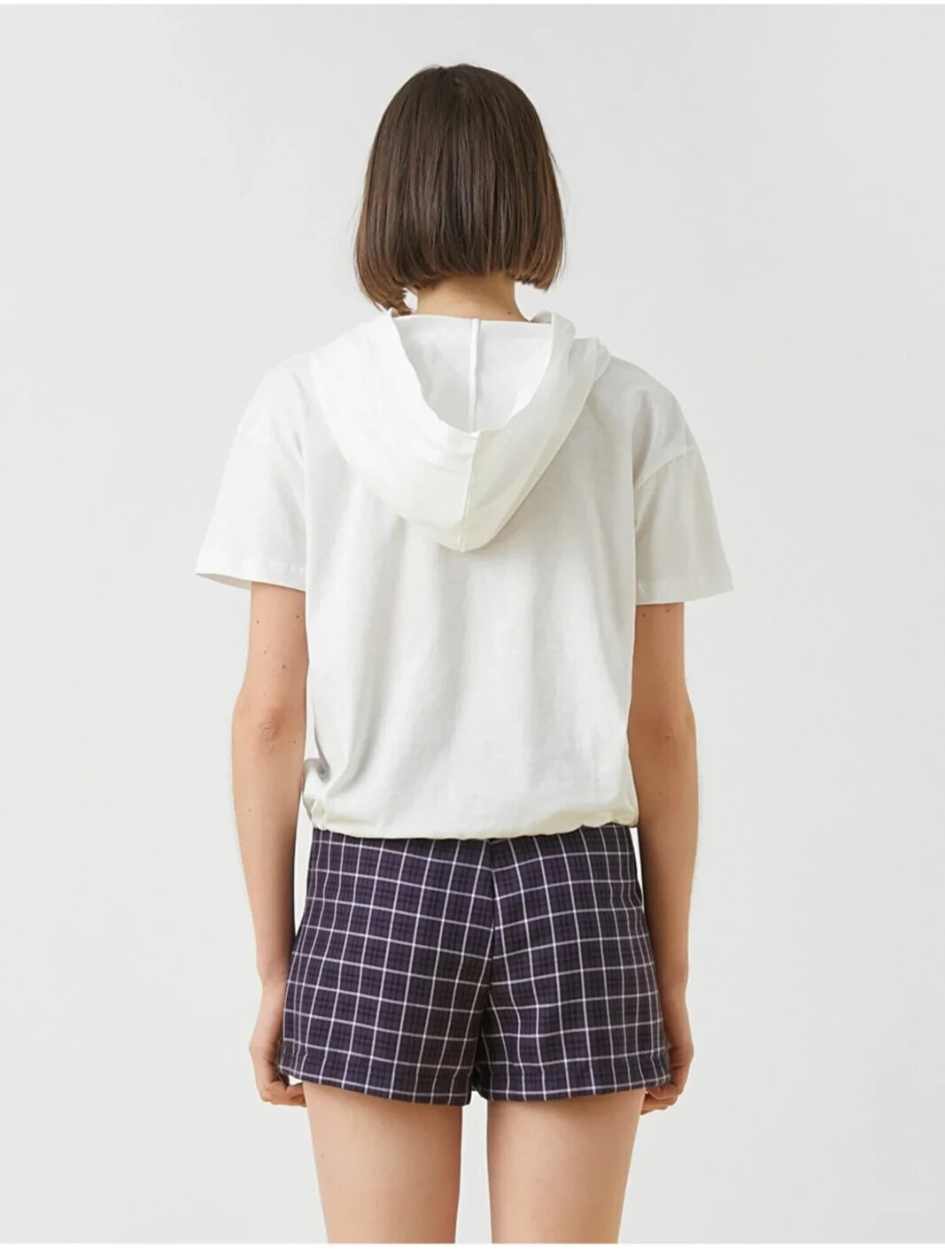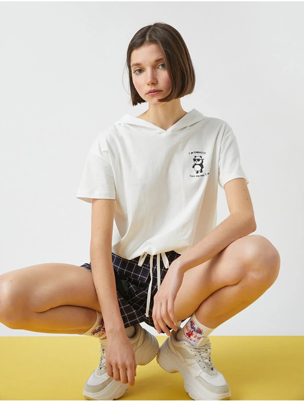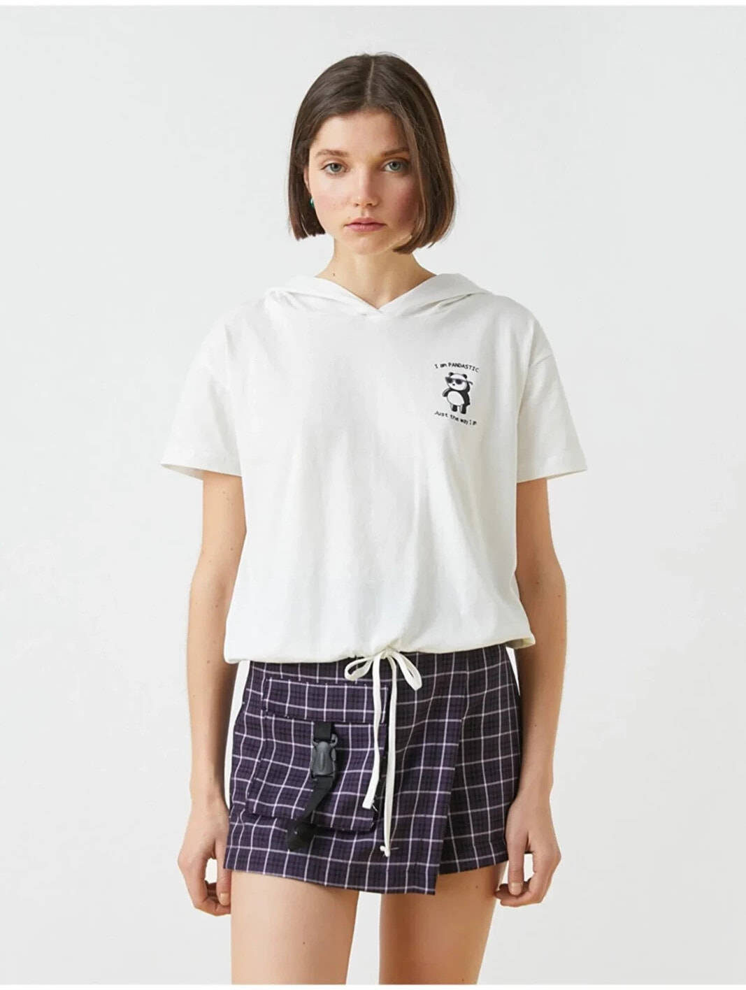 Lastik detaylı, minimal baskılı, kapüşonlu, kısa kollu, crop tişört. Model Bilgileri: Boy:175 cm, Göğüs:76, Bel:58, Kalça:1, Modelin Bedeni:S