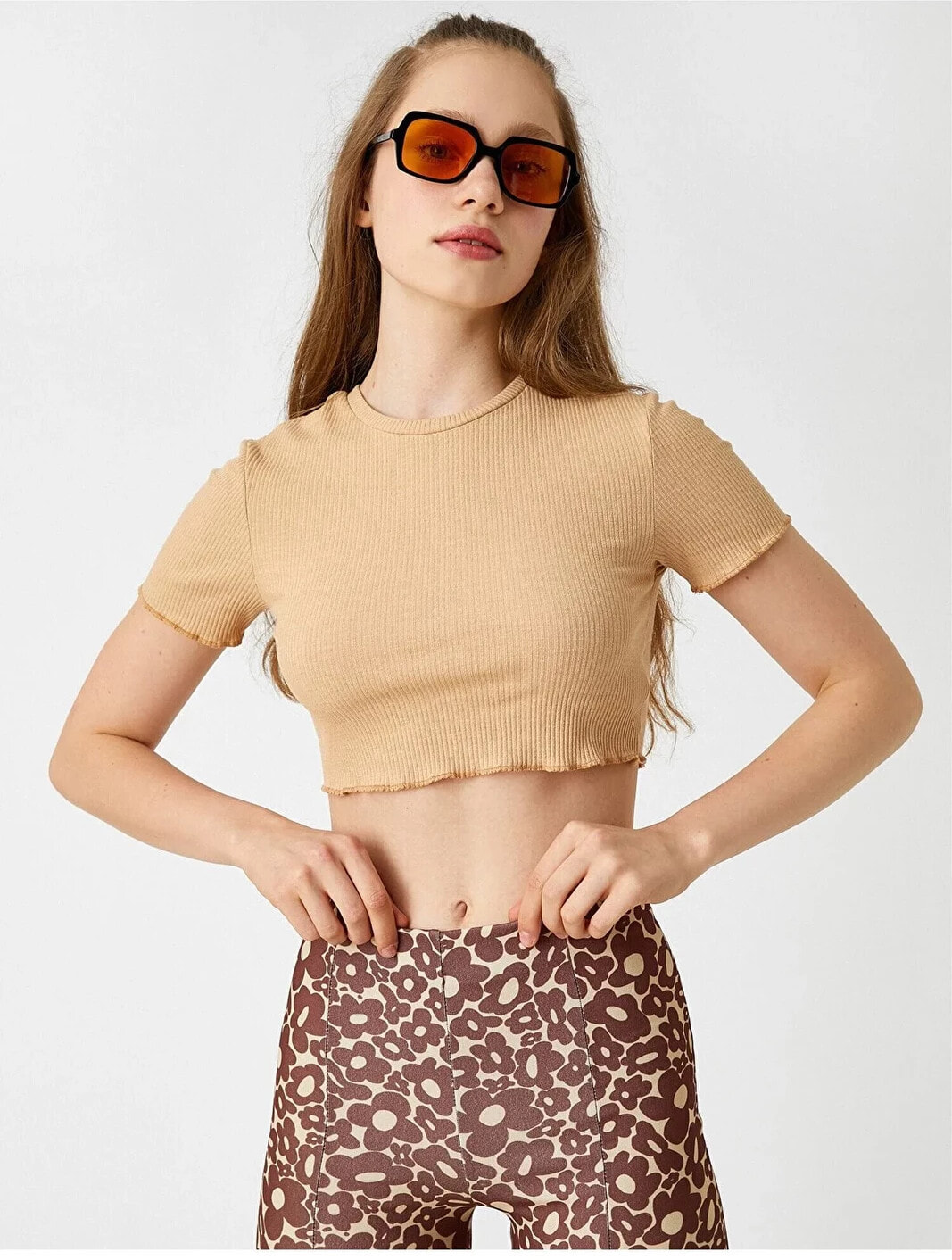 Crop Tişört, Kısa Kollu Model Bilgileri: Boy:173 cm, Göğüs:78, Bel:57, Kalça:87, Modelin Bedeni:S