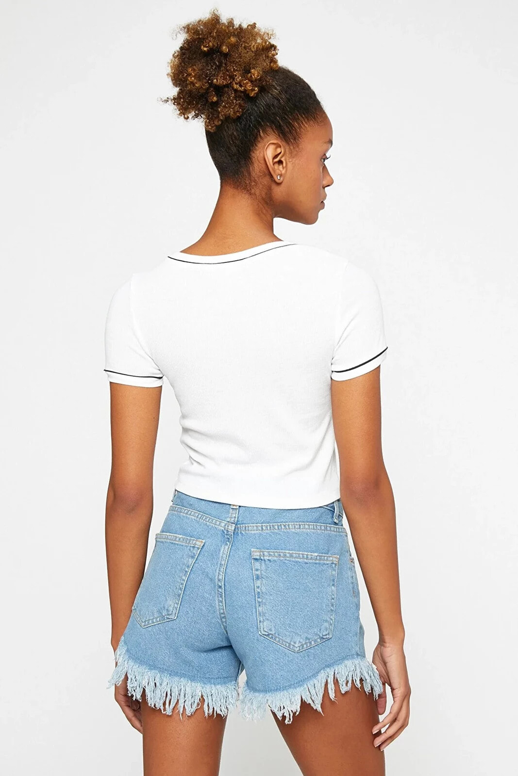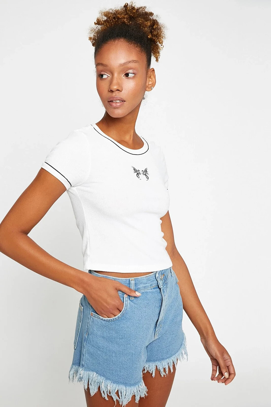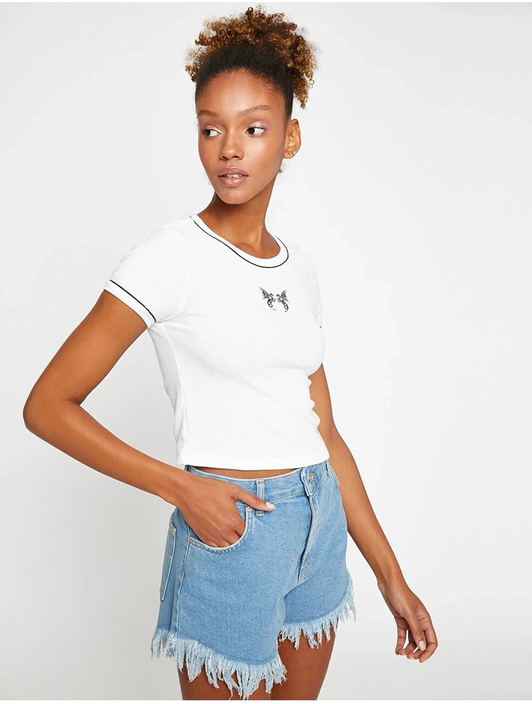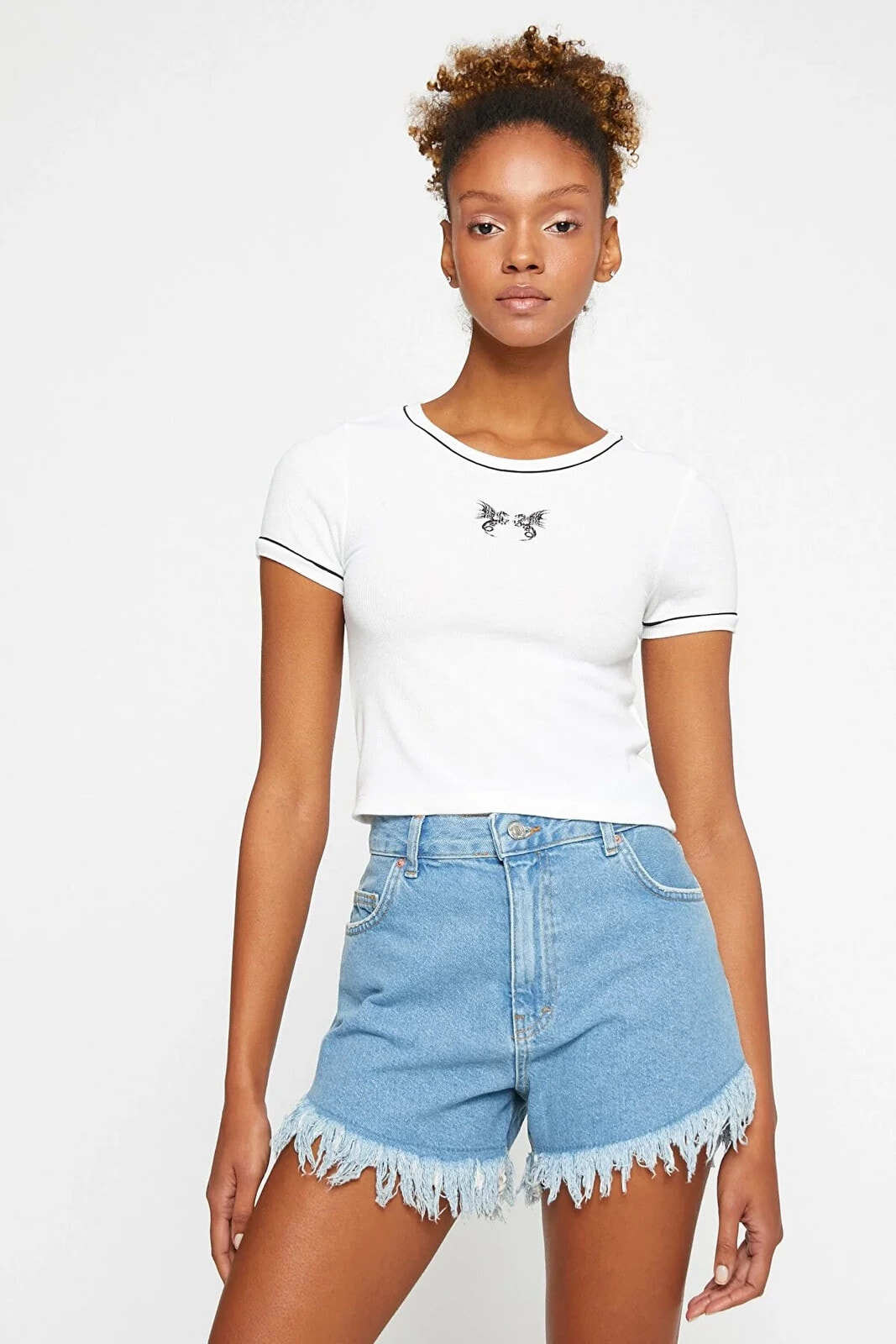 Konfor ve şıklığı bir araya getiren, kısa kollu, baskılı, crop, bisiklet yaka tişörtü üzerinizden çıkarmak istemeyeceksiniz!