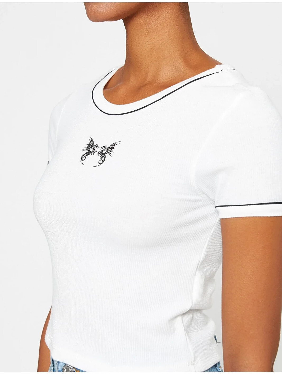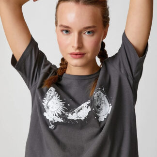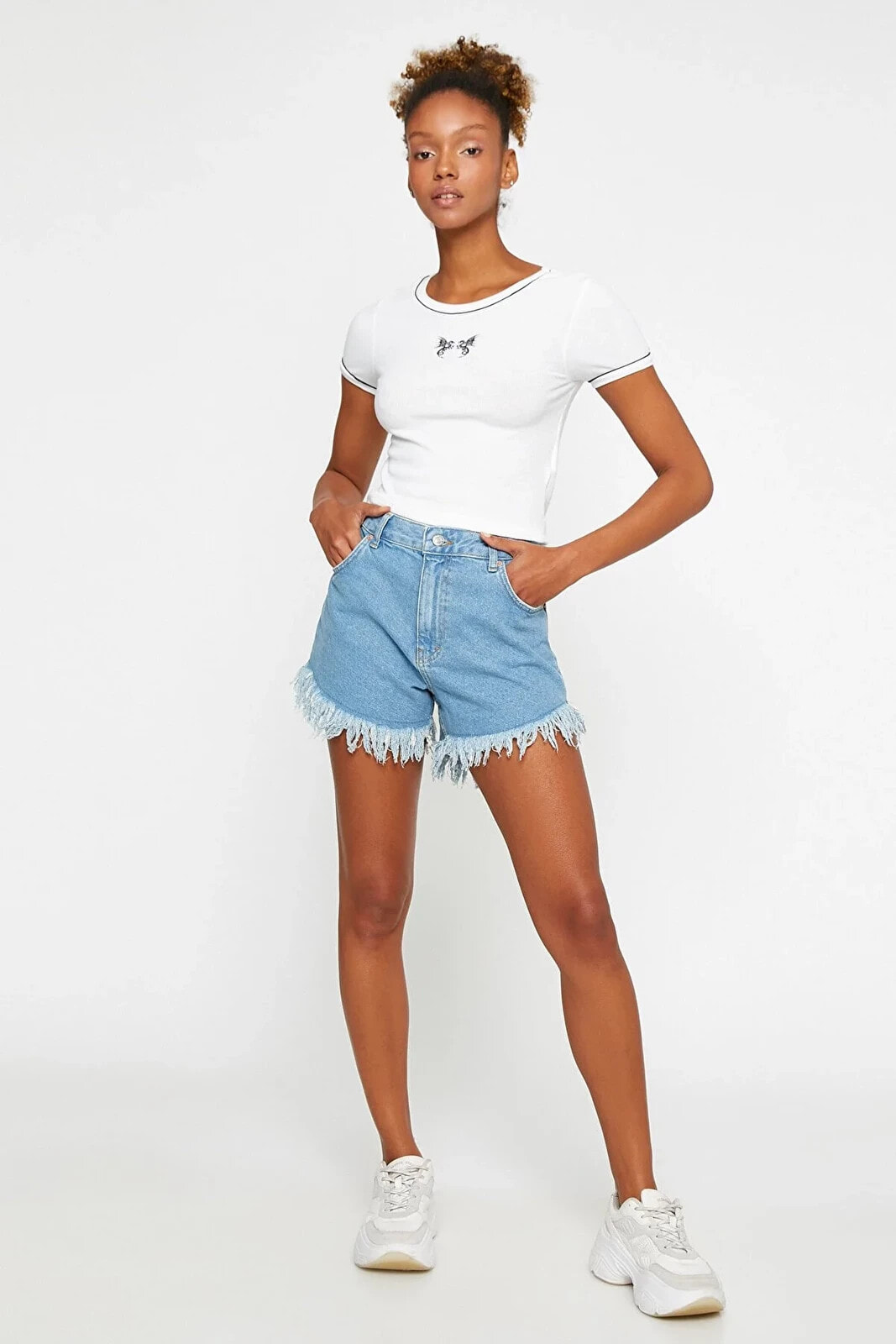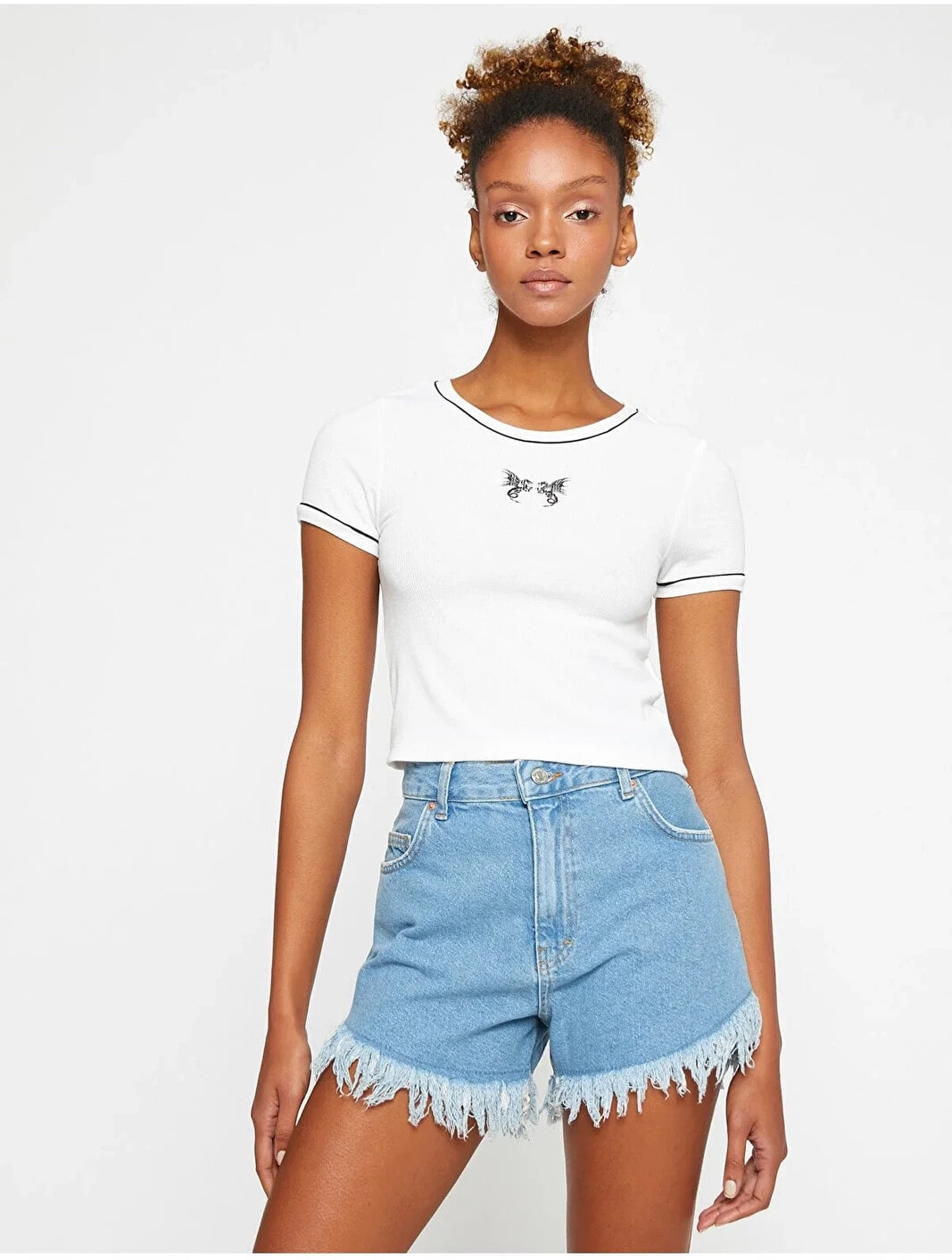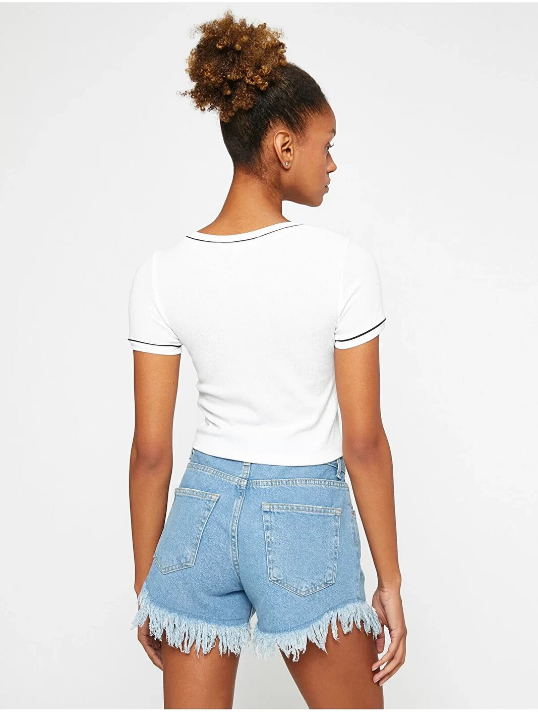 Konfor ve şıklığı bir araya getiren, kısa kollu, baskılı, crop, bisiklet yaka tişörtü üzerinizden çıkarmak istemeyeceksiniz!