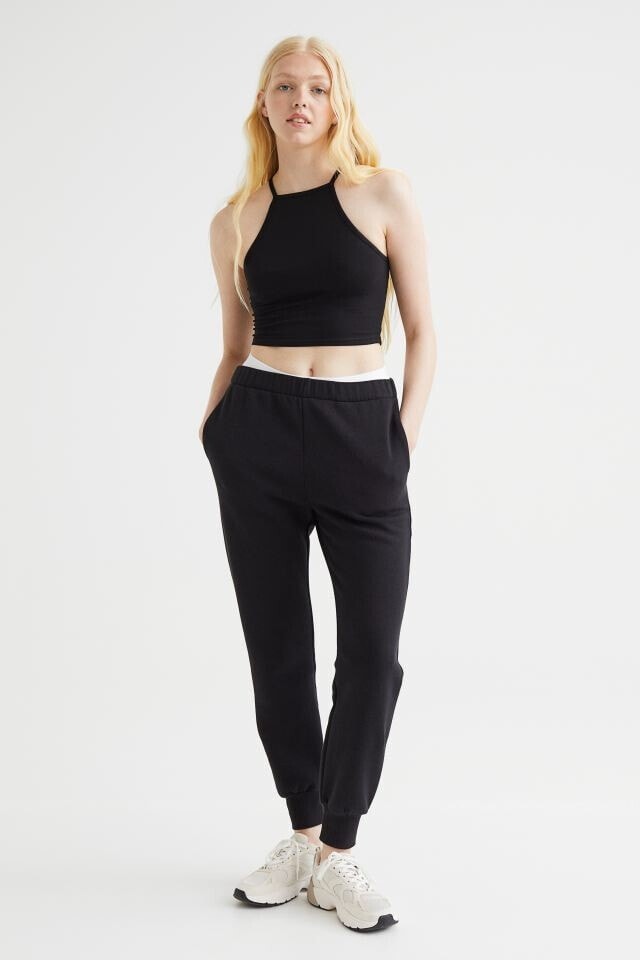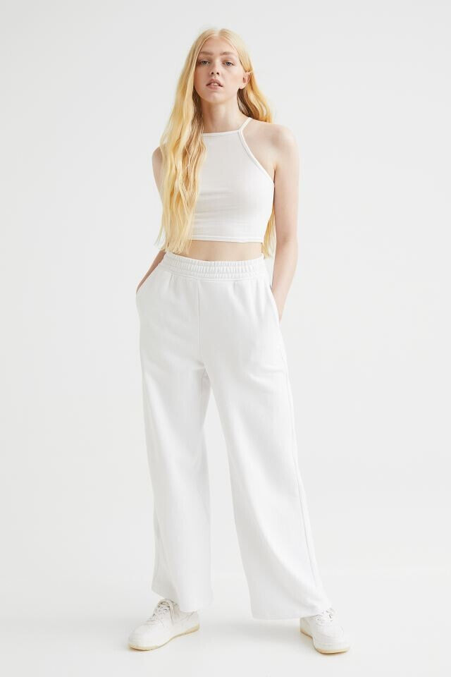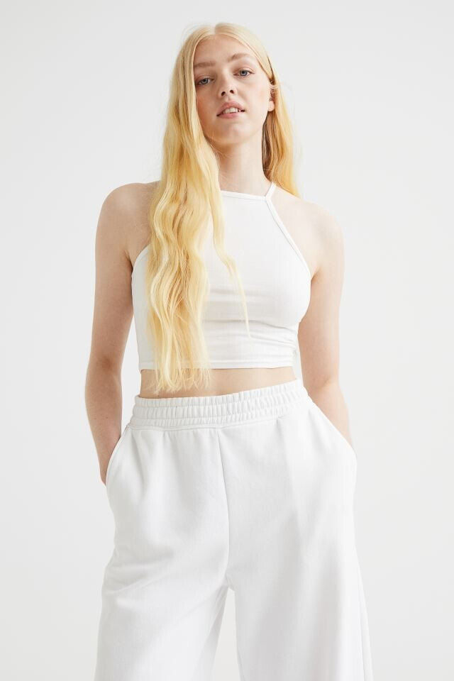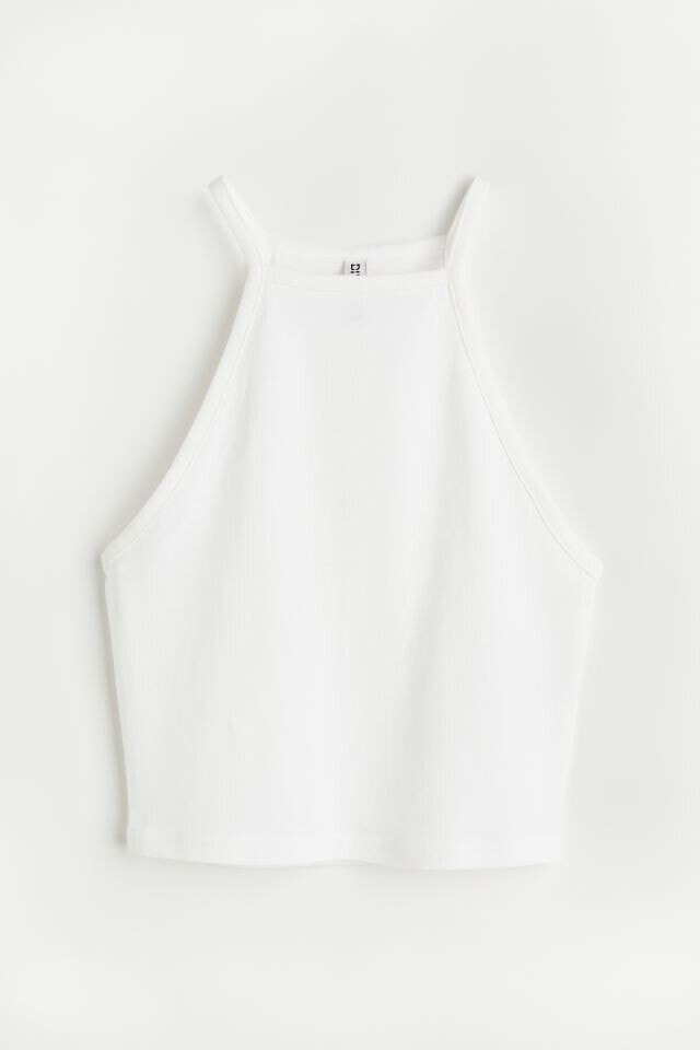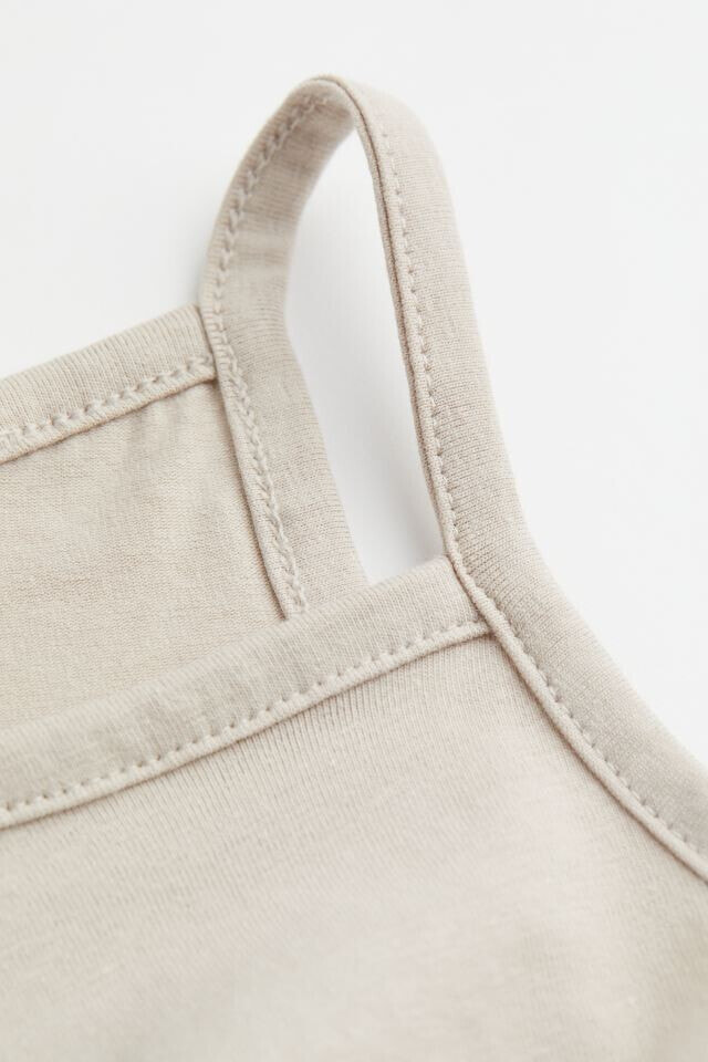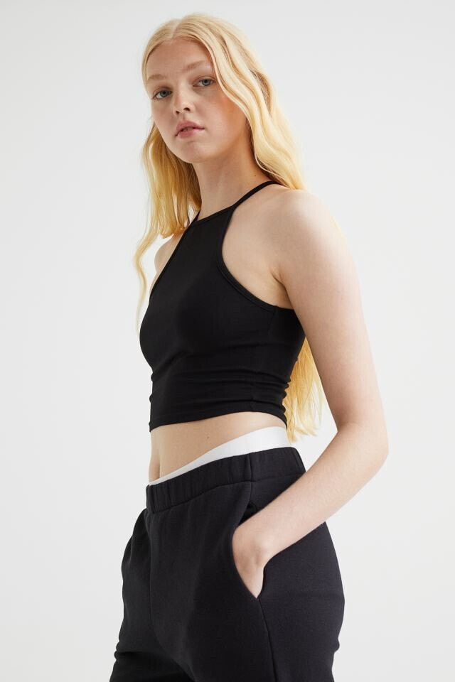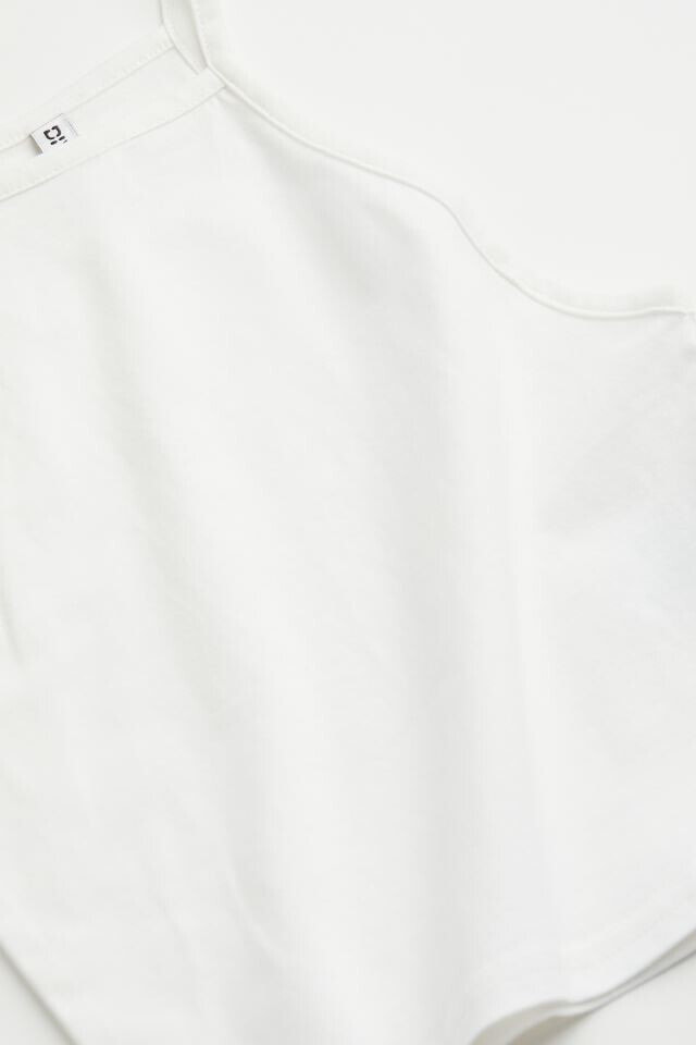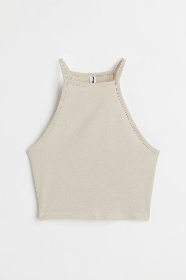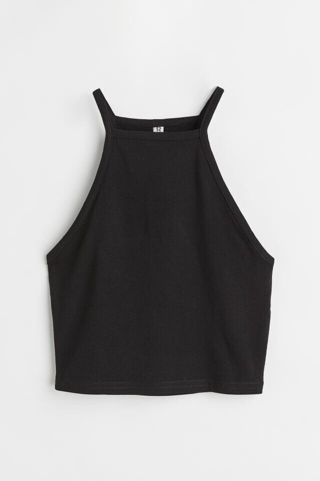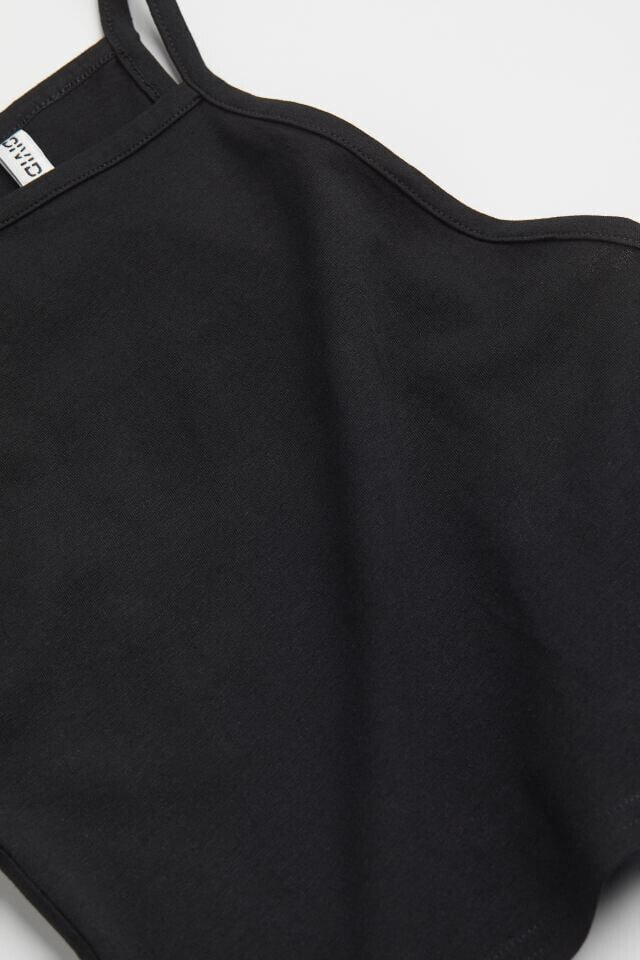 Fitted, sleeveless crop top in soft cotton jersey with a narrow cut at top. Narrow shoulder straps.