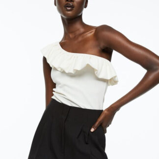 Fitted, sleeveless crop top in soft cotton jersey with a narrow cut at top. Narrow shoulder straps.