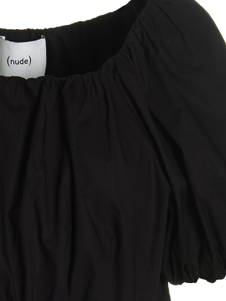 Nude cotton t-shirt with cut-out on the shoulder and sequin detailing on the neck.
