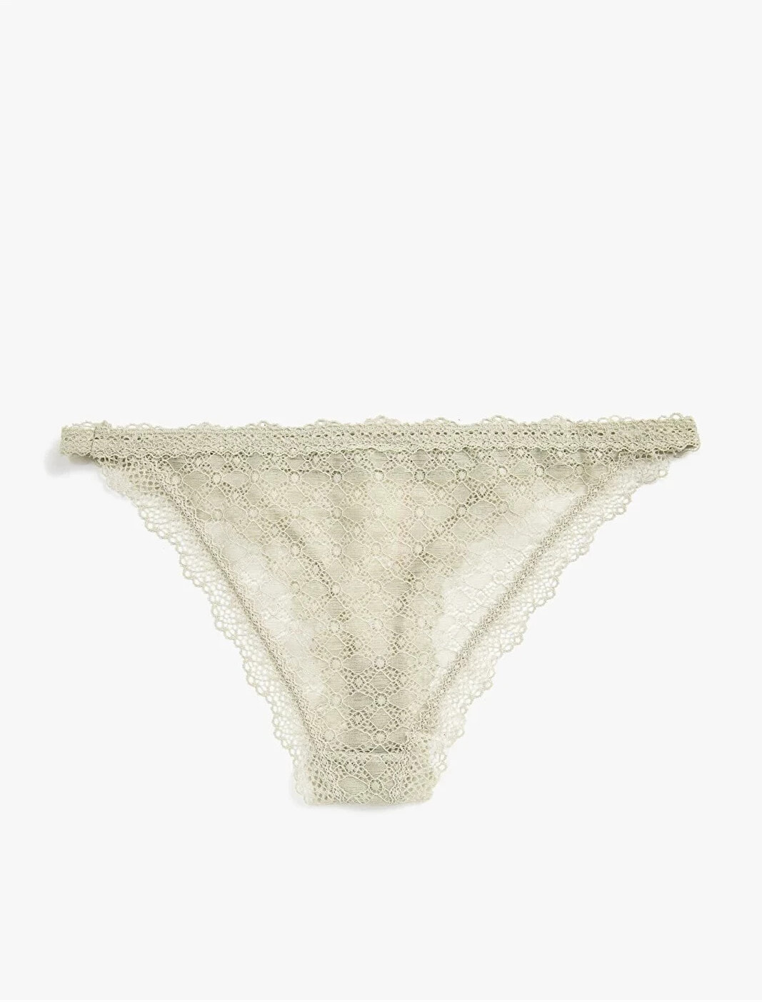 Dantelli, esnek belli, geometrik desenli, brief külot. Model Bilgileri: Boy:178 cm, Göğüs:84, Bel:61, Kalça:89, Modelin Bedeni:S