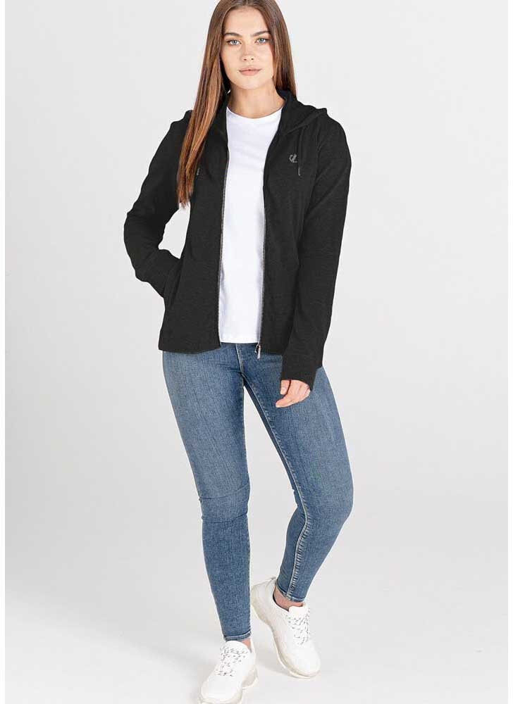The Influence Zip Through Hoodie. Made from a blend a soft jersey fabric with full zip. Featuring hood with drawcord detail, ribbed cuffs and pockets to stash essentials. Easy- wearing comfort for the yoga studio, gym or a walk in the park.