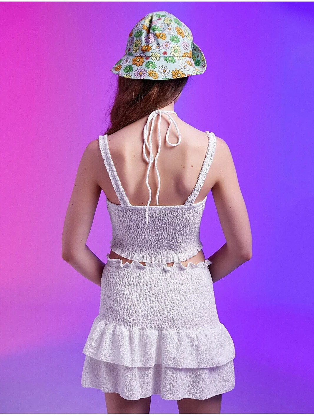 Dekolteli Drape Detaylı Crop Atlet Model Bilgileri: Boy:173 cm, Göğüs:78, Bel:57, Kalça:87, Modelin Bedeni:S