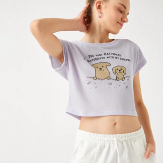 Koton Desenli Kırık Beyaz Kadın T-Shirt 3SKG10053AK Yaş Grubu:Kadın Cinsiyet:Kadın
