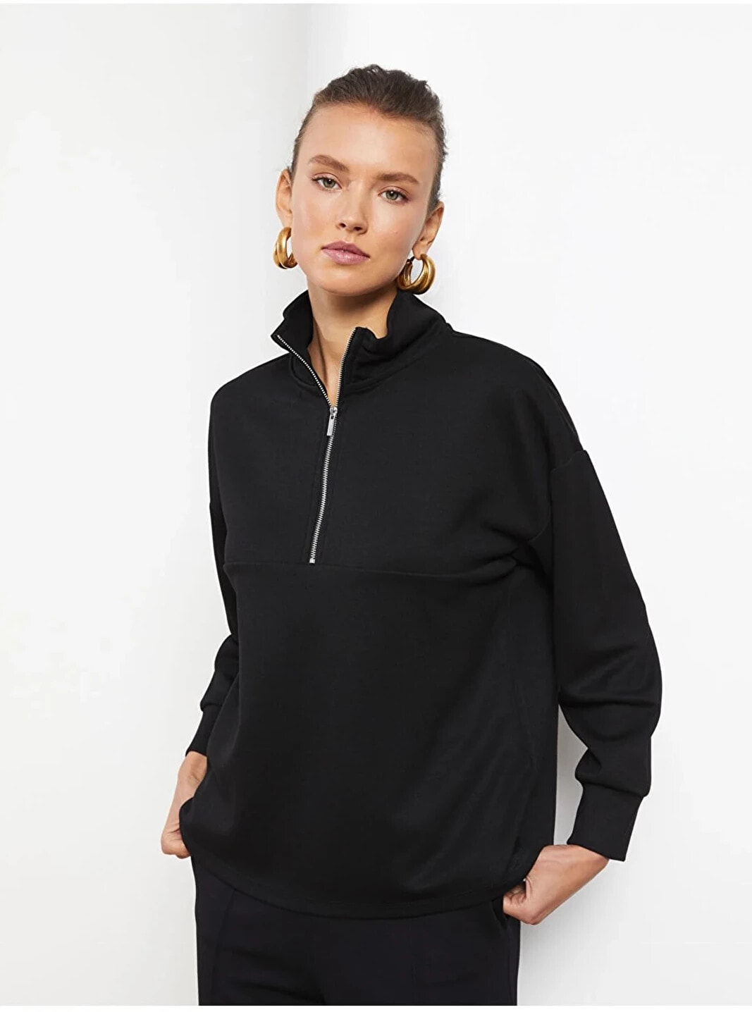 Manken Bilgisi Göğüs: 82 cm Bel: 60 cm Basen: 90 cm Boy: 173 cm Manken S beden ürün giyiyor. Ürün İçeriği ve Özellikleri Ürün İçeriği: Ana Kumaş: %50 VİSKOZ %46 Polyester %4 ELASTAN Ürün Özellikleri: Marka: LCW Vision Siluet: Sweatshirt Ürün Tip: Sweatshirt Kalıp: Standart Kalınlık: Orta Kalınlık Kol Boyu: Uzun Kol Yaka: Dik Yaka Desen: Düz Cinsiyet: Kadın