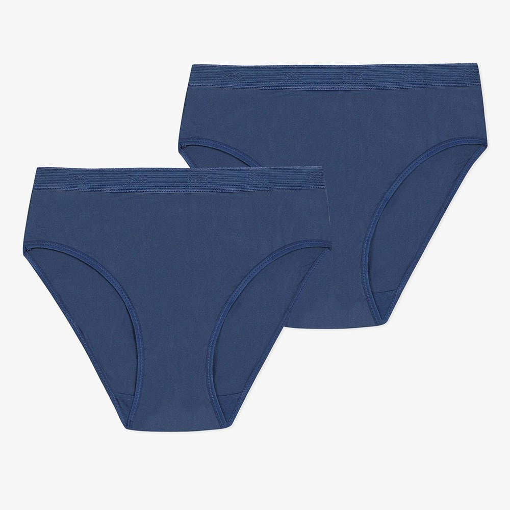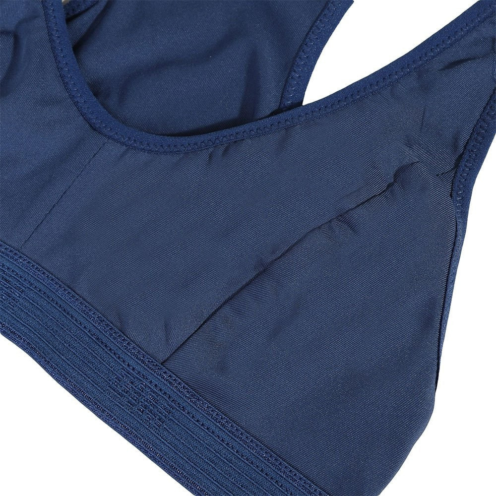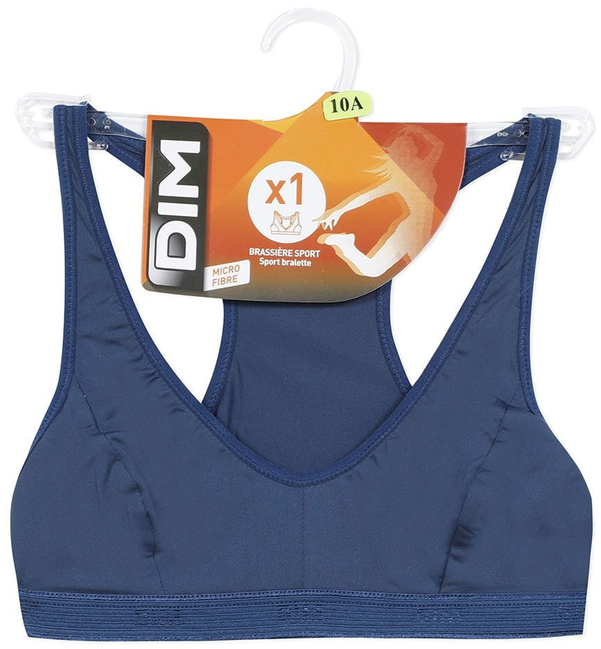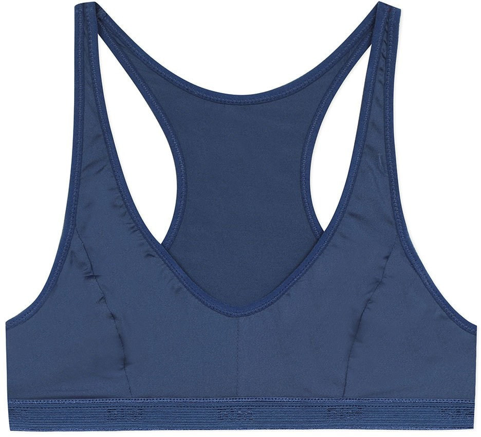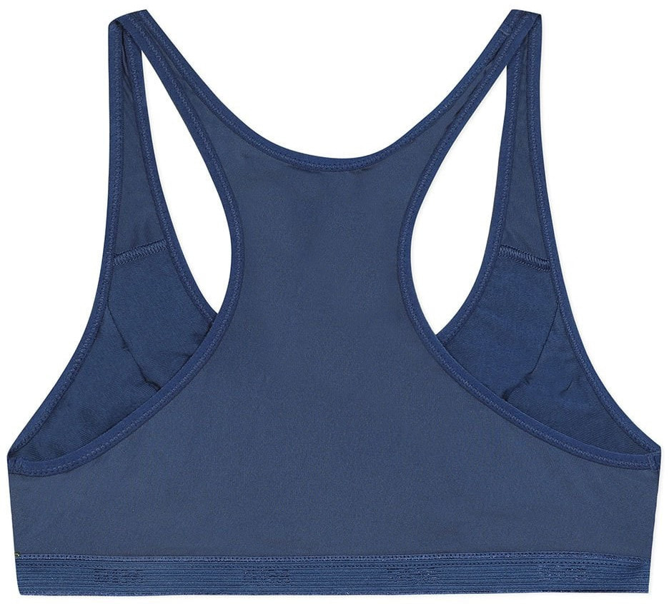 This blue microfibre sports bra is both comfortable and supportive thanks to its racer back, reinforced straps and elasticated band under the chest.