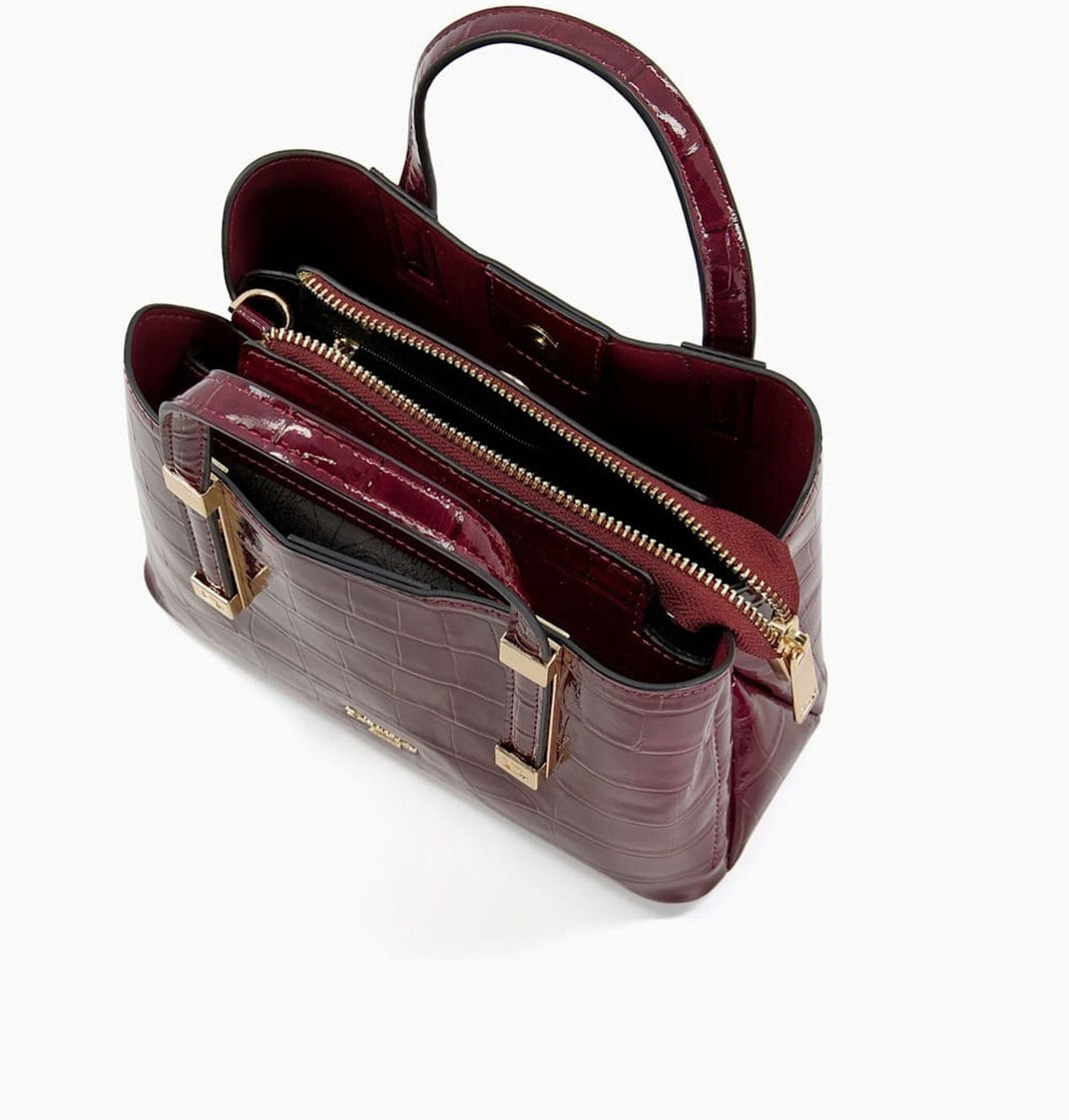 An elegant addition to any handbag collection, this miniature tote is certain to make a big impact this season. Featuring a central zip compartment and gold hardware as well as a removable crossbody handle.