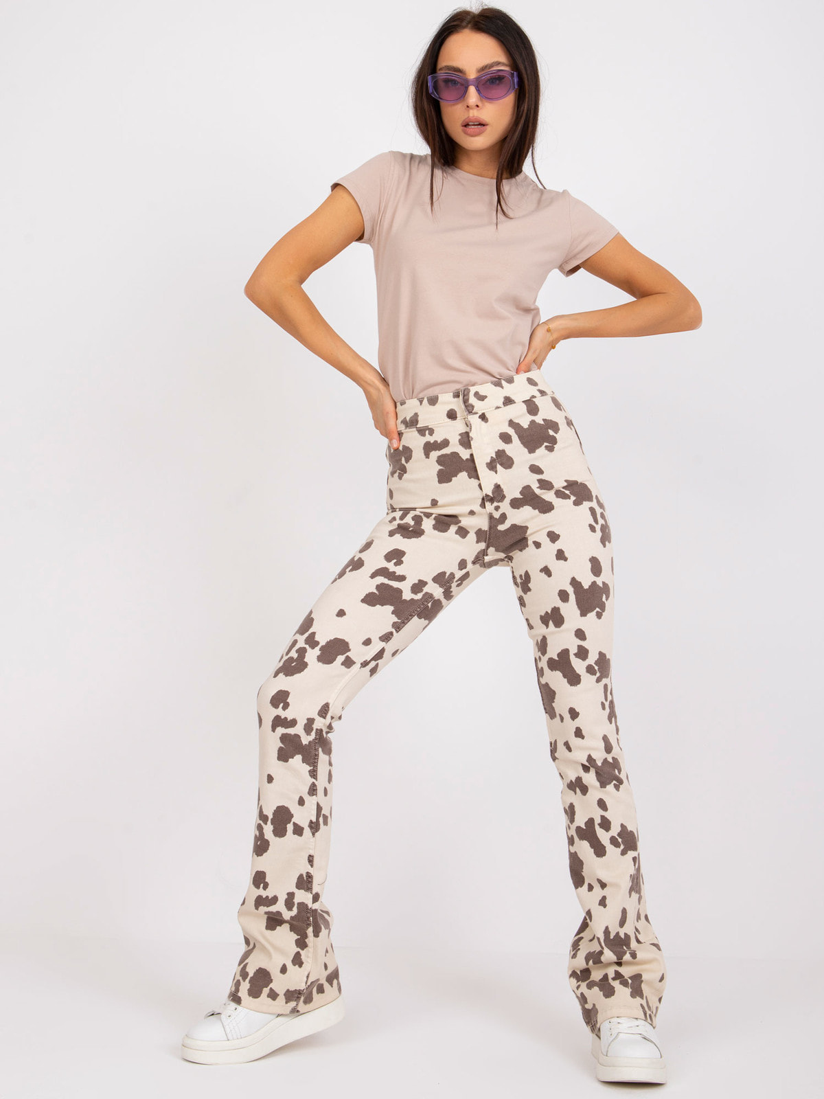 Гладкая бежевая футболка.