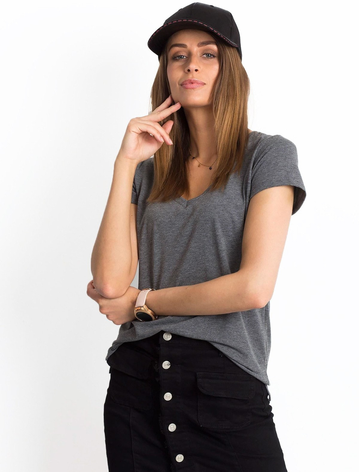 Меланжевая футболка с V-образным вырезом темно-серая.