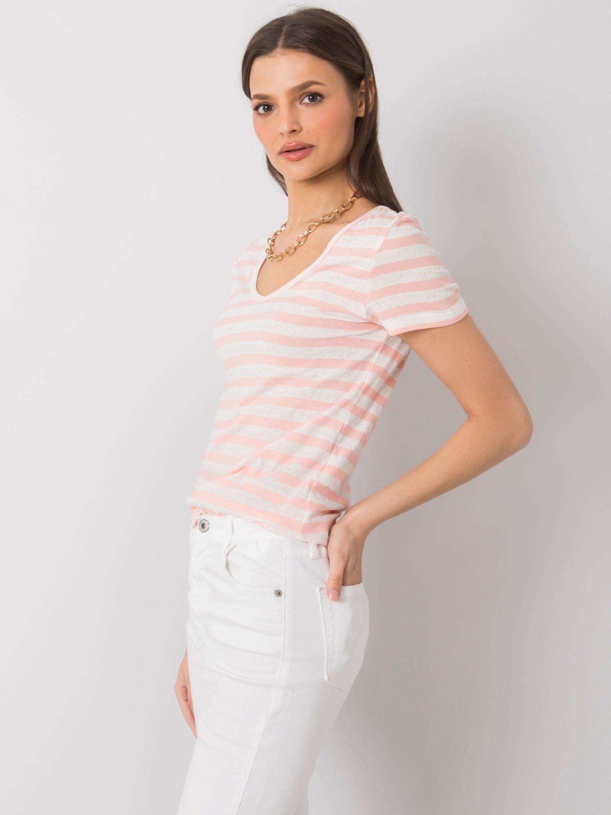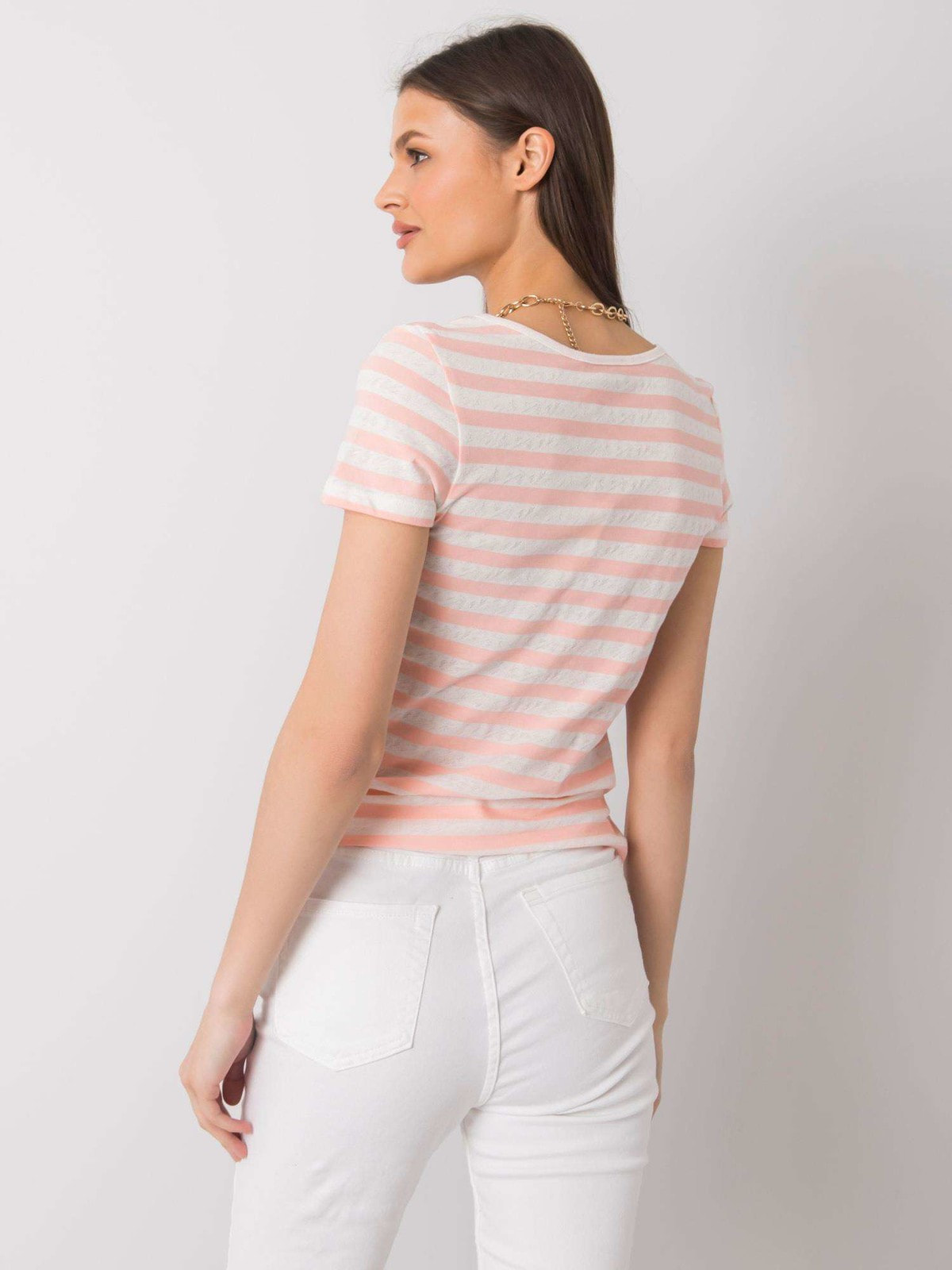 RUE PARIS бело-розовая полосатая Женская футболка .