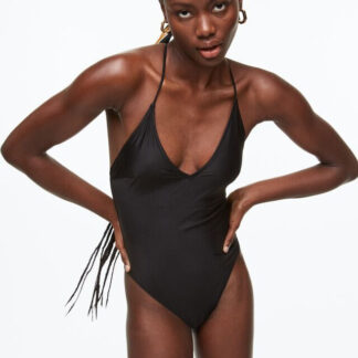 – Low Scoop Back One Piece With Adjustable Tie Shoulder Straps.
