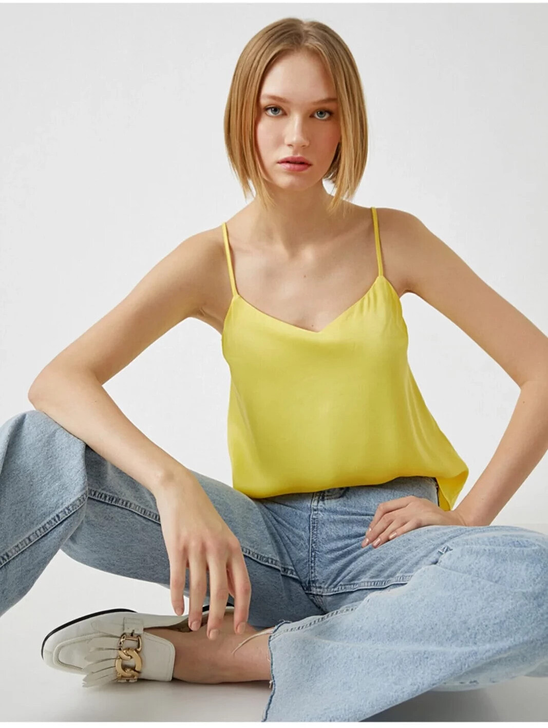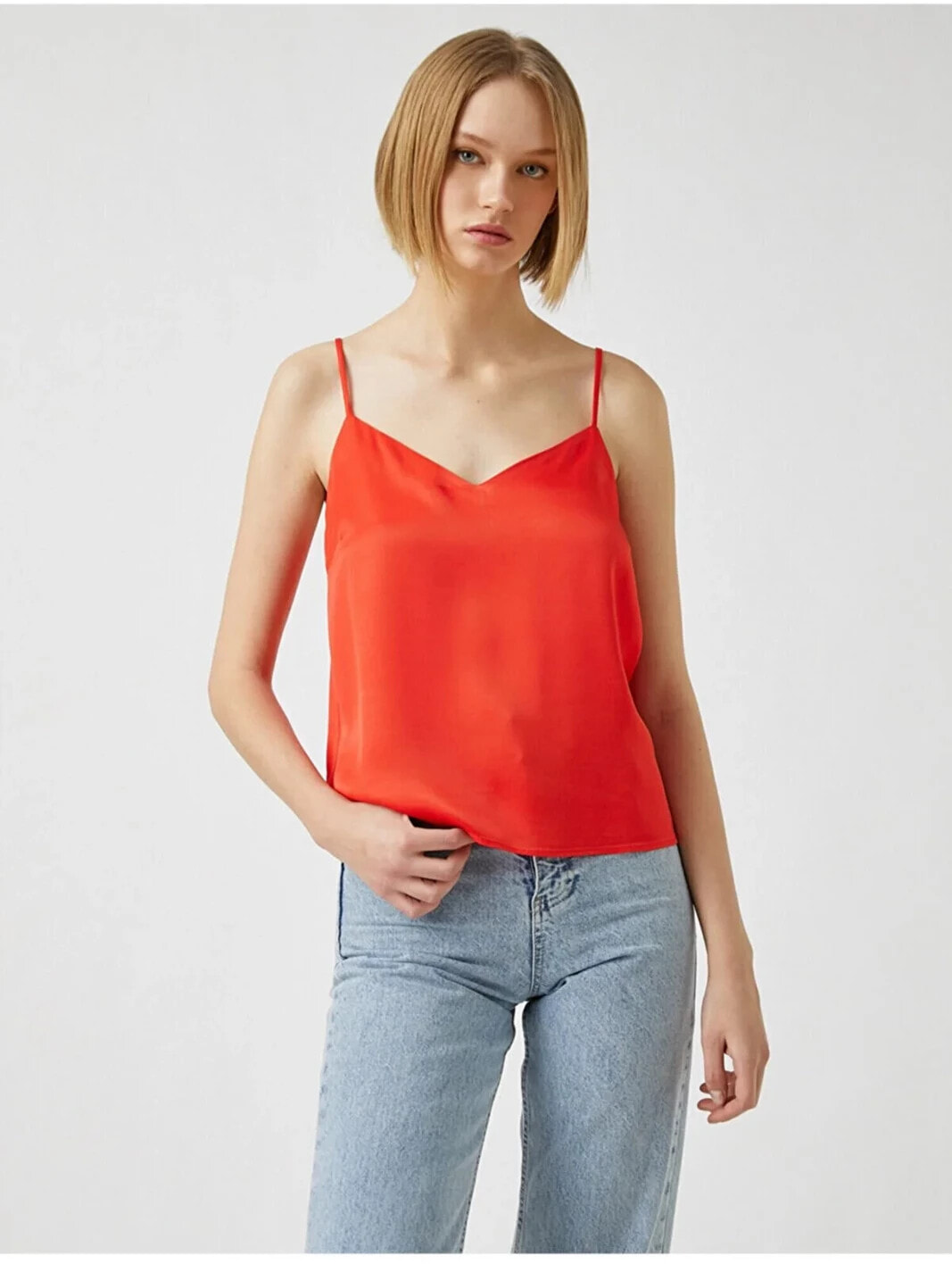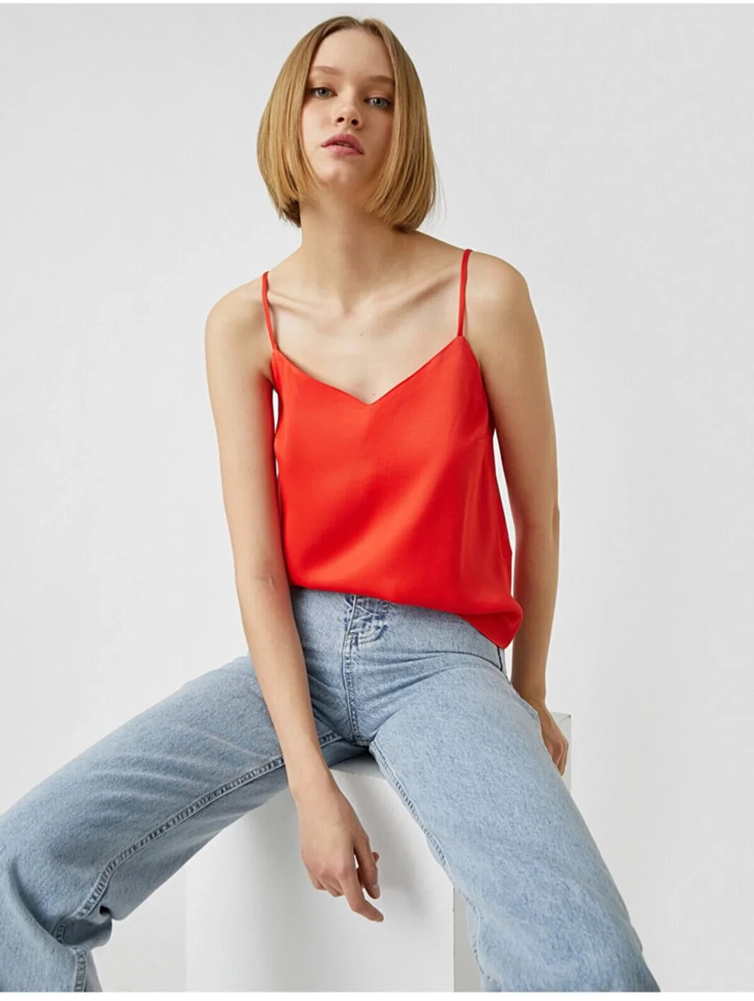 İnce Askılı Atlet Model Bilgileri: Boy:181 cm, Göğüs:84, Bel:61, Kalça:90, Modelin Bedeni:S