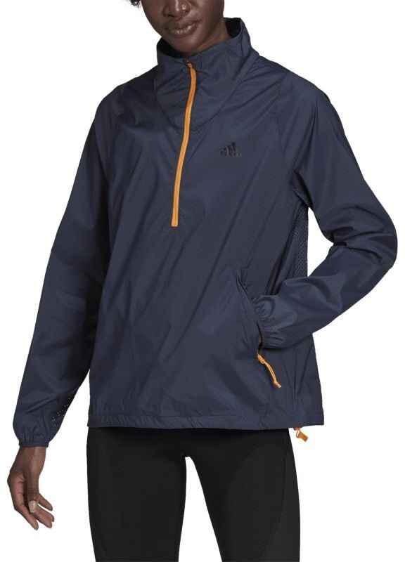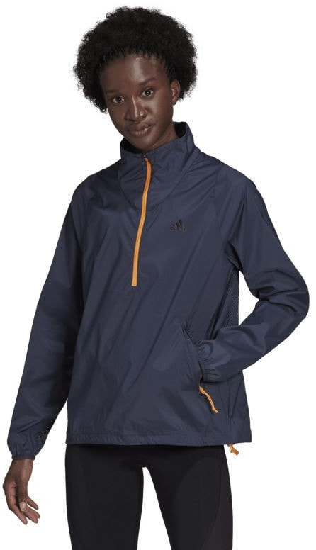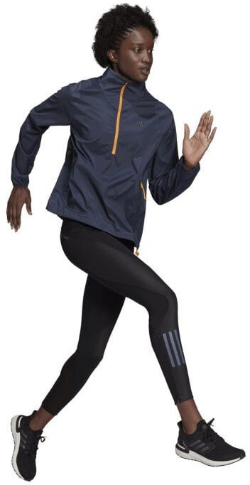In the adidas WIND.RDY running jacket, morning gusts of wind and drizzle become ideal conditions for jogging. The water-repellent coating keeps you dry and comfortable, and the entire jacket folds down to a small size as you warm up.