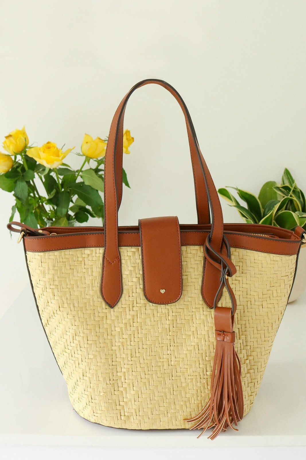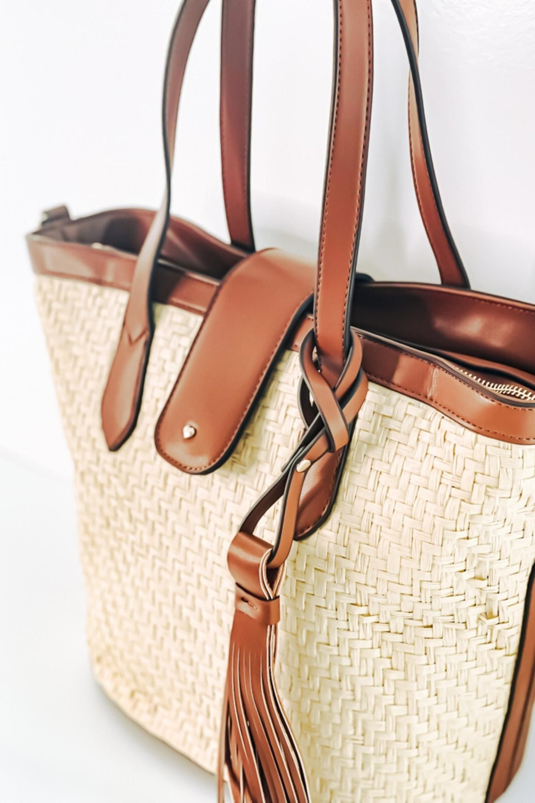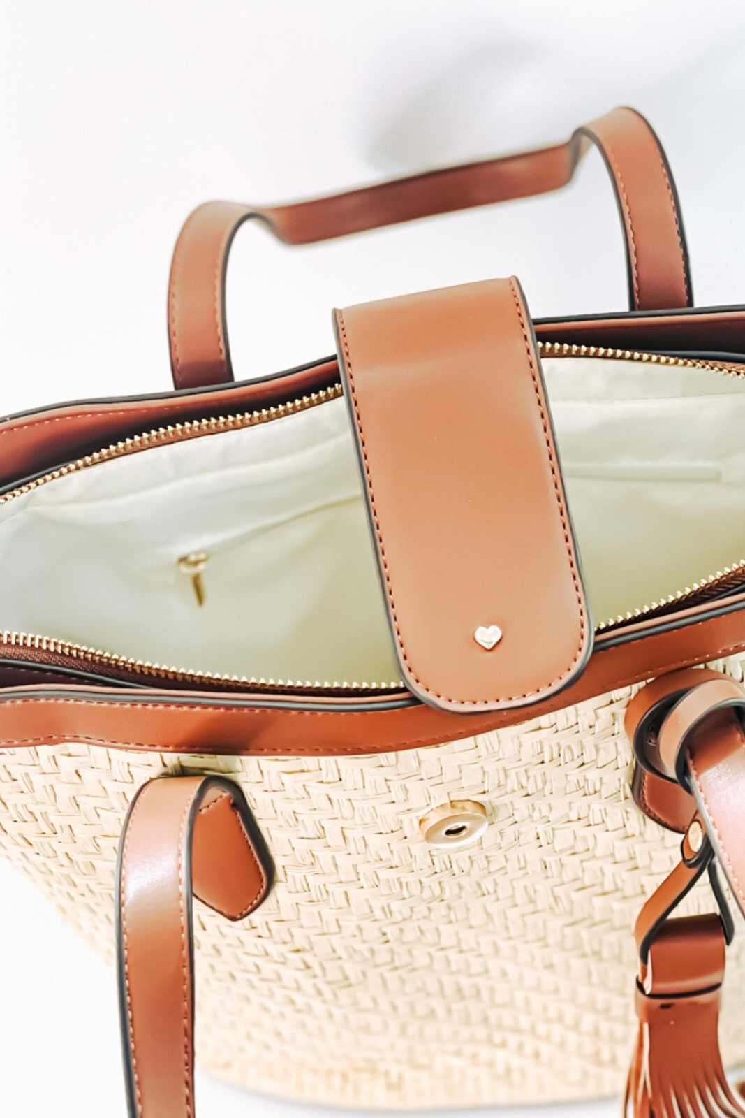 This large straw bag is perfect for allowing you to fill it with your daily essentials items and with it s ability to fasten shut, you can keep your all items protected this summer. It is the only bag you ll need for all your travels with its versatility being able to elevate day or evening looks.