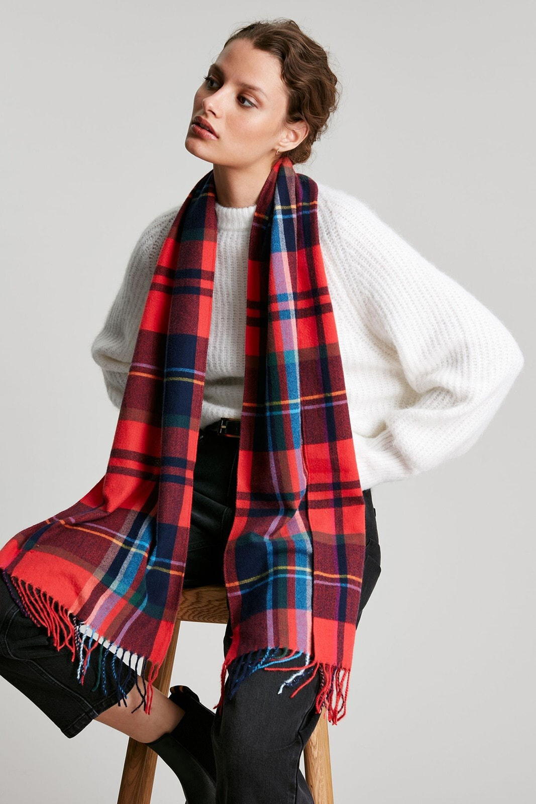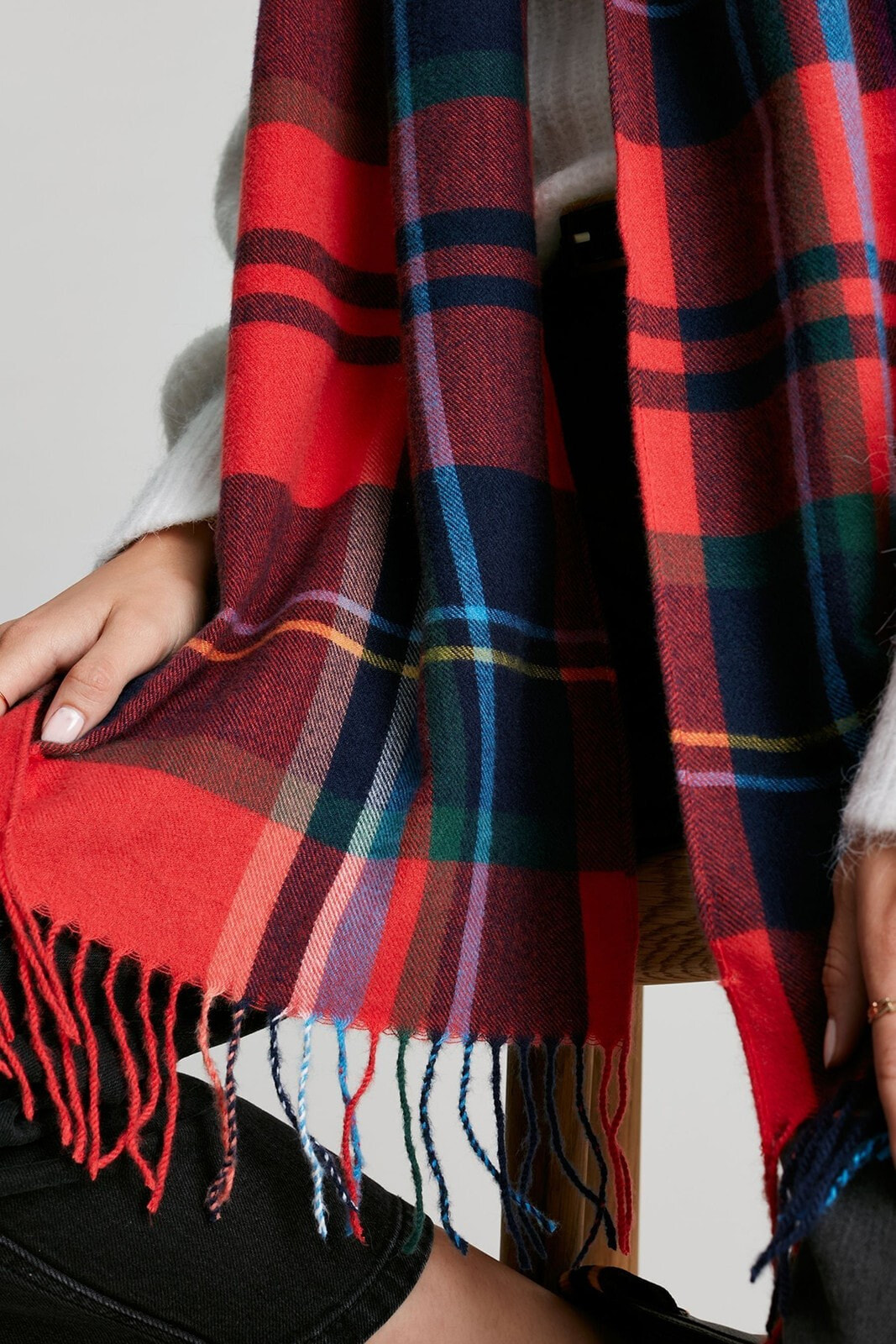 Get ready for the season of scarves and chillier weather with our new woven Bracken scarf. Its got a soft hand feel, and traditional tasselled ends and has been made using 100% recycled polyester. The all-over checked print will add an eye-catching touch to your winter wardrobe while the long length and versatile rectangular shape, make it great for snuggling into.