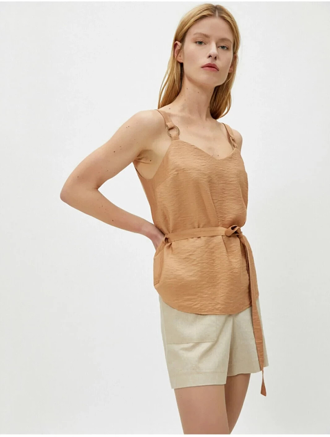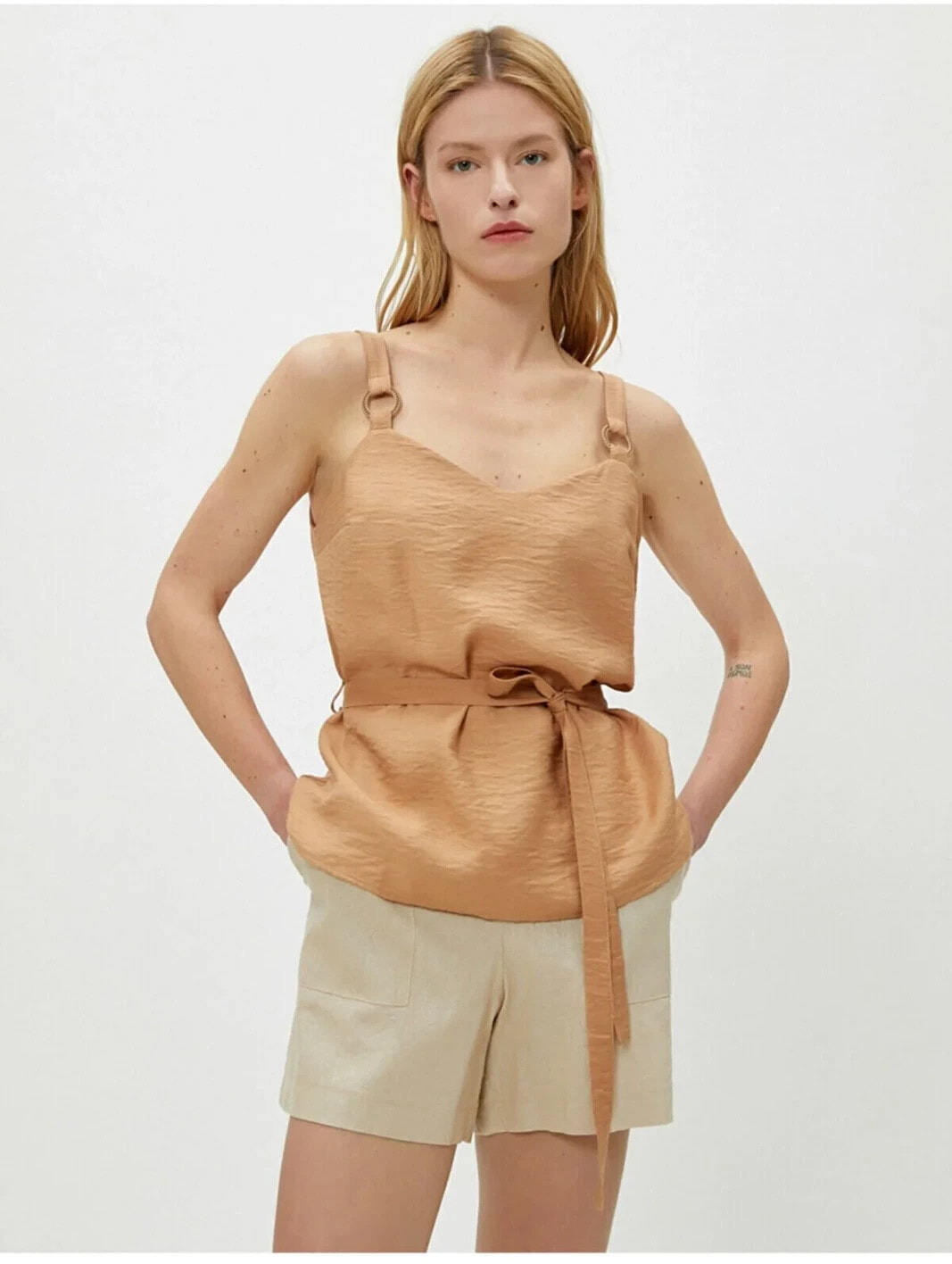 Askılı, Kolsuz, Beli Bağlamalı AtletManken ÖlçüleriBoy: ‘175’Göğüs Çevresi: ’80’Bel Genişliği: ’59’Kalça Genişliği: ’88’ Materiel:%70 Viskoz, %18 Keten, %12 Poliamid Height:175 Waist:59 Breast:80 Beam:88 Gender:Kadın