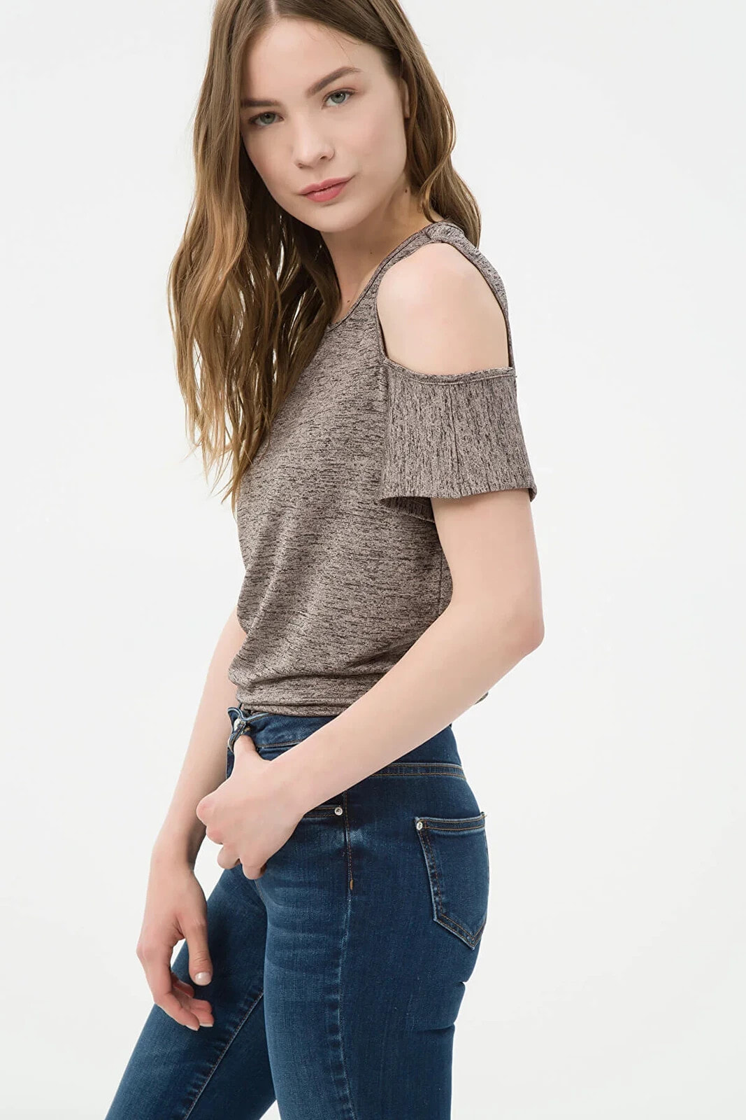Rahat Kesim, Omuz Detaylı, Oyuk Yaka T-Shirt Height:177 Waist:59 Breast:79 Beam:89 Materiel:Ana Kumas %90 Polyester – %10 Elastan Gender:Kadın