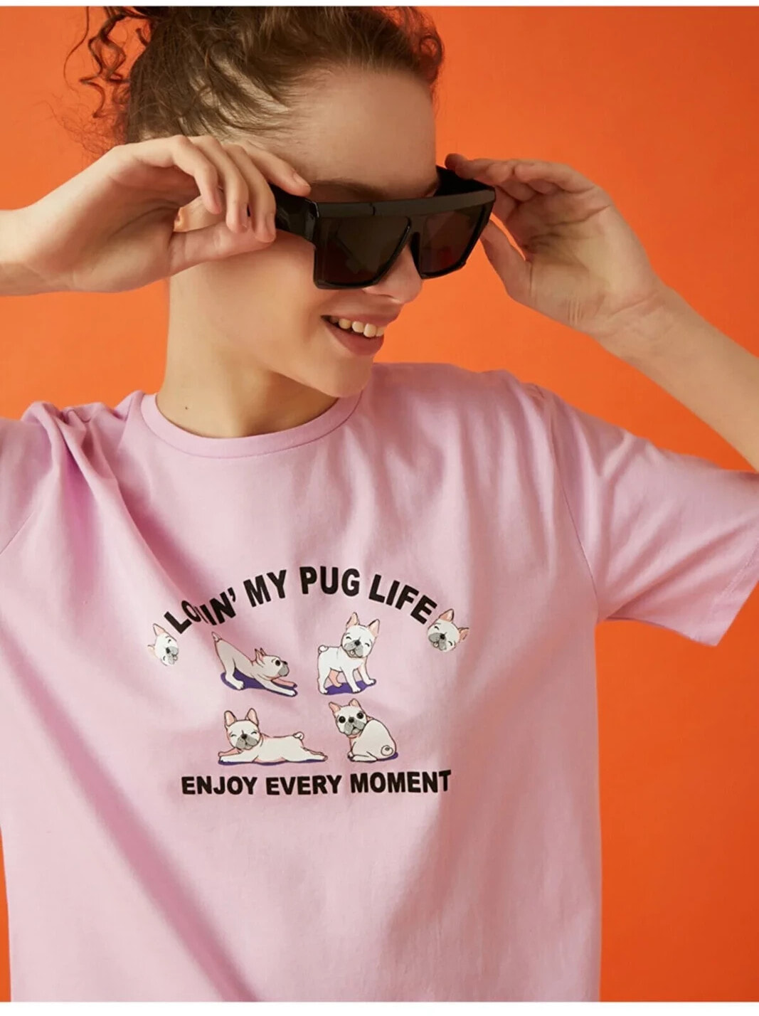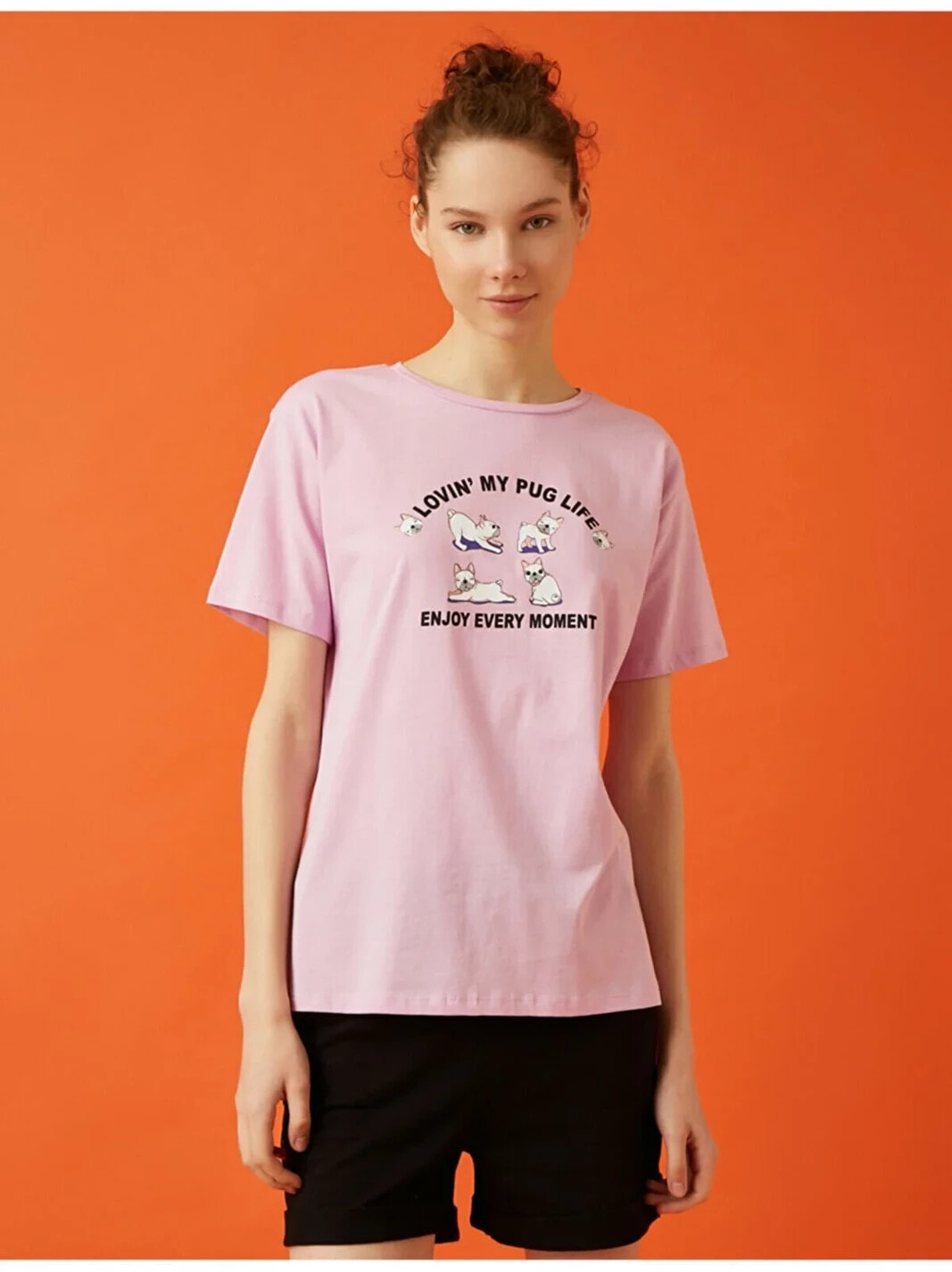 Bisiklet Yaka, Pamuklu, Baskılı TişörtManken ÖlçüleriBoy: ’16’Göğüs Çevresi: ’86’Bel Genişliği: ’60’Kalça Genişliği: ’90’ Materiel: %100 Pamuk Height:16 Waist:60 Breast:86 Beam:90 Gender:Kadın