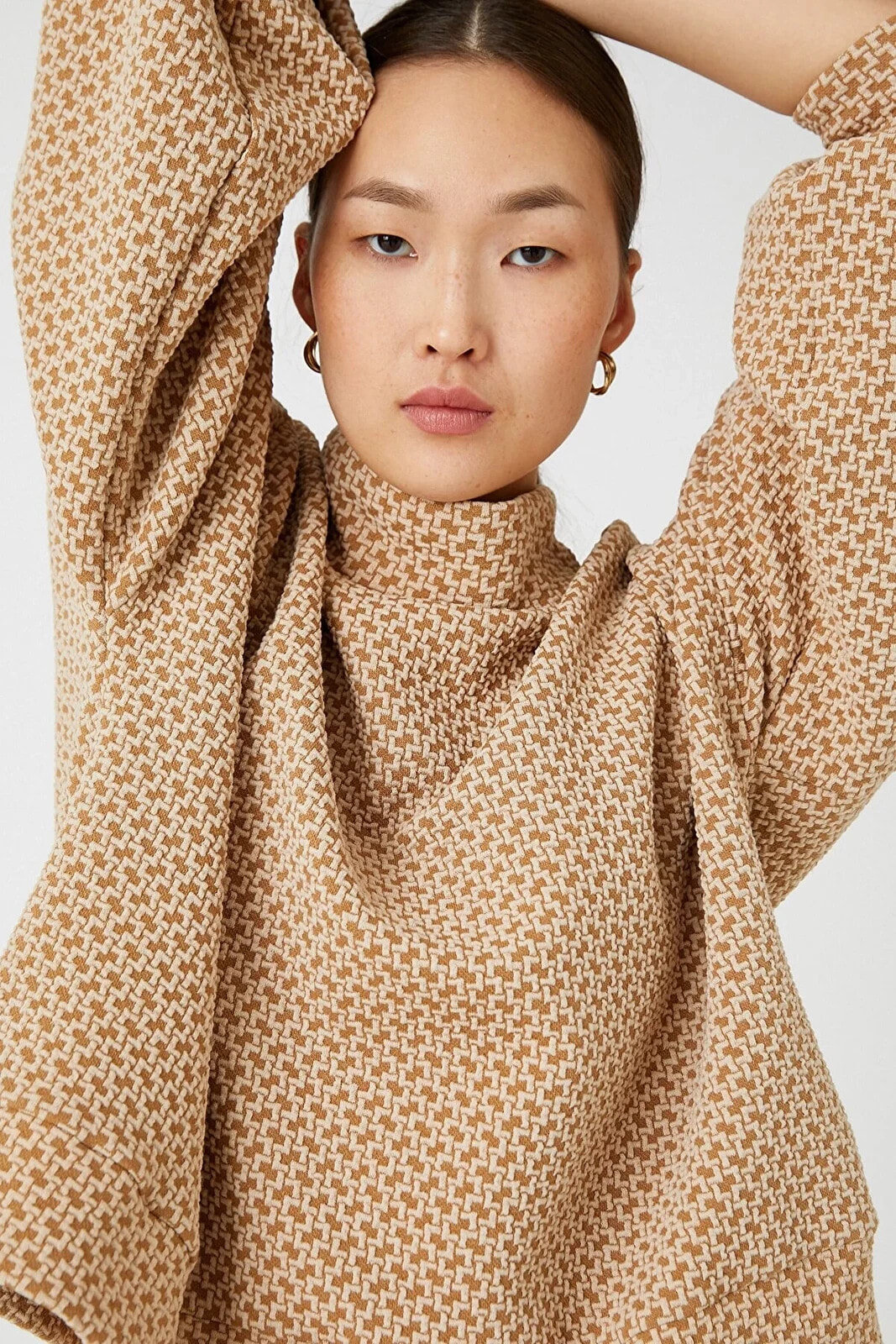 Kadın Bej Desenli T-Shirt 3WAK50109EK