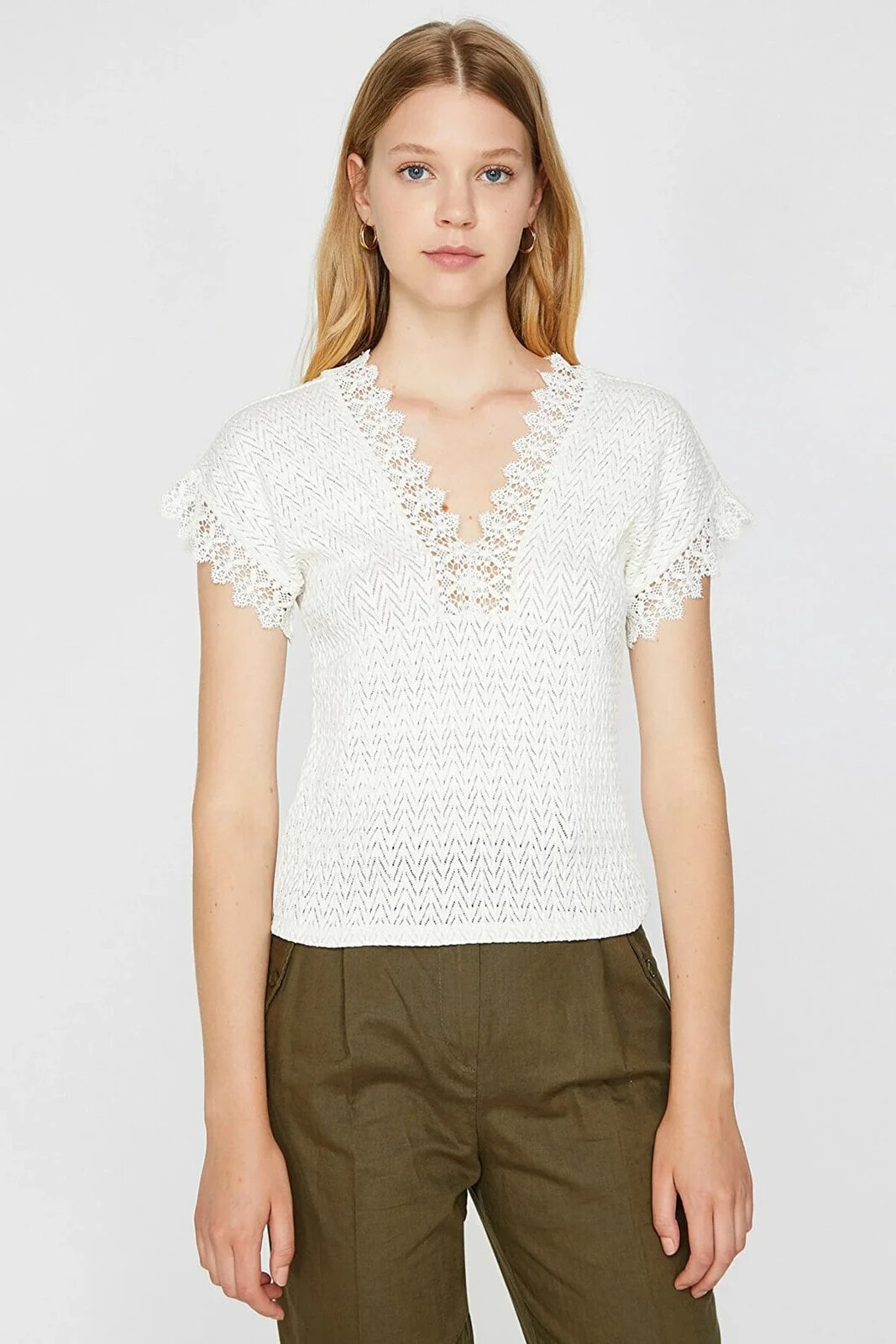 V Yaka, Kısa Kollu T-ShirtManken ÖlçüleriBoy: ‘174’Göğüs Çevresi: ’82’Bel Genişliği: ’61’Kalça Genişliği: ’90’ Materiel:%95 Polyester, %5 Elastan Height:174 Waist:61 Breast:82 Beam:90 Gender:Kadın