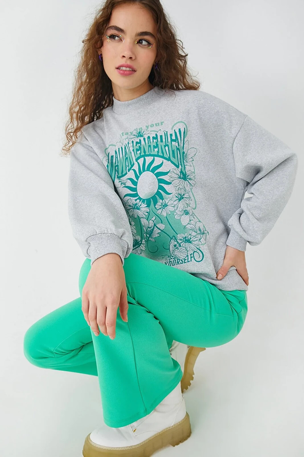 Kadın Gri Melanj Sweatshirt 3WAL10485IK