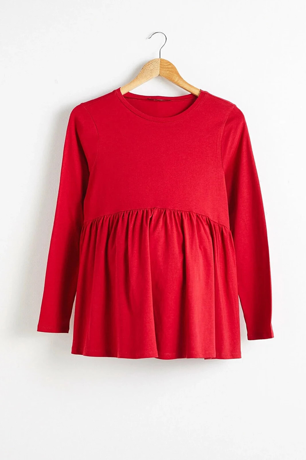 Kadın Tişört Etek ucu volanlı Siluet:Belden Oturtma Ürün Tip:Tişört Yaka:Bisiklet Yaka Okazyon:Casual/Günlük Kalınlık:Orta Kalınlık Kol Boyu:Uzun Kol Desen:Düz Uzunluk:Basen Altı Tarz:LCWAIKIKI Maternity Kumaş:Penye Ana Kumaş:%100 Pamuk Cinsiyet:Kadın Yaş Grubu:Kadın