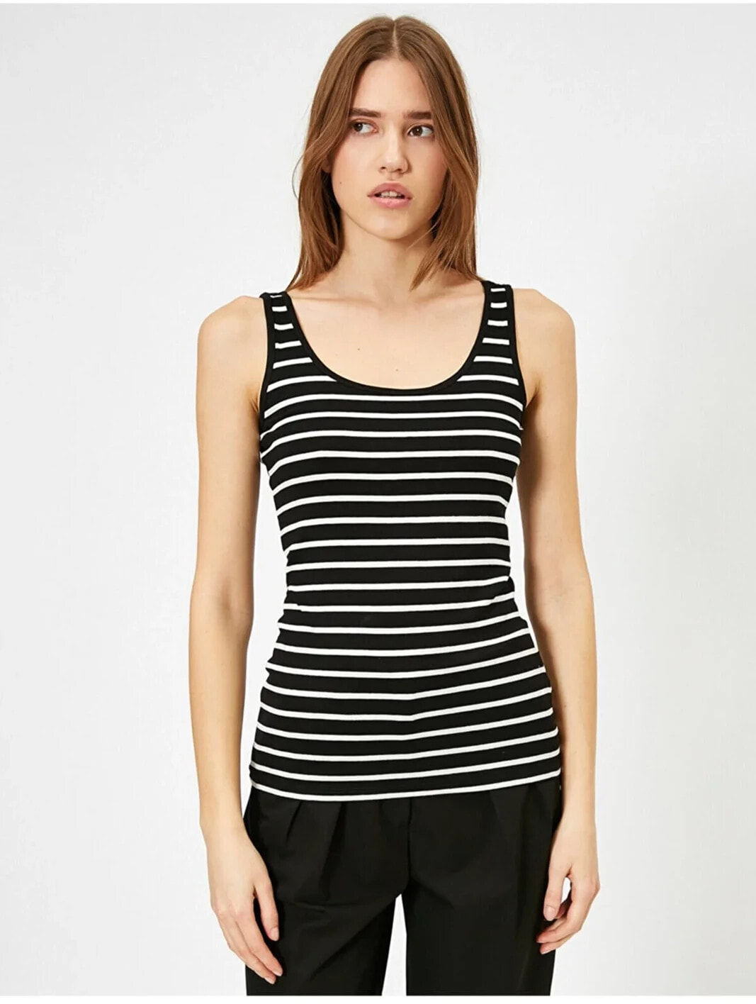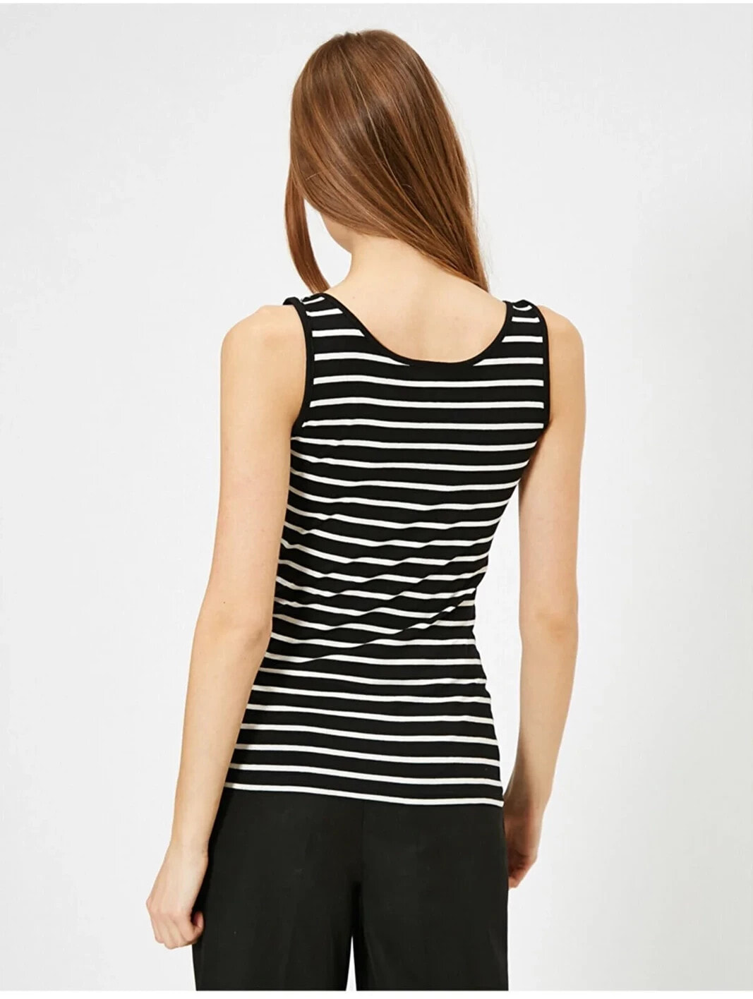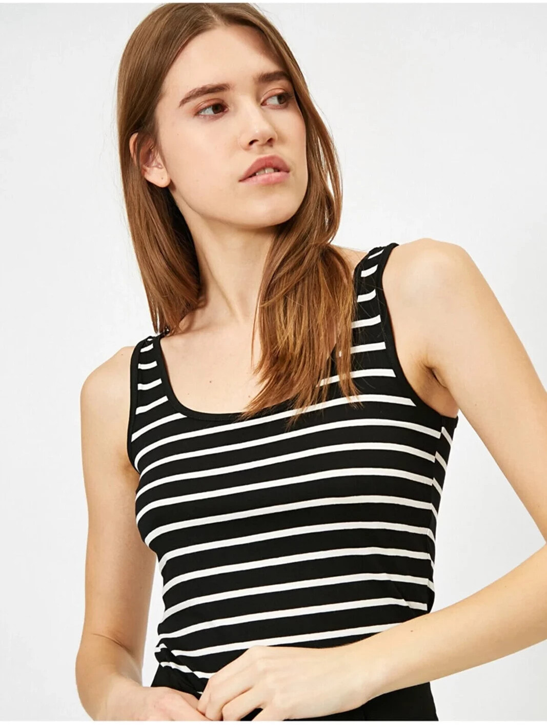 Bisiklet Yaka, Kolsuz, Çizgili Atlet Model Bilgileri: Boy:176 cm, G??????s:79, Bel:59, Kal??a:89, Modelin Bedeni:S