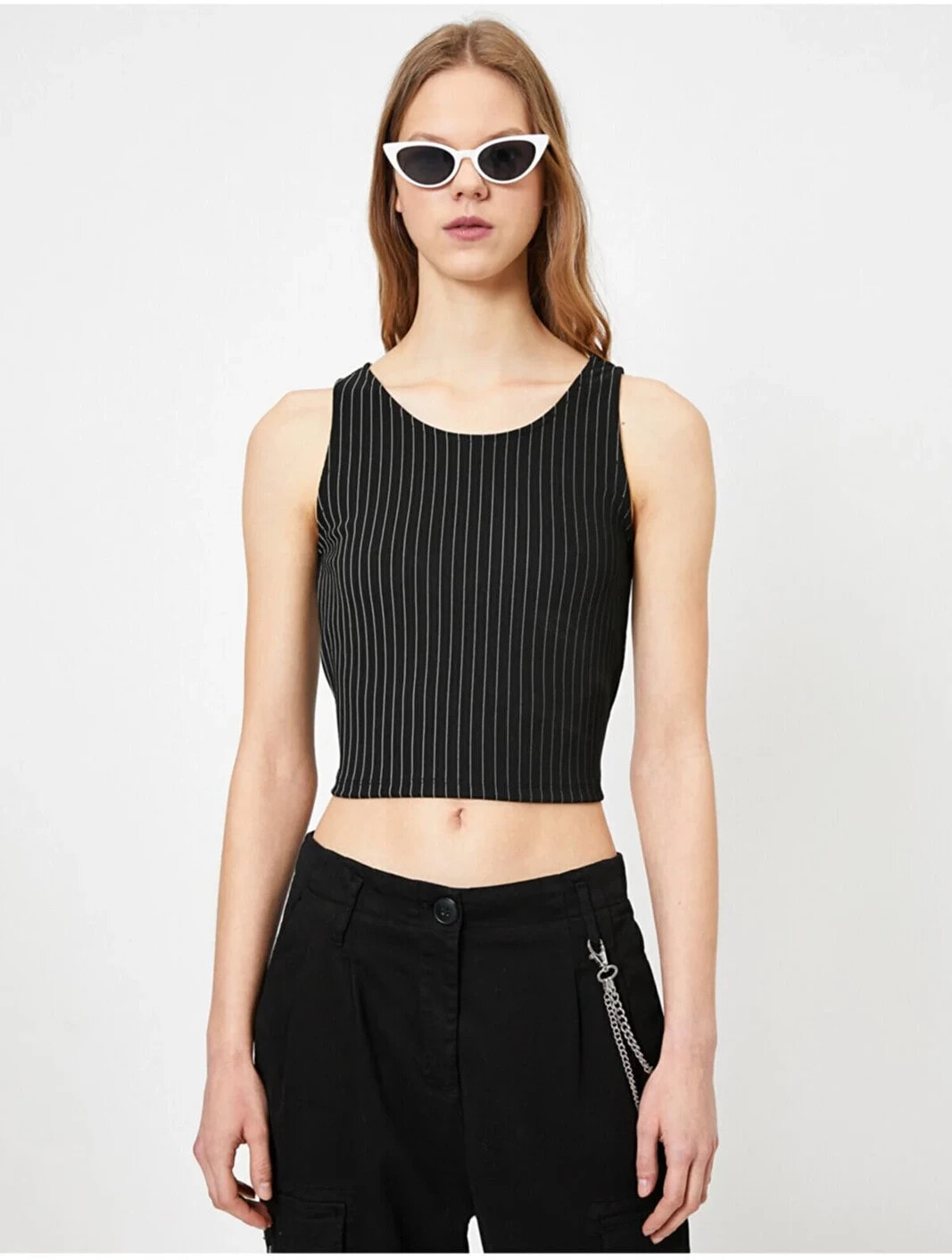 Ole by Koton – Genç Kız Koleksiyonu | Bisiklet Yaka, Çizgili Atlet Model Bilgileri: Boy:179 cm, G??????s:82, Bel:59, Kal??a:89, Modelin Bedeni:S