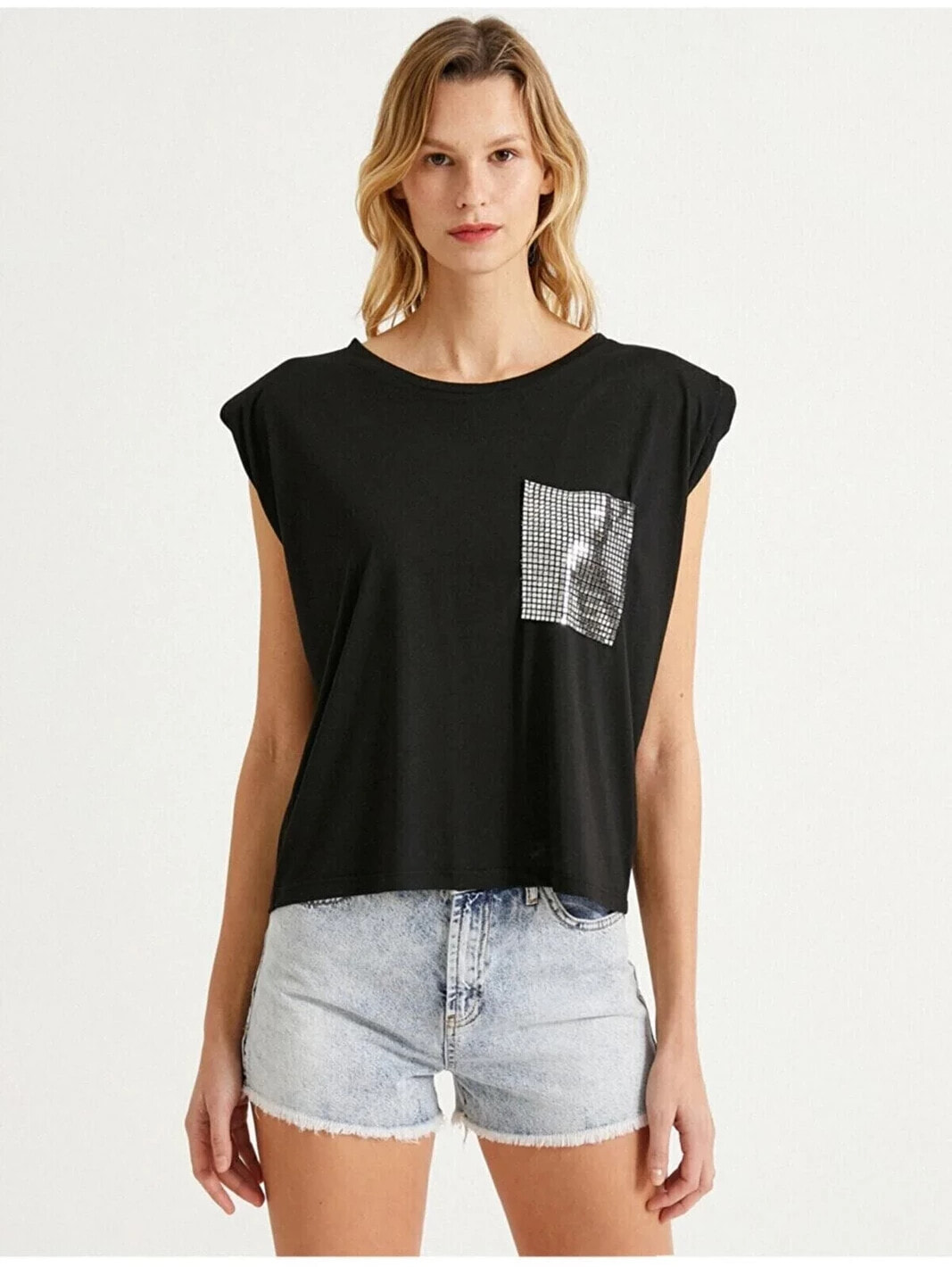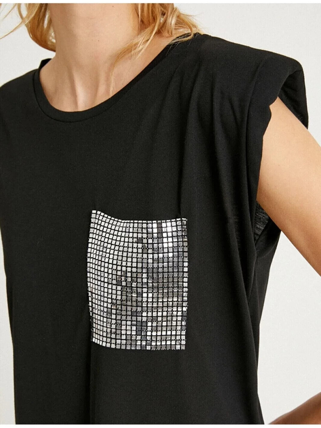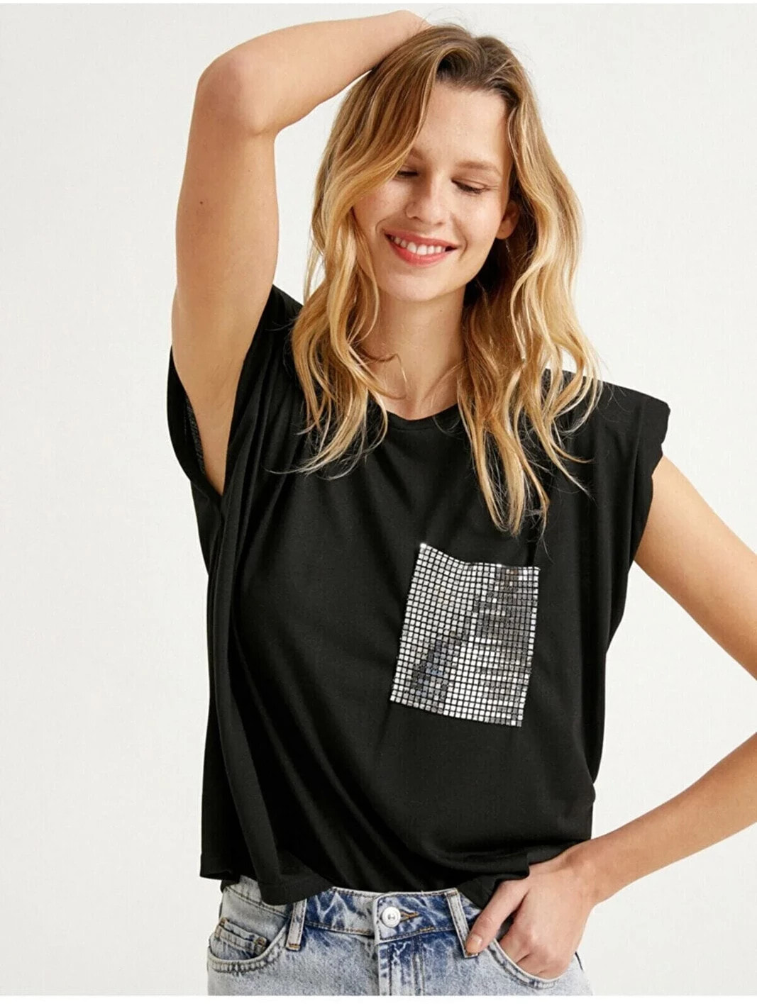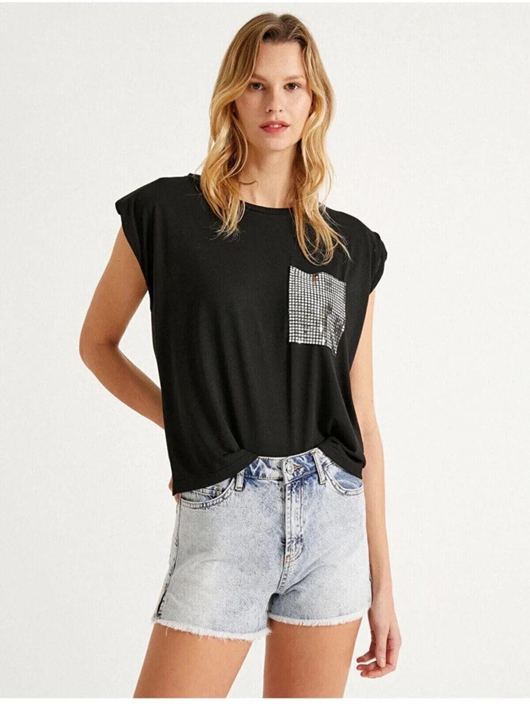 Cep Detaylı, Bisiklet Yaka, Pullu Tişört Manken ÖlçüleriBoy: ‘176’Göğüs Çevresi: ’83’Bel Genişliği: ’60’Kalça Genişliği: ’90’ Materiel:%65 Polyester, %35 Viskoz Height:176 Waist:60 Breast:83 Beam:90 Gender:Kadın