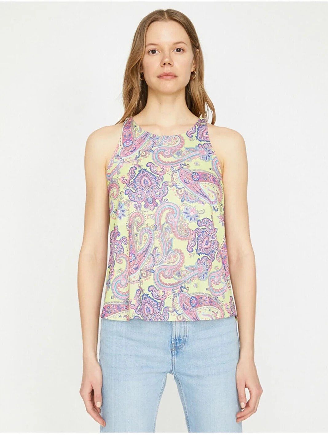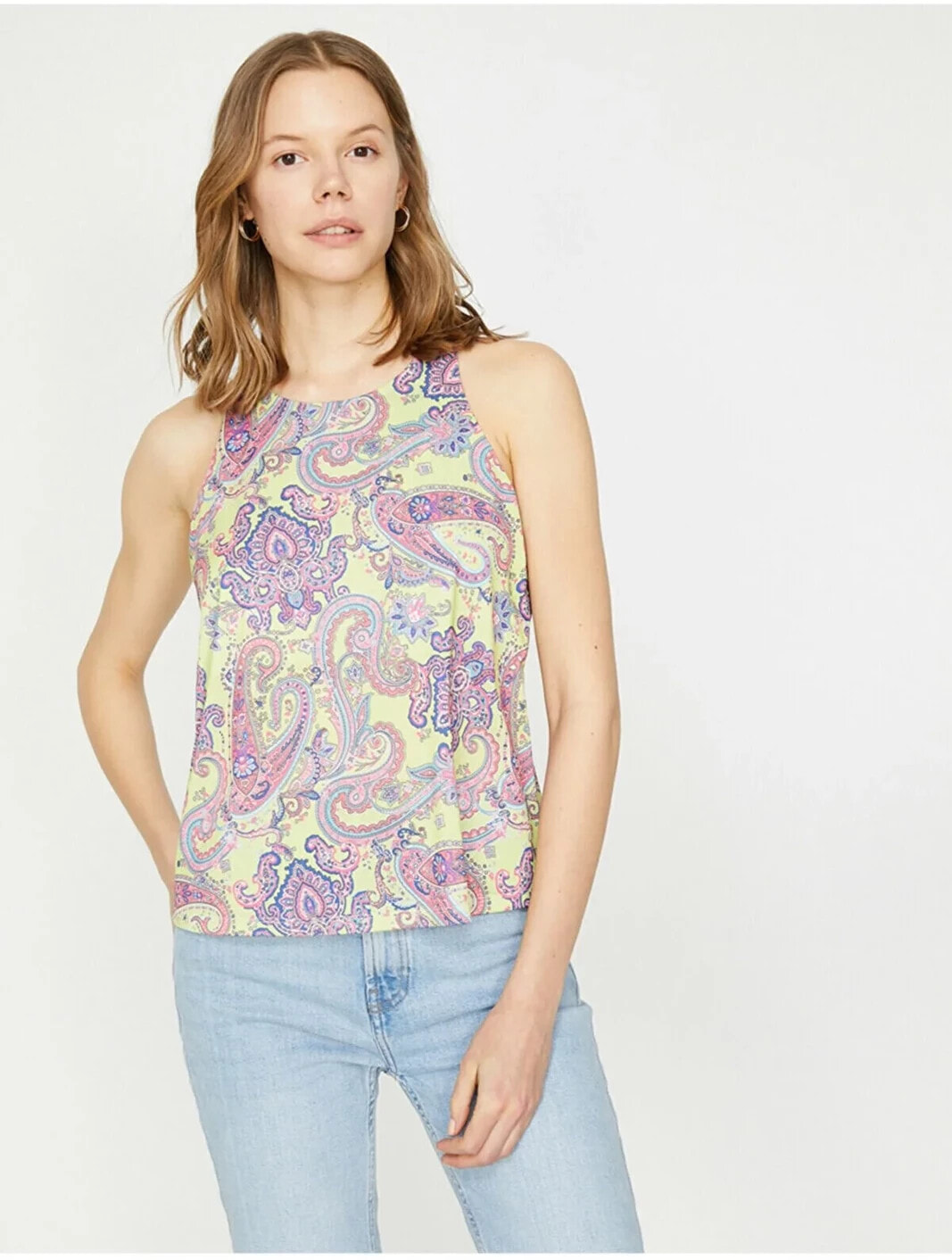 Bisiklet Yaka, Kolsuz, Desenli AtletManken ÖlçüleriBoy: ‘177’Göğüs Çevresi: ’82’Bel Genişliği: ’61’Kalça Genişliği: ’88’ Materiel:%96 Polyester, %4 Elastan Height:177 Waist:61 Breast:82 Beam:88 Gender:Kadın