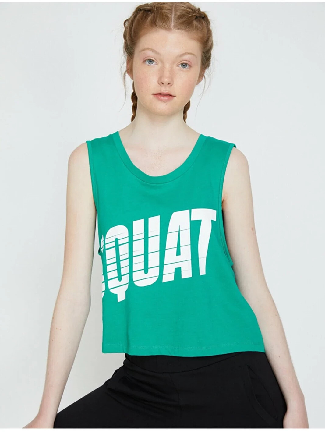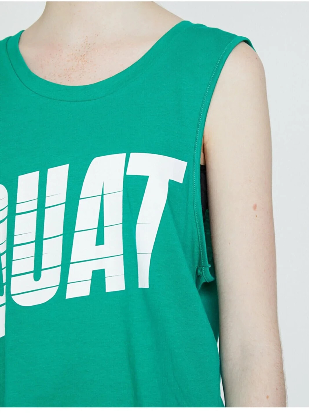 Bisiklet Yaka, Kolsuz, Yazılı Baskılı AtletManken ÖlçüleriBoy: ‘175’Göğüs Çevresi: ’76’Bel Genişliği: ’60’Kalça Genişliği: ’90’ Materiel:%100 Pamuk Height:175 Waist:60 Breast:76 Beam:90 Gender:Kadın
