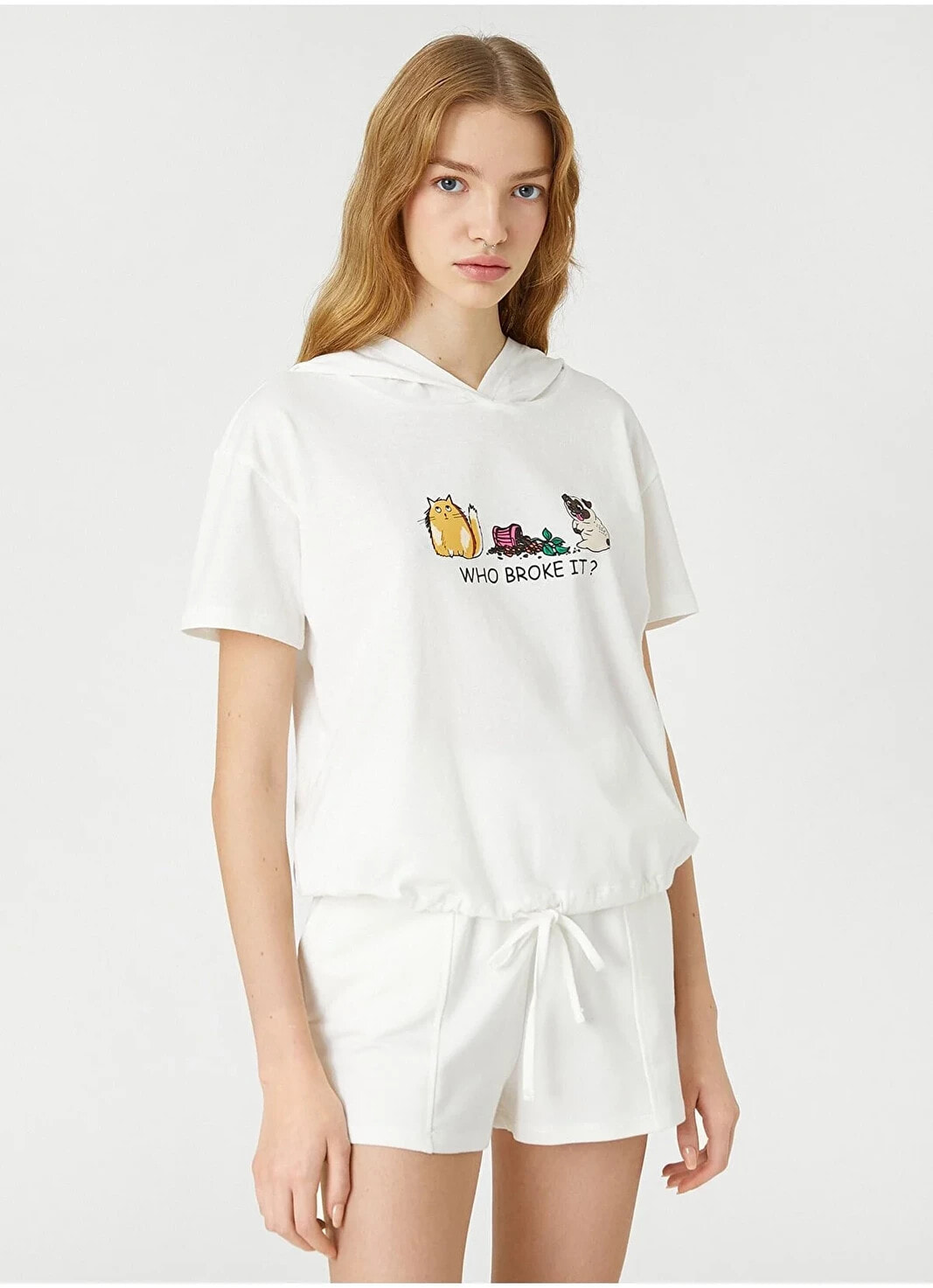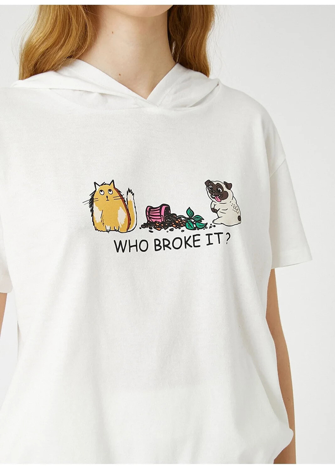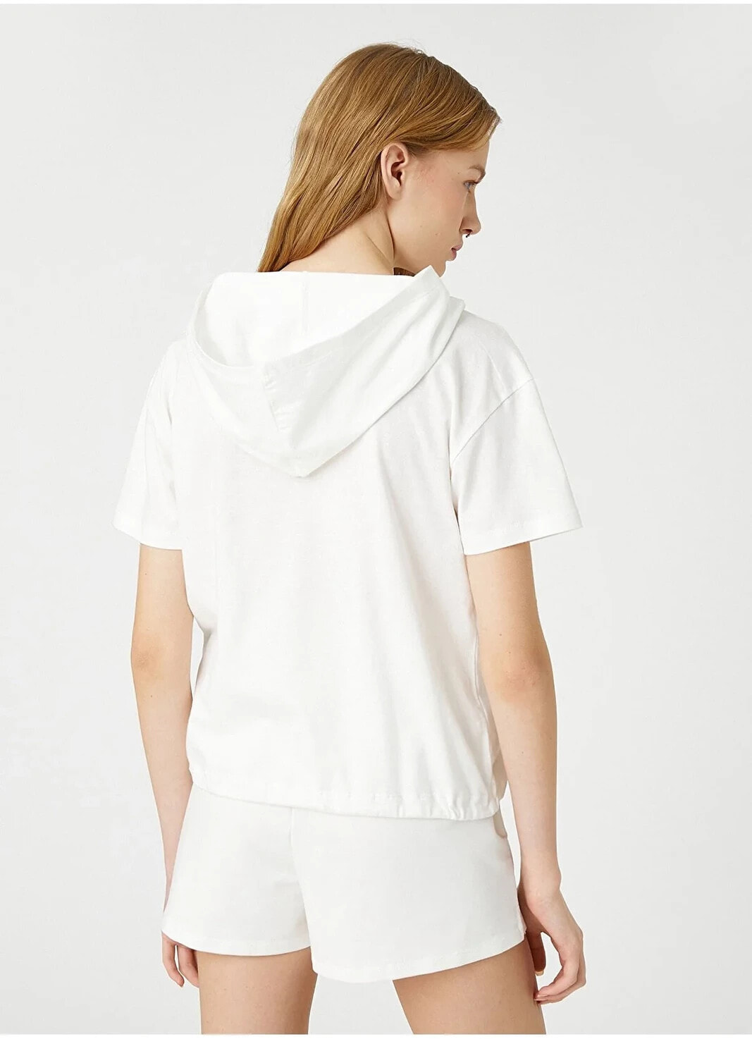 Koton Kapüşon Yaka Baskılı Kırık Beyaz Kadın T-Shirt 3SAL10102IK Yaş Grubu:Kadın Cinsiyet:Kadın