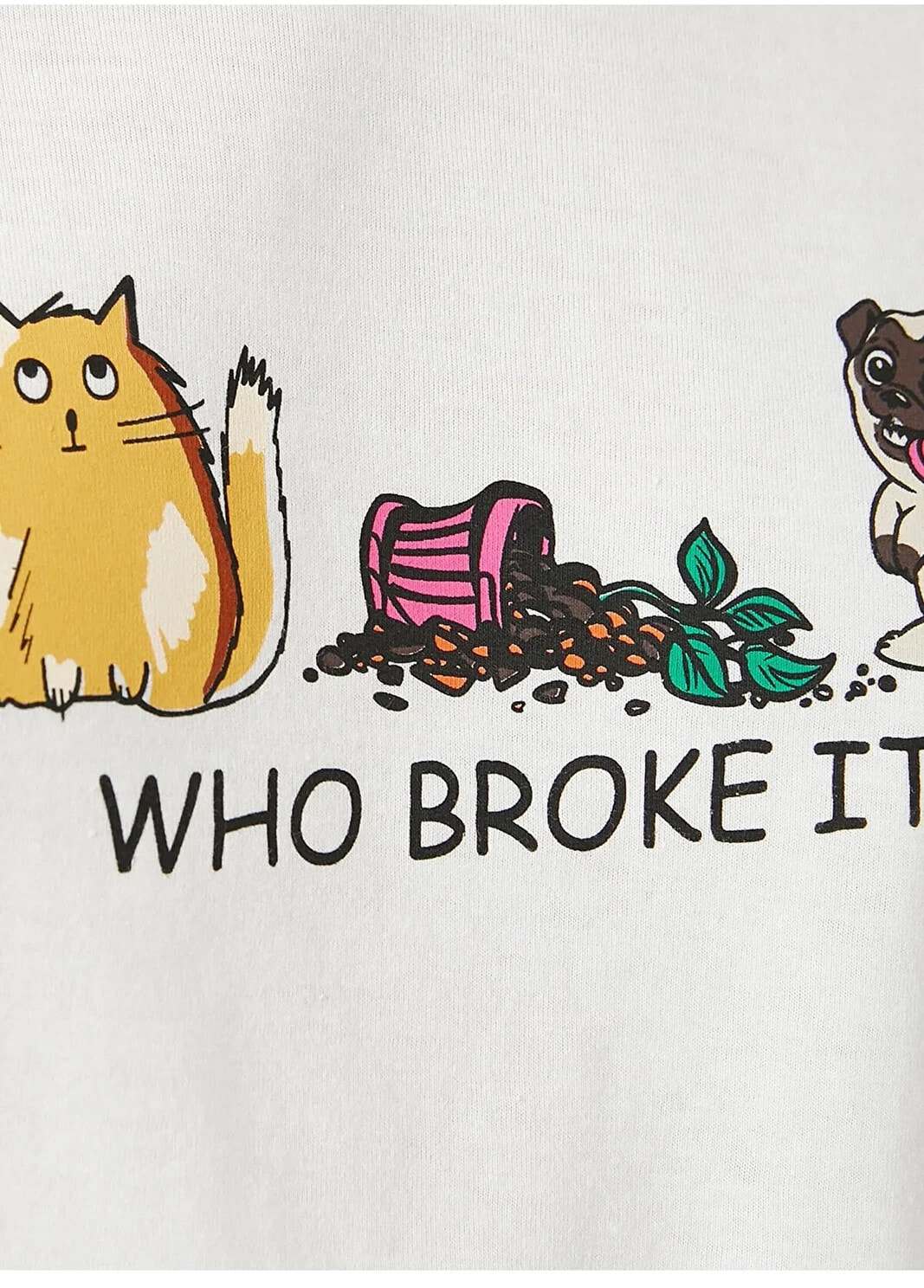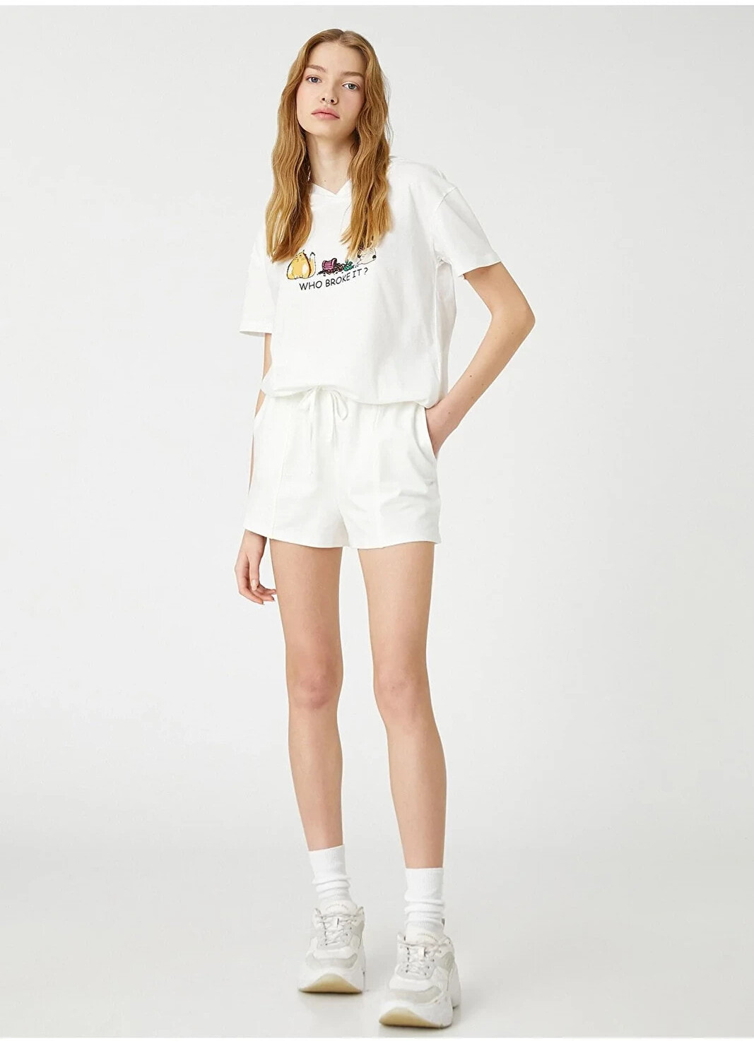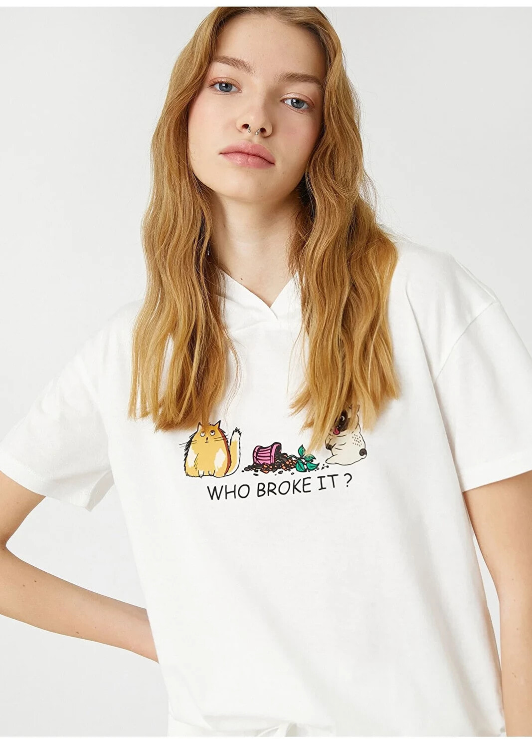 Koton Kapüşon Yaka Baskılı Kırık Beyaz Kadın T-Shirt 3SAL10102IK Yaş Grubu:Kadın Cinsiyet:Kadın