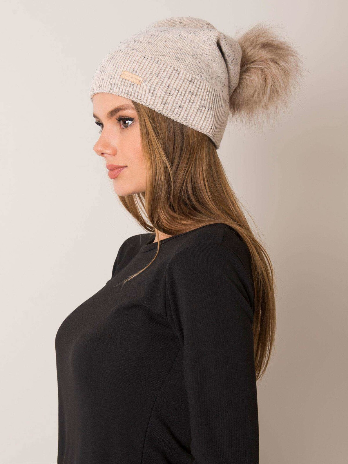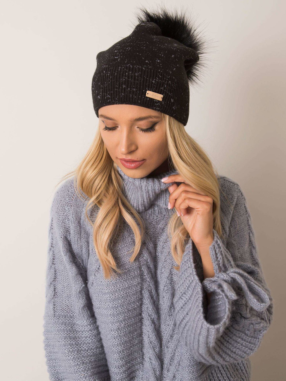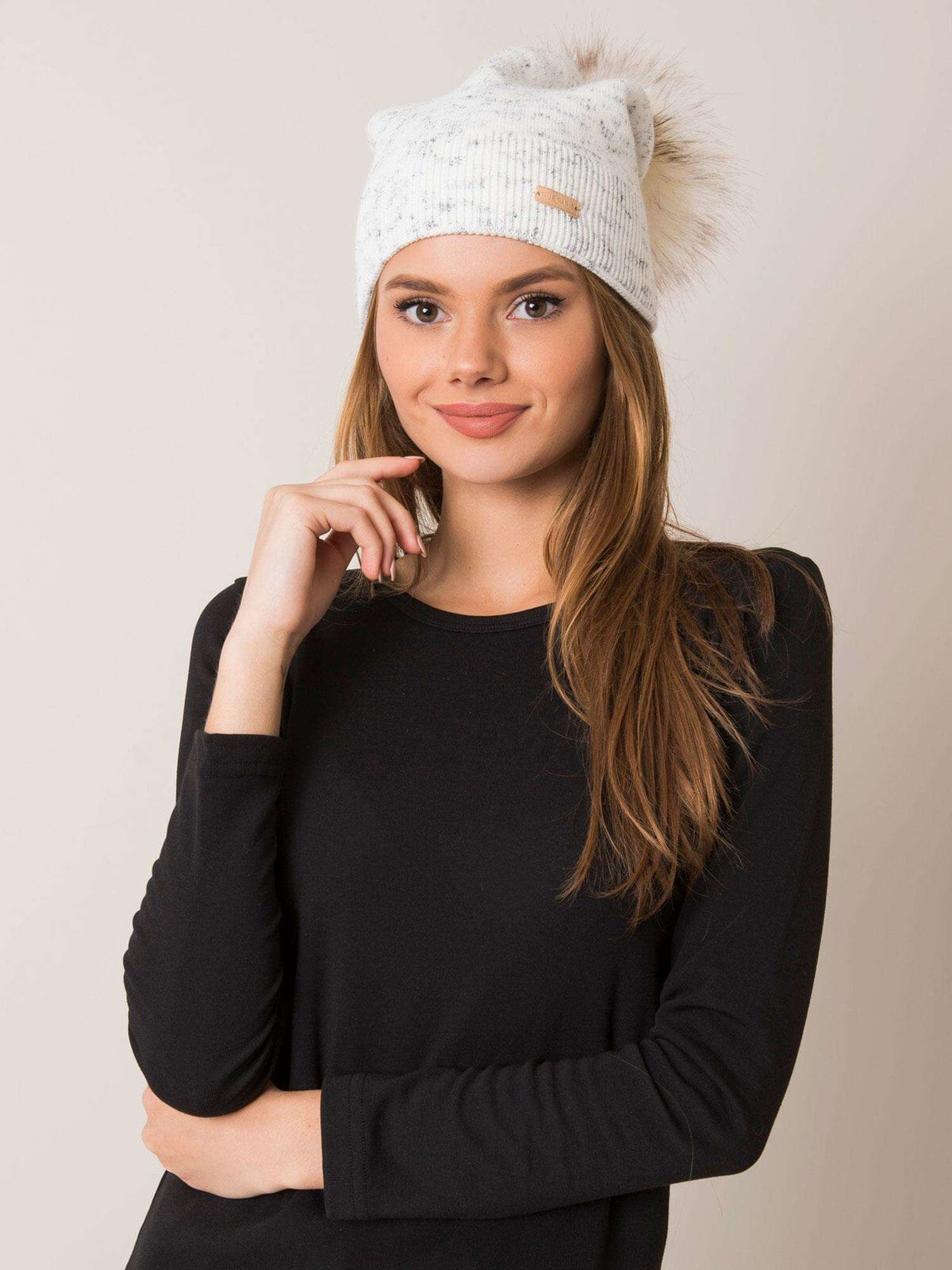 Rue PARIS Ecru женская шапка с помпоном польский продукт