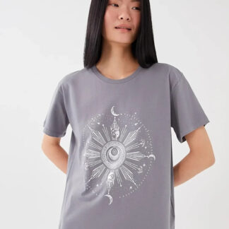 Kısa Kollu, Baskılı Tişört Model Bilgileri: Boy:176 cm, Göğüs:75, Bel:60, Kalça:88, Modelin Bedeni:S