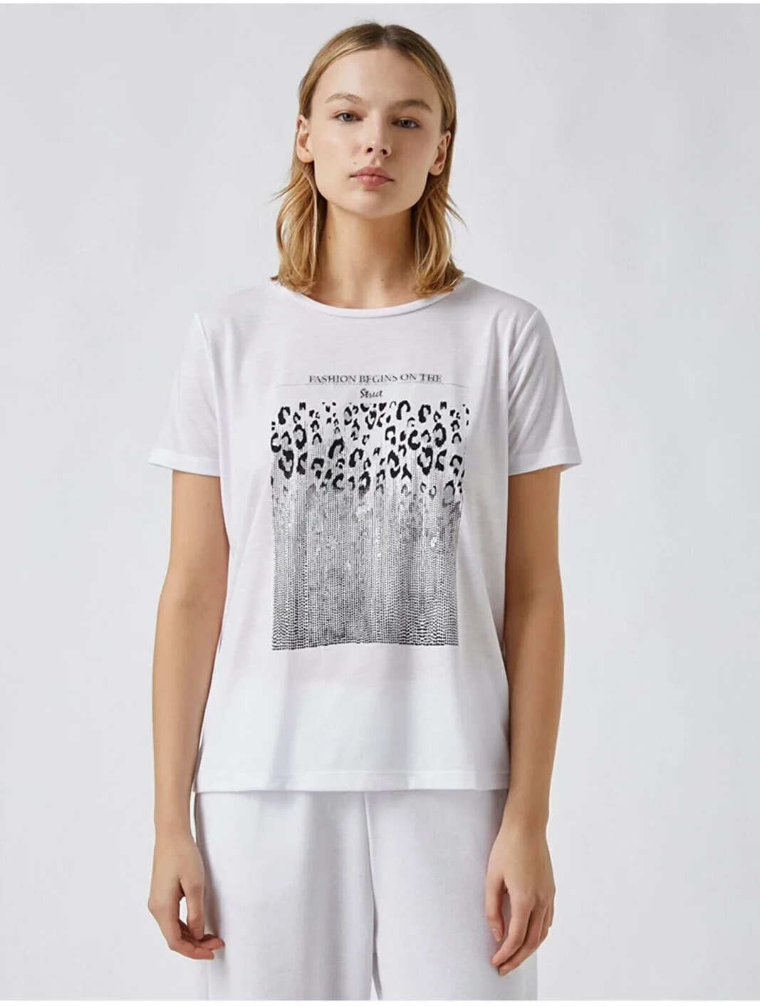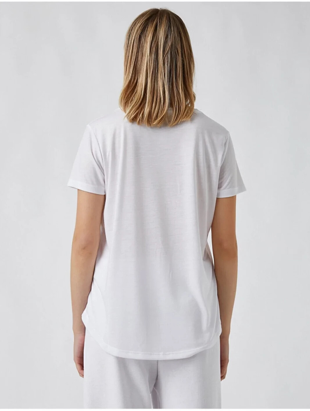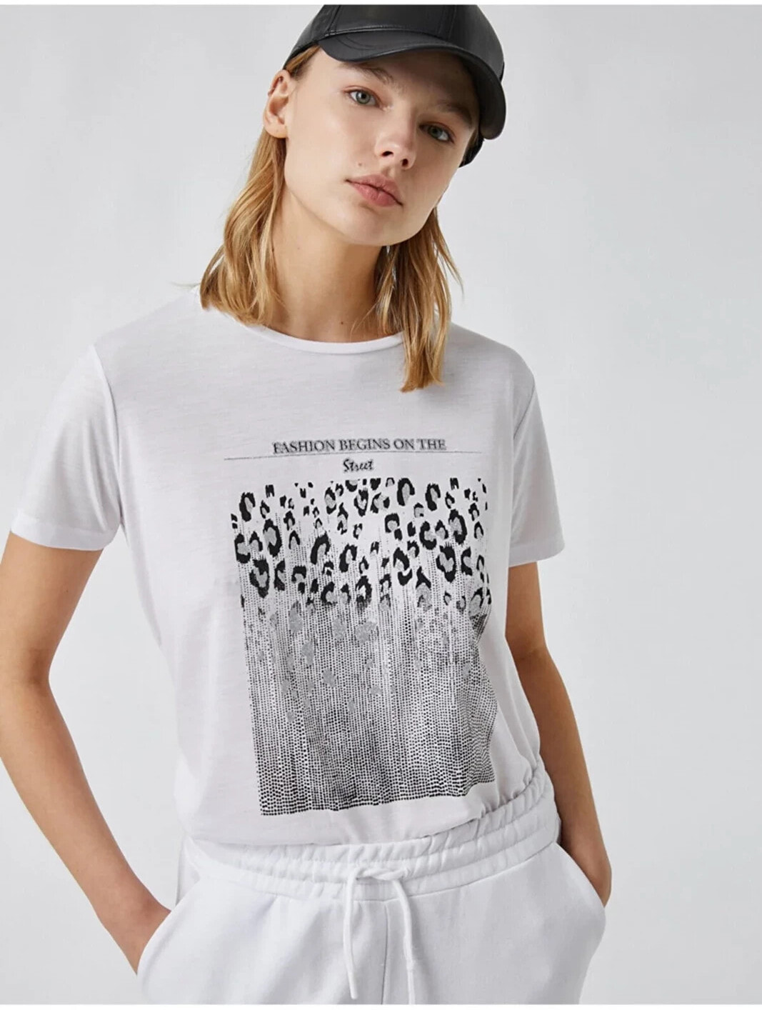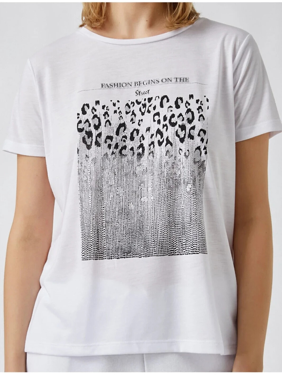 Kısa Kollu, Bisiklet Yaka, Baskılı Tişört Model Bilgileri: Boy:179 cm, Göğüs:84, Bel:65, Kalça:90, Modelin Bedeni:S