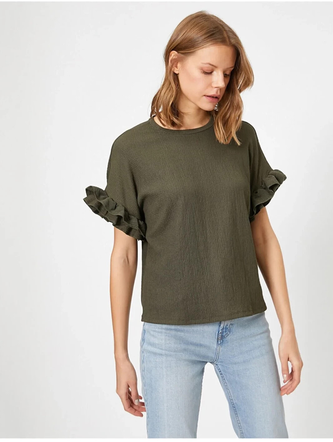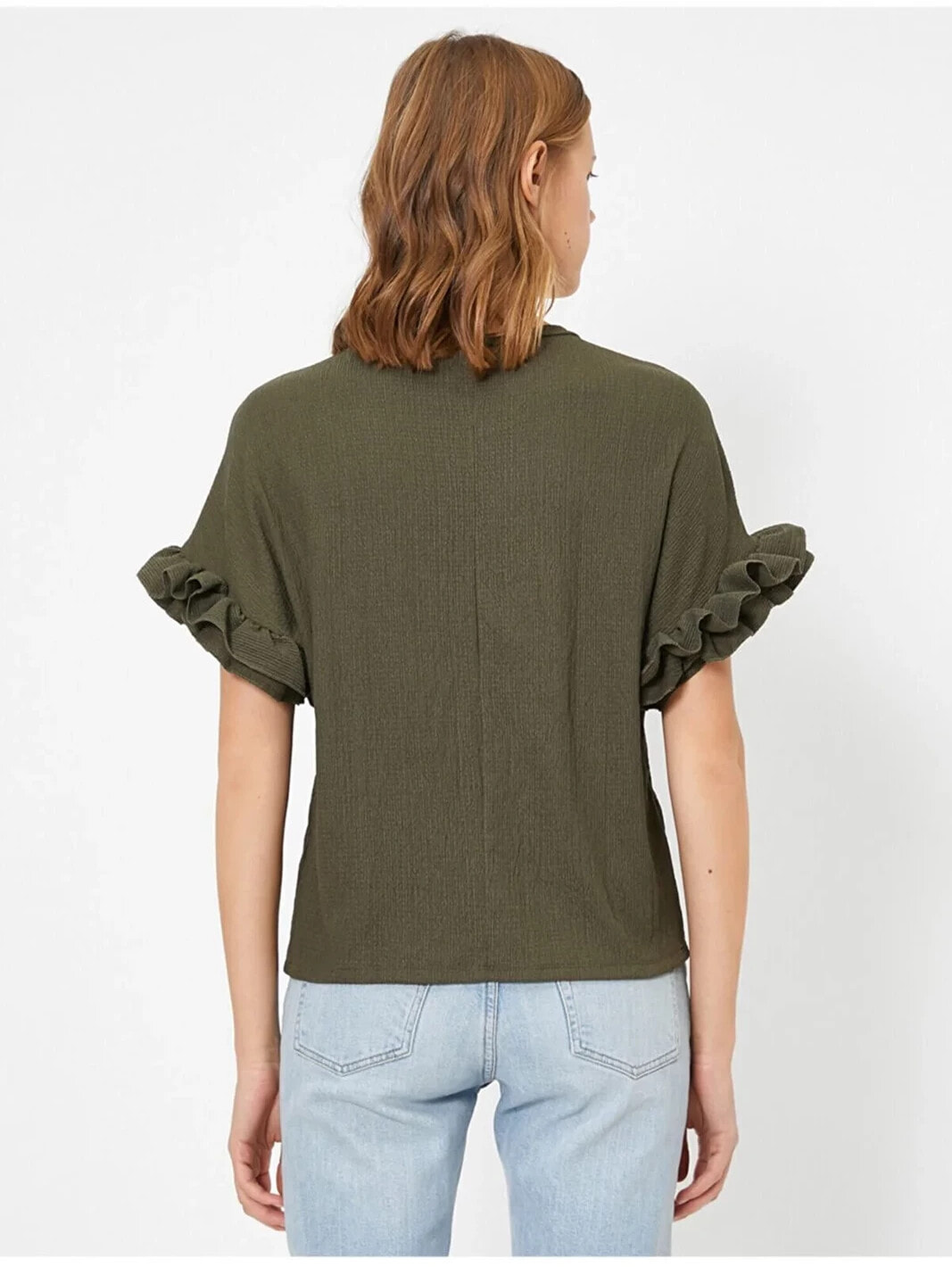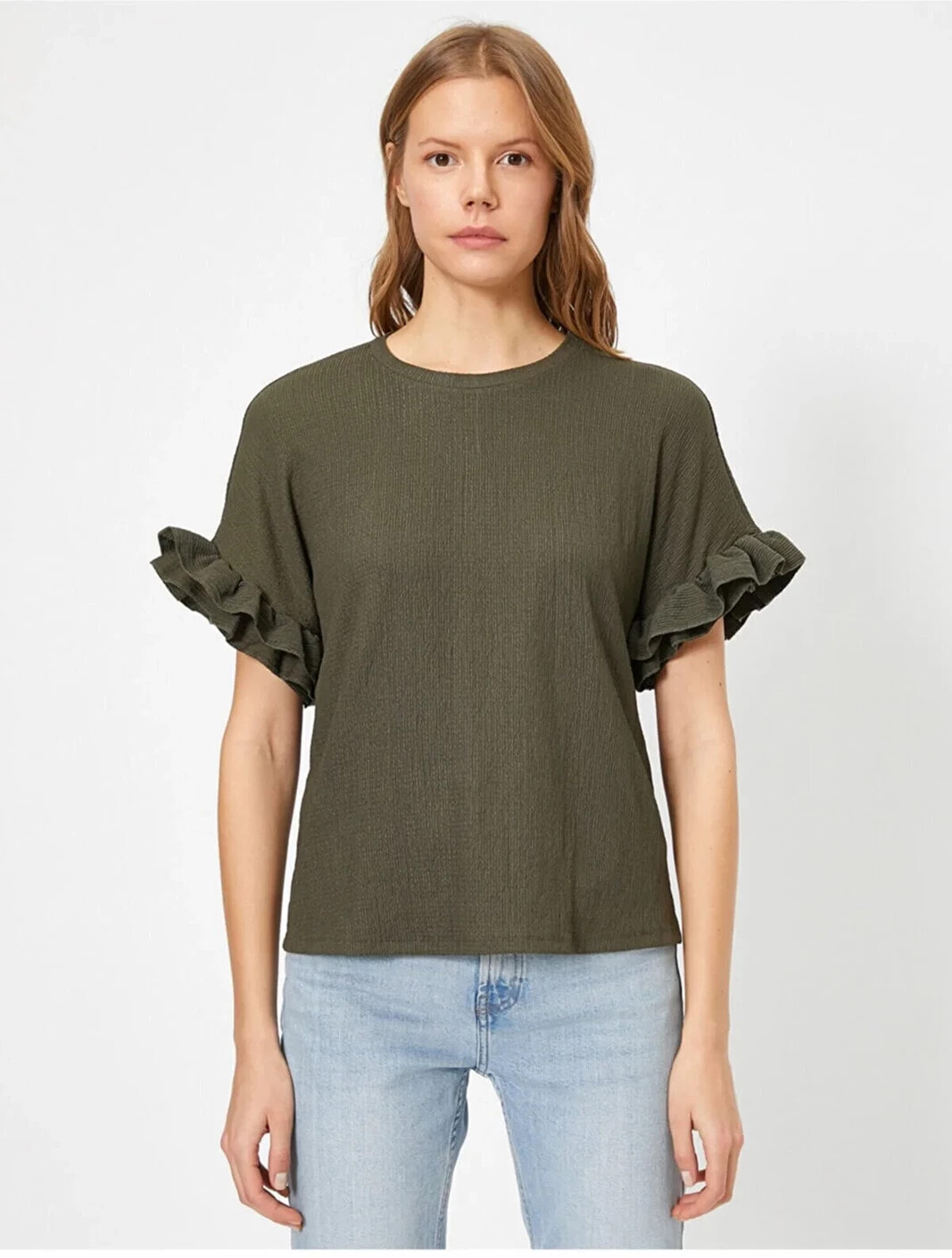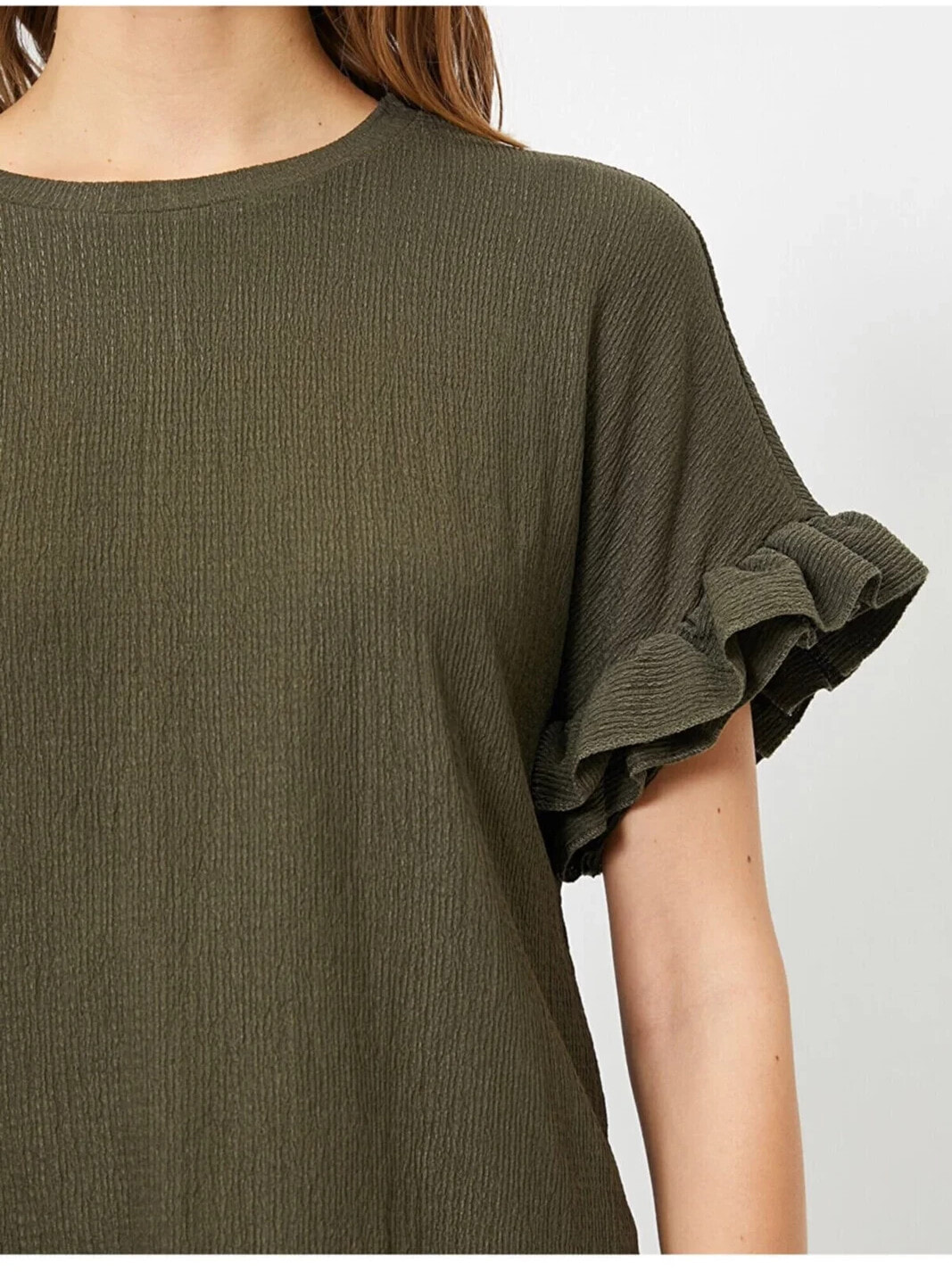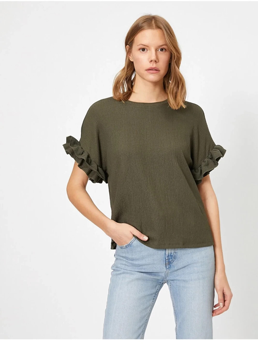 Kol Detayli Bisiklet Yaka Kisa Kollu Tisört