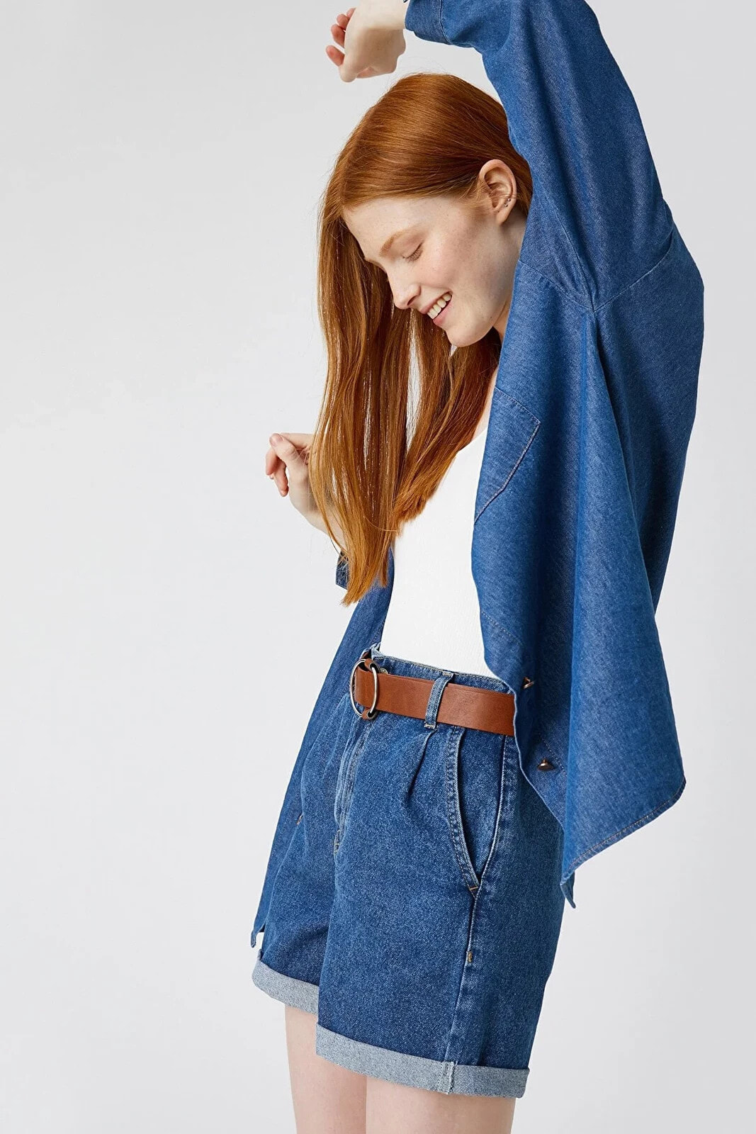 Kot Şort Model Bilgileri: Boy:175 cm, G??????s:83, Bel:63, Kal??a:85, Modelin Bedeni:S