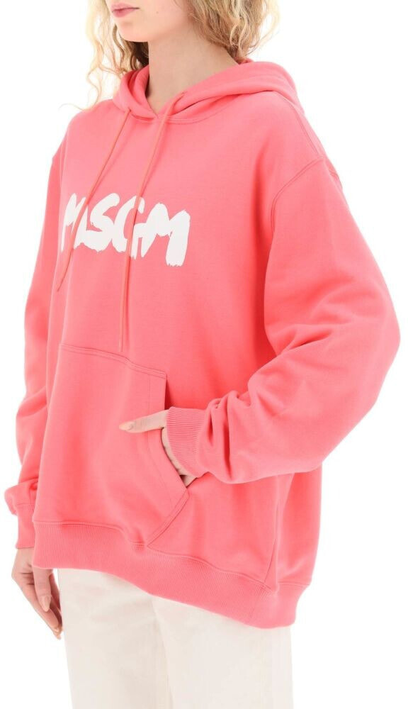 MSGM loop-back cotton jersey sweatshirt personalized by the contrasting logo print on the front. It features drawstring hood and a front kangaroo pocket. Relaxed fit, ribbed edges. The model is 177 cm tall and wears a size XS.
