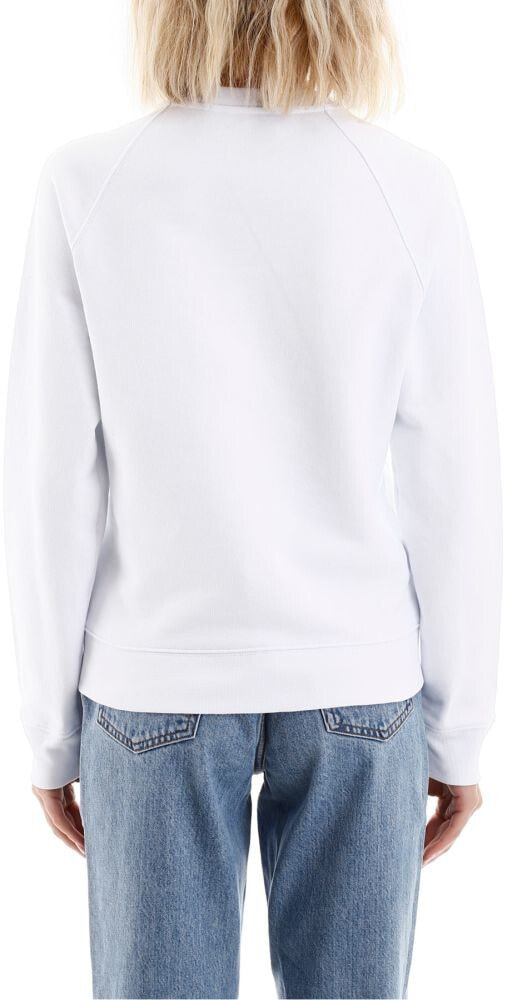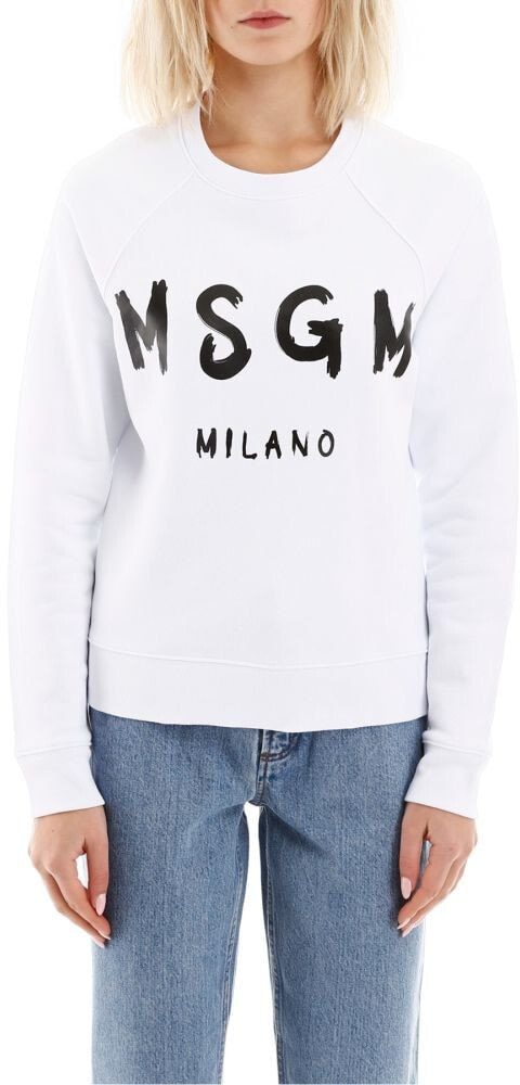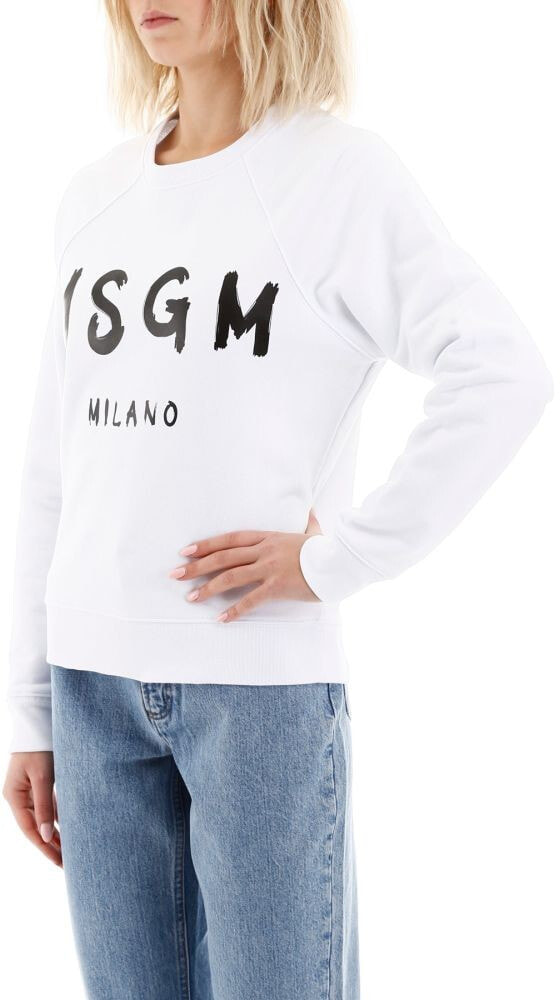 MSGM loose fit crewneck sweatshirt in cotton jersey, personalized with brushed effect logo print on the front. Raglan sleeves, ribbed edges. The model is 17 cm tall and wears a size XS.